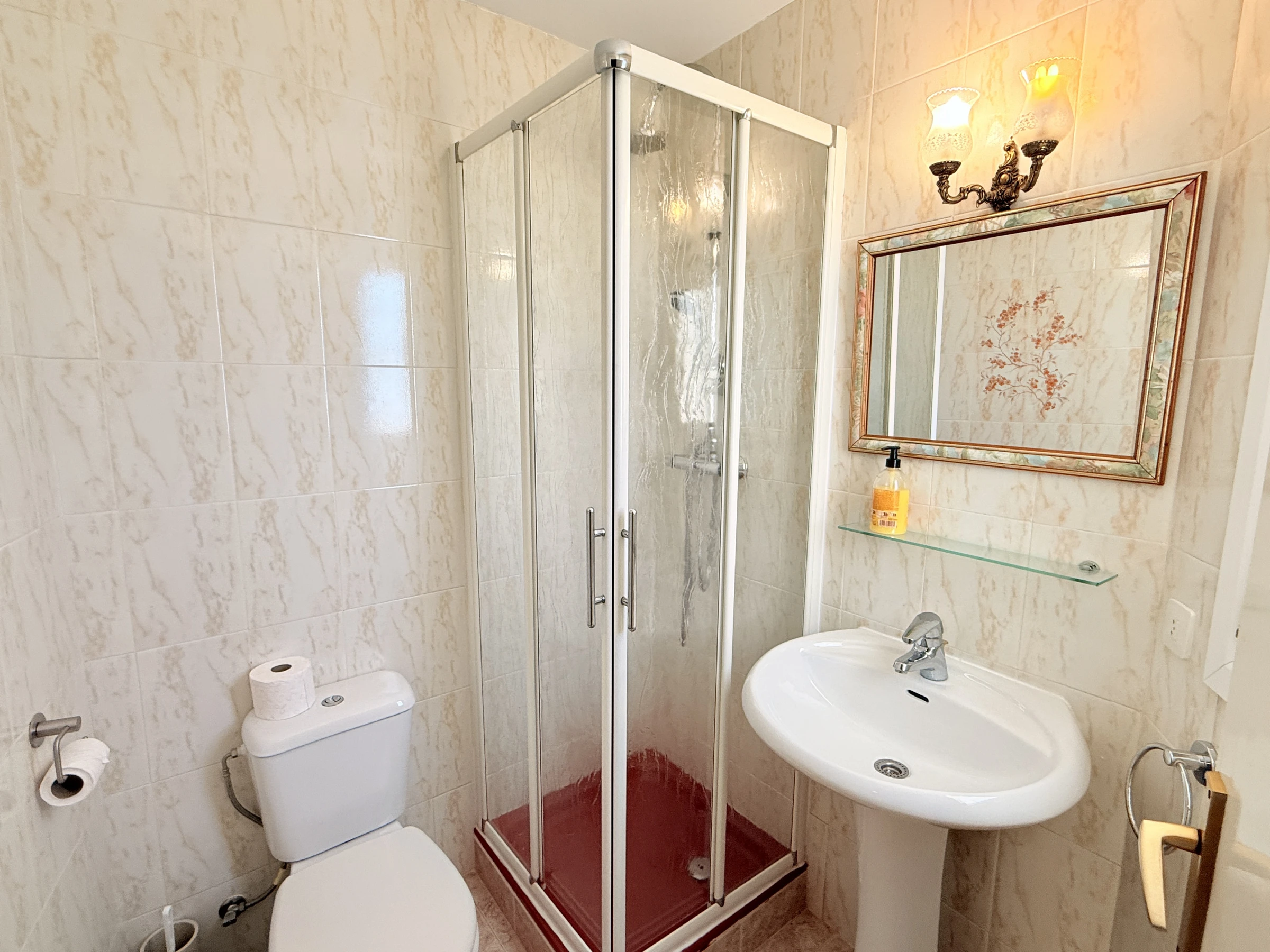 On the main floor, you will find a bright living room, a fully equipped kitchen, a bathroom, and two spacious double bedrooms, each with its own private bathroom. One of these bathrooms has a shower, while the other features a relaxing bathtub.