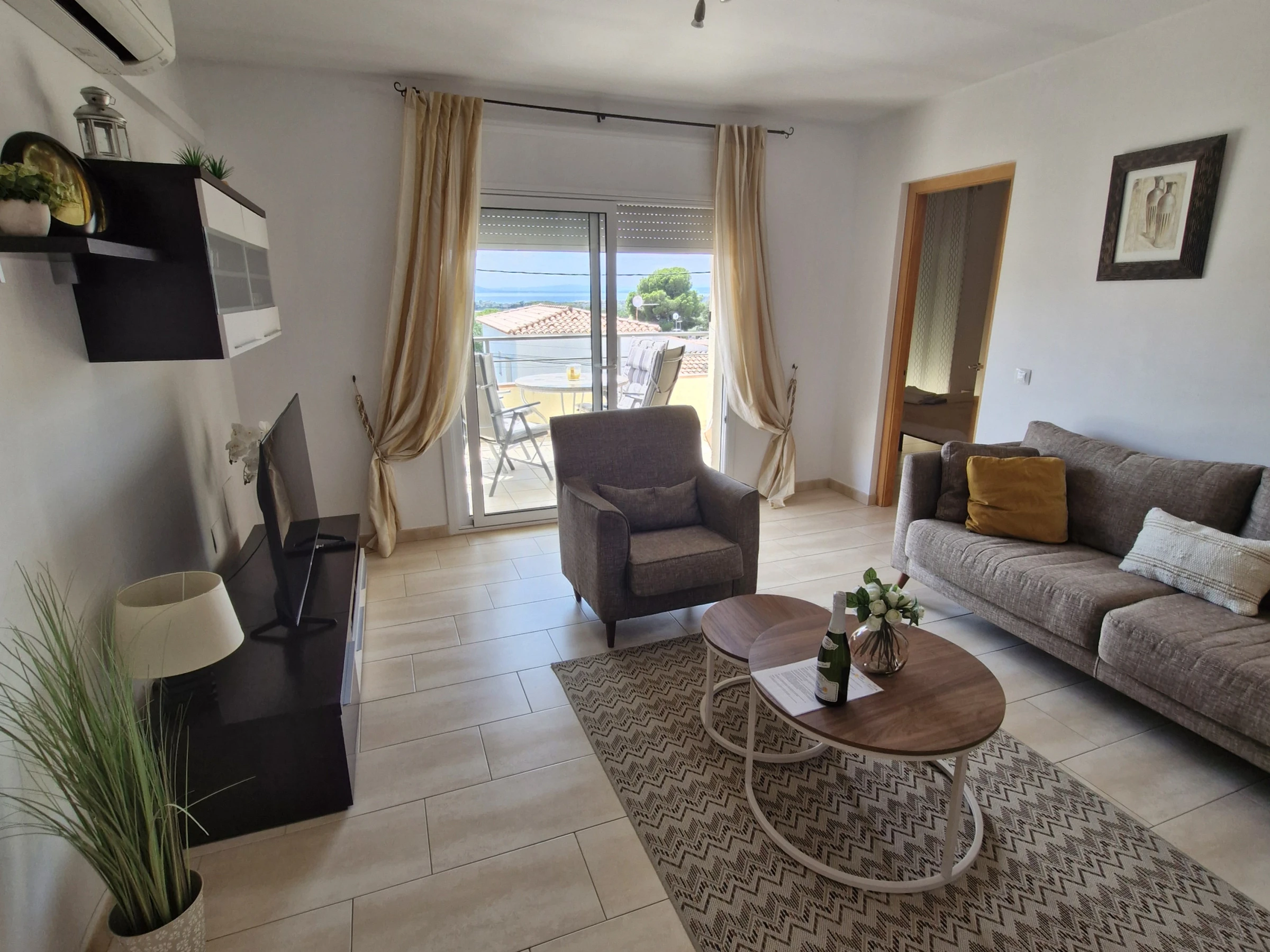 If you are looking for a peaceful place with open sea views and away from the hustle and bustle of mass tourism, this apartment in the Mas Fumats residential area is the perfect choice. Located in an elevated area, about 3.5 km from the beach, it offers a privileged panoramic view of the Mediterranean landscape while remaining close to all the amenities of Roses. Additionally, its location above our office ensures complete privacy, with no direct neighbors, for a relaxing and exclusive stay.