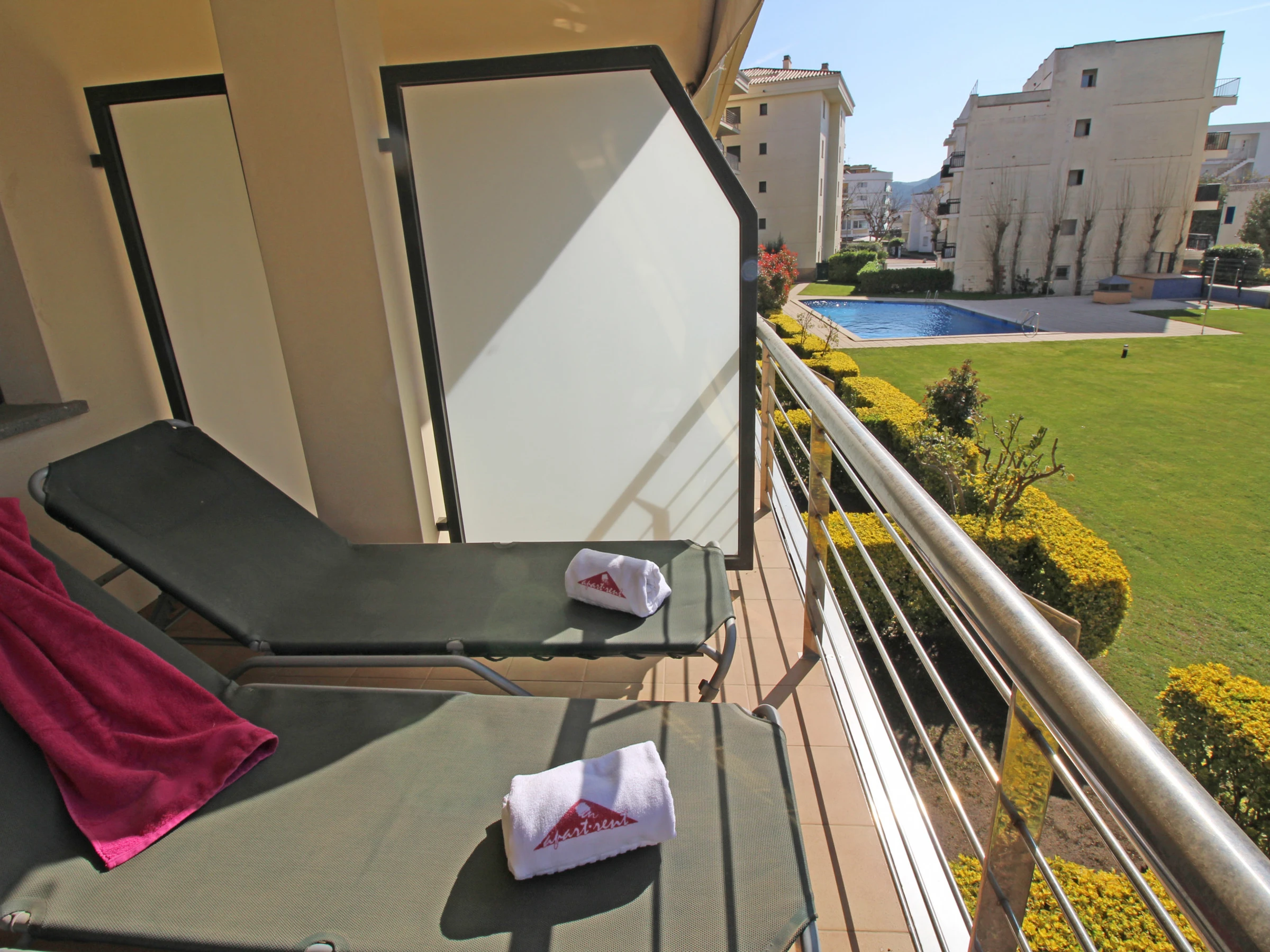 The apartment in Rosas / Roses has 1 bedroom and has capacity for 4 people. The apartment is comfortable, has an exterior, and  is 59 m².  It has views of the swimming pool. The property is located  150 m from the sand beach,  200 m from the from the restaurant,  1 km from the supermarket,  2 km from Aquabrava water park,  26 km from Peralada golf course,  30 km from Ave/Tgv Figueres train station,  70 km from Girona airport. The house is situated in a family-friendly neighborhood close to a shopping area and [hidden] accommodation is equipped with the following items: lift, garden furniture, terrace, washing machine, iron, internet (Wi-Fi), central heating, air conditioning throughout the house, communal swimming pool, covered parking the same building, [hidden] the hotplate of glass ceramics open plan kitchen, refrigerator, microwave, oven, dishwasher, dishes/cutlery, kitchen utensils, coffee machine and toaster are provided.