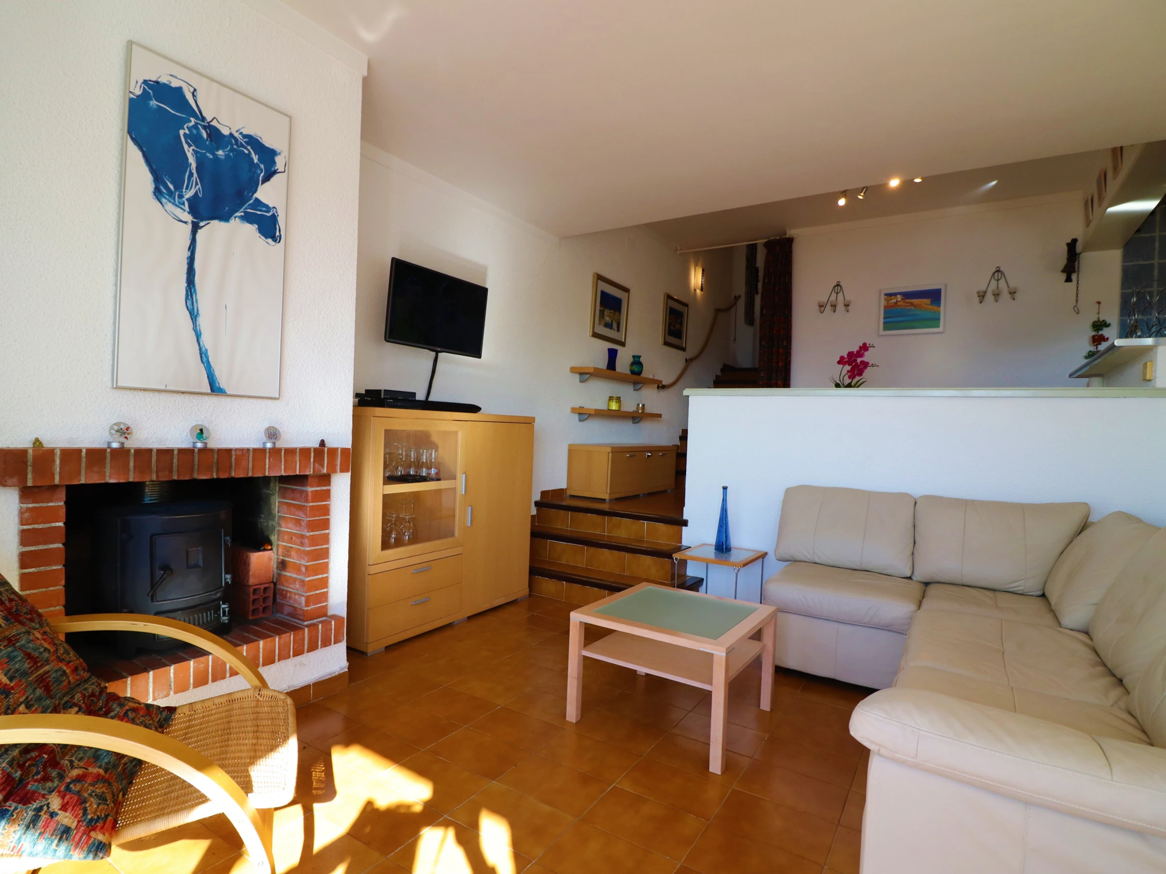- Nice lounge / dining-room with large bay window overlooking the terrace with splendid views of the bay and mountains. Sofa and armchair, table, chairs, buffet and satellite TV (free channels in all languages).