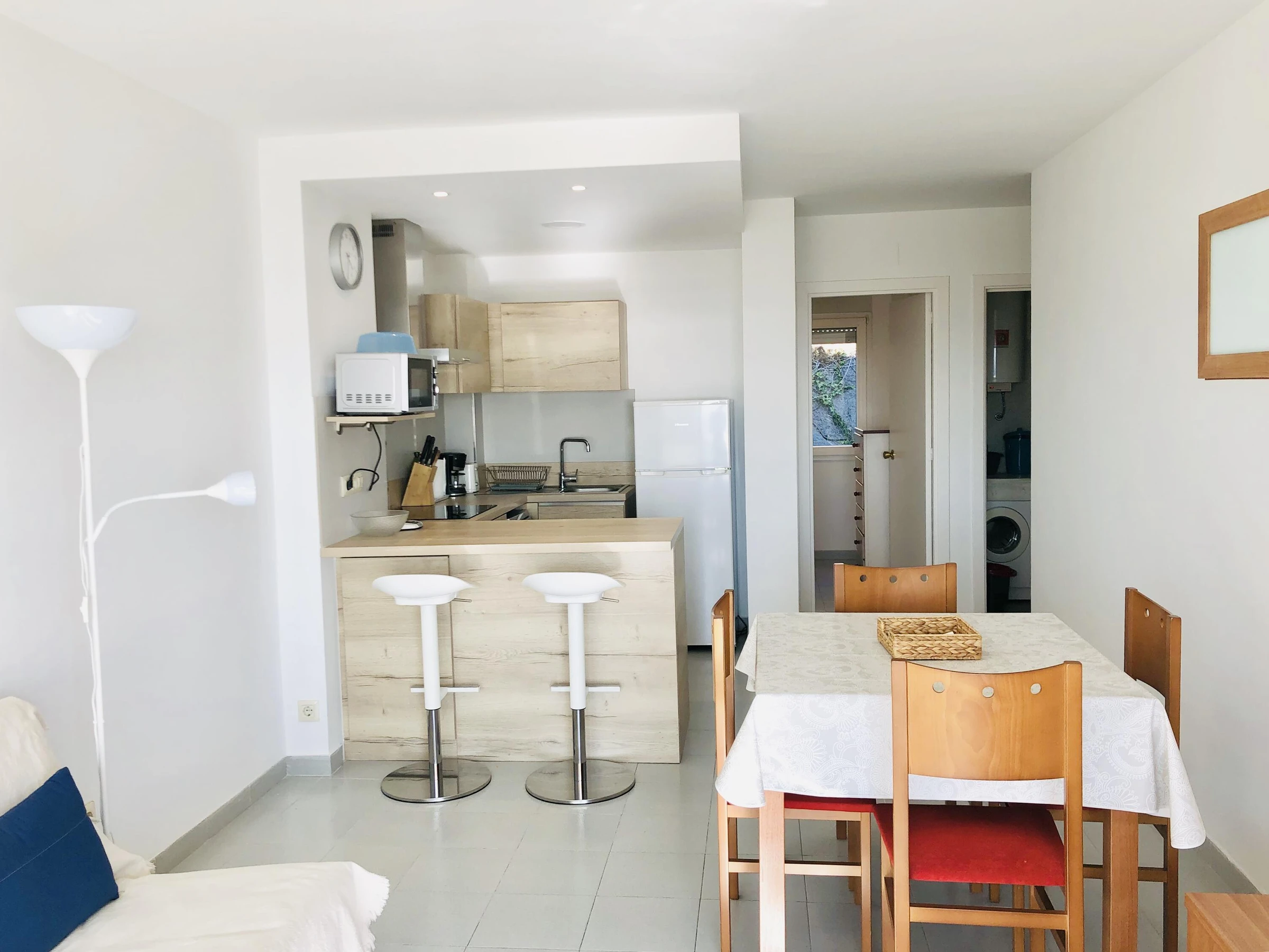 Tastefully renovated apartment in a quiet area facing the port of Roses, just 300 m from the beach and town center. It accommodates up to 6 guests. It features two bedrooms: one with a 135 cm double bed, and the other with a bunk bed and trundle bed. The bright living room includes a comfortable sofa bed. The open kitchen is fully equipped. The modern bathroom has a shower. Enjoy a spacious terrace with port views – perfect for relaxing or dining outdoors. Close to the beach, shops, restaurants, and ideal for trips to Cadaqués, Cala Pelosa, or Cala Montjoi.
