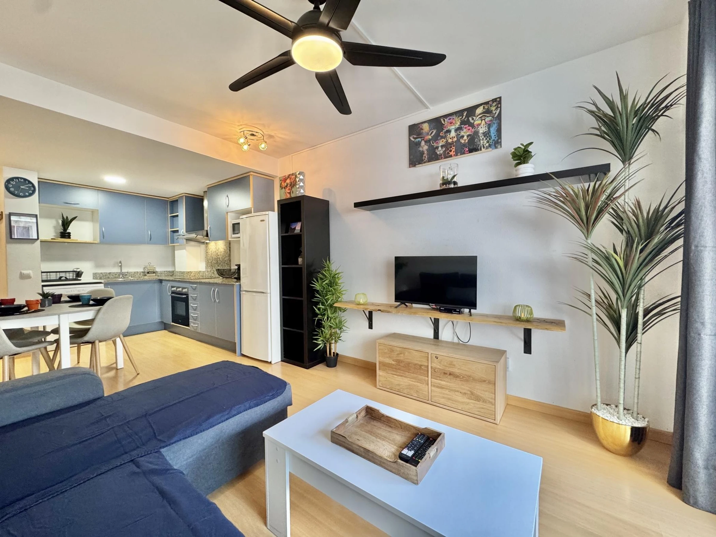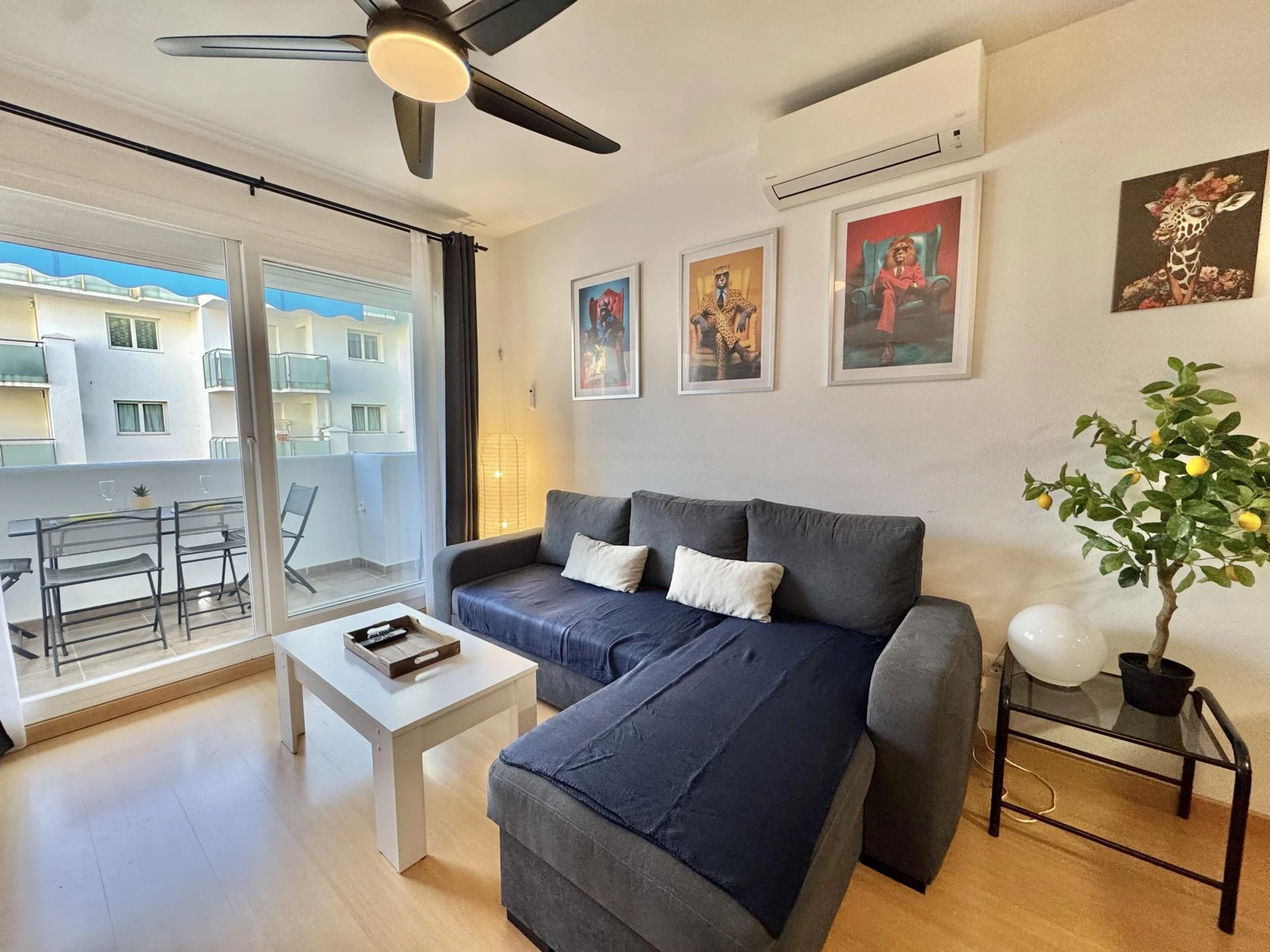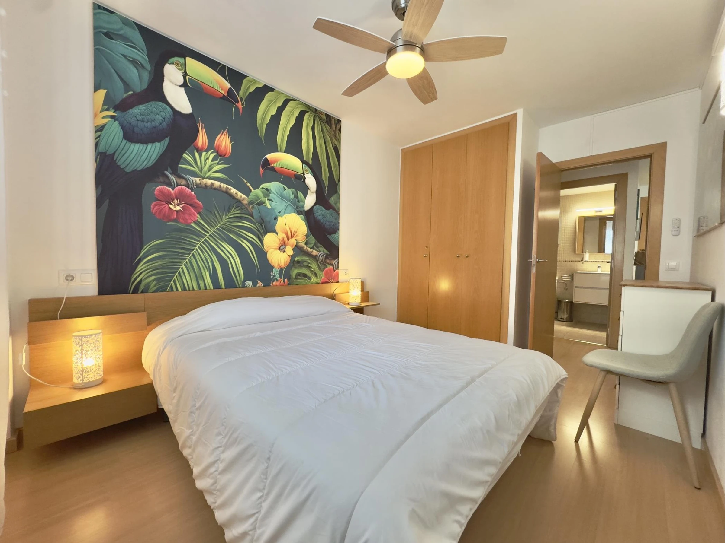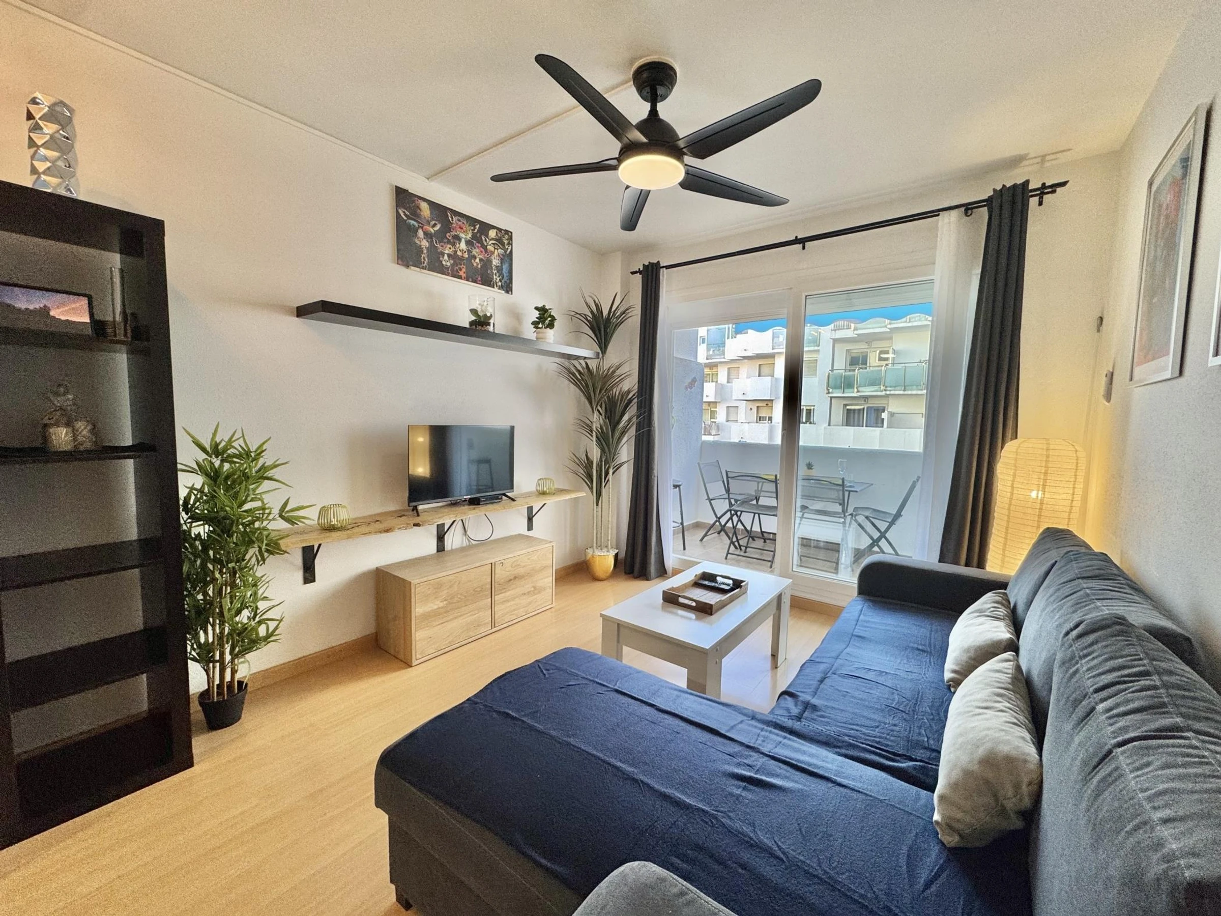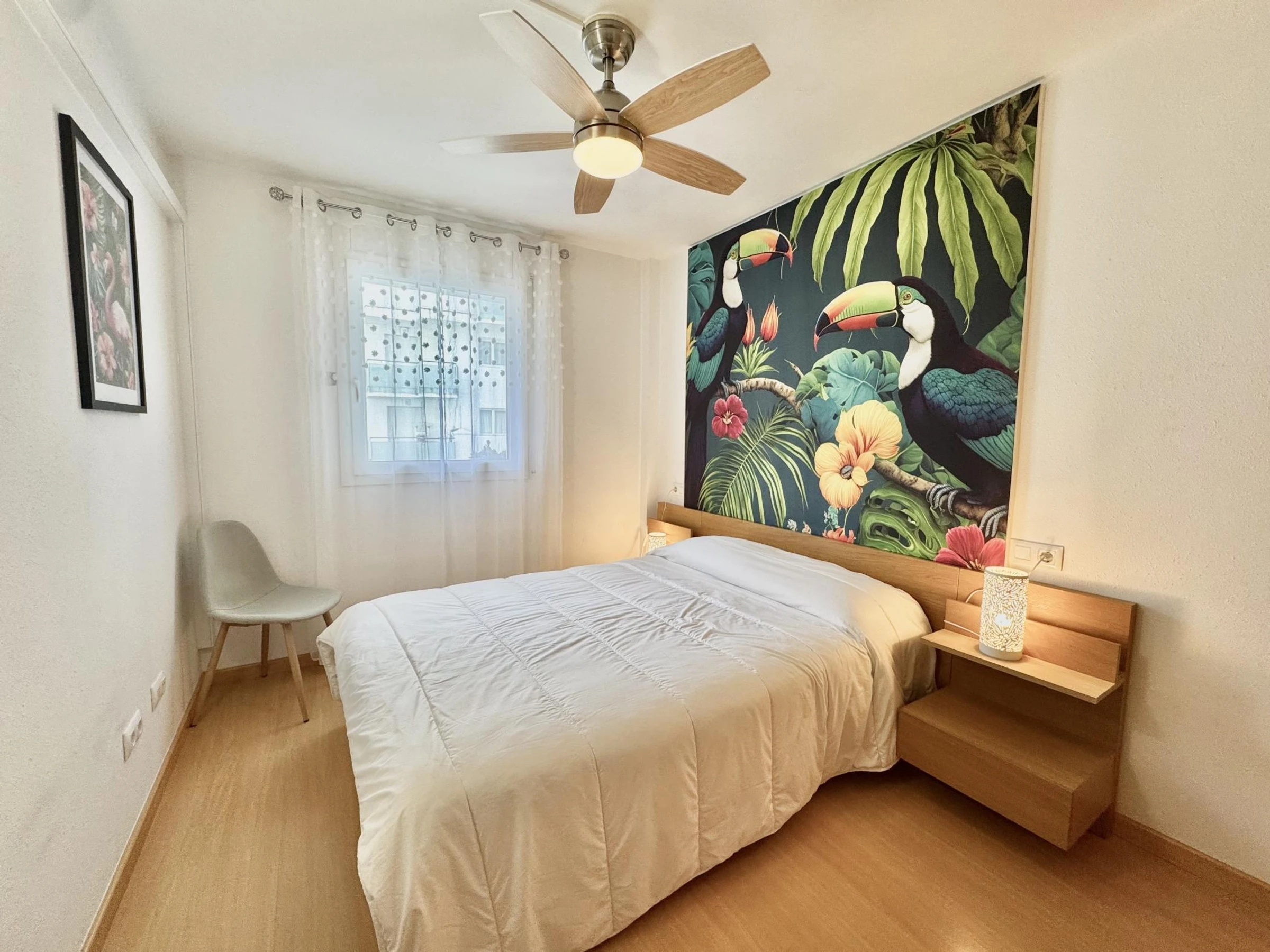 * Comfortable double bedroom (140 cm bed) with ceiling fan.