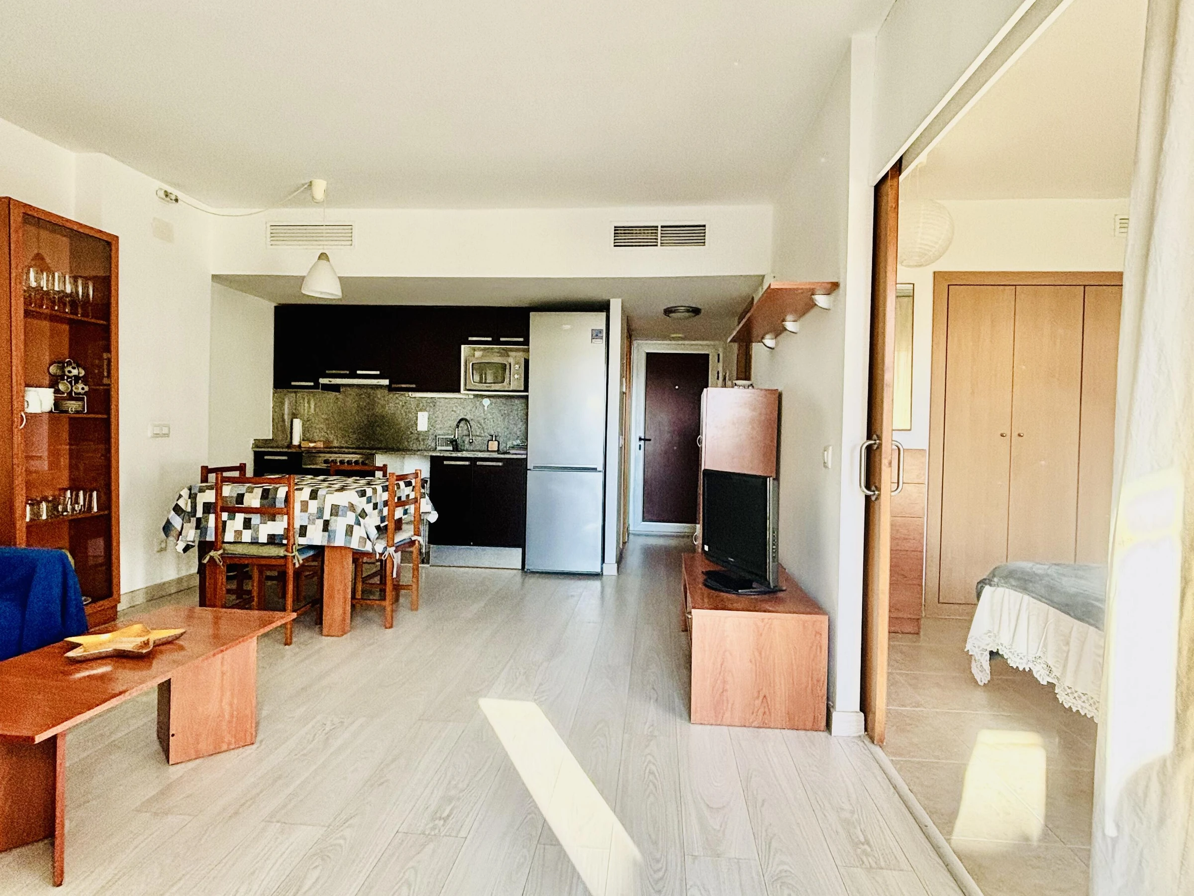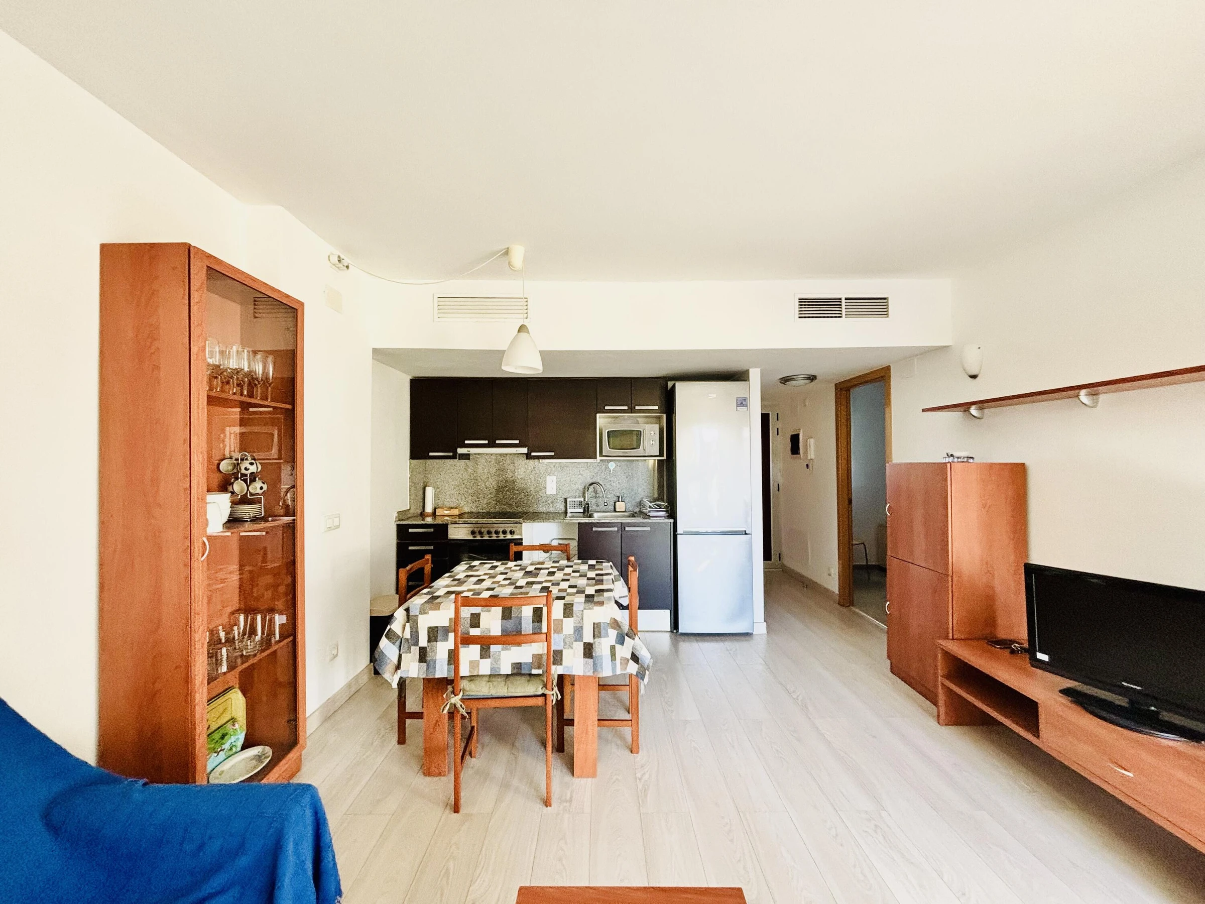 Enjoy a relaxing holiday in this beautiful flat located at Carrer Cap Blanc 7, Roses, within a well-maintained residential complex with communal swimming pools and gardens, ideal for relaxing and enjoying the Mediterranean climate. The flat, located on the first floor, is comfortable and functional, perfect for families, couples or quiet stays. It has two bedrooms, a full bathroom with shower, and an open-plan fitted kitchen, integrated into a bright living-dining room. One of its great attractions is the large terrace, perfect for outdoor breakfasts, relaxed meals or simply unwinding after a day at the beach or on excursions. The flat has central air conditioning to ensure maximum comfort throughout the year, as well as a private parking space, a highly valued bonus in the area. Located in a quiet and well-connected area, it is an excellent base for discovering Roses, its beaches, coves, nature trails and varied gastronomic offerings.