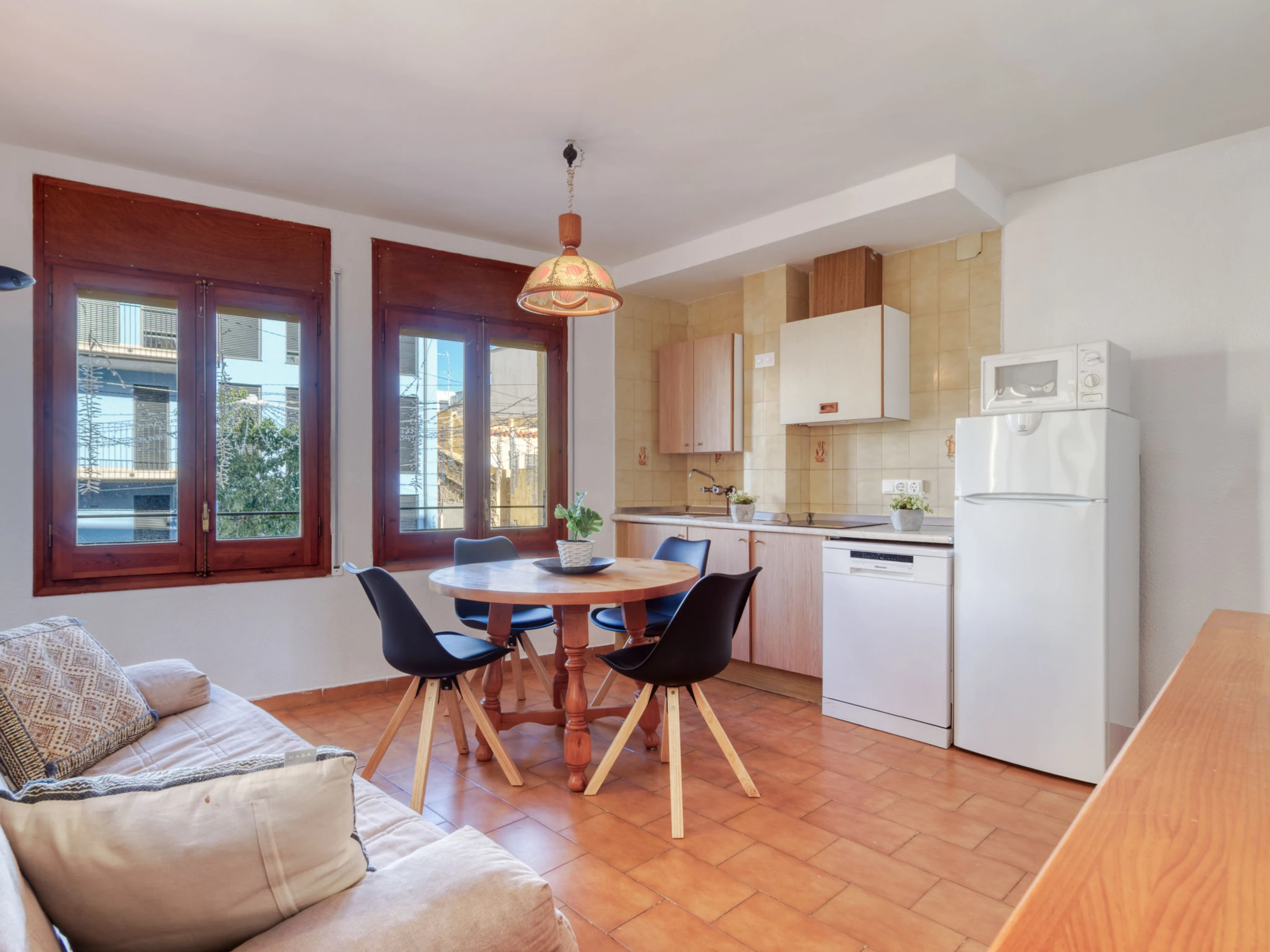 Centre Platja: Simple apartment block "Roses Centre Platja", 3 storeys. 3 apartments in the property. In the centre of Rosas zona peatonal, in a central, busy position, traffic calmed area, 150 m from the sea, in a pedestrian area. In the house: solarium. Steep footpath to the house. Grocery, supermarket 100 m, restaurant, bar 10 m, bakery, pedestrian zone 50 m, pub garden 15 m, bus stop "Moventis estació bus Roses" 450 m, railway station "Figueres Renfe Adif" 20 km, sandy beach "Rosas" 150 m. Sports harbour 1 km, golf course (18 hole) 15 m, surf school 1 km, sailing school 1 km, tennis 1 km, minigolf 800 m, sports centre 1 km. Nearby attractions: Parc Megalitic de Roses 300 m, Ciutadella de Roses 700 m, Parque Natural de los Aiguamolls del Emp 9 km, Castillo de Perelada y campo de golf 15 km, Museo Dali Figueres 20 km, Cadaques y Cap de Creus 21 km. Please note: no lift. Cabs cannot stop right in front of the house. The keys‘ handover takes place by the agency in Roses. The apartment is located in a zone with limited traffic. Property ref. ES9410.713.2 is situated on the same property.