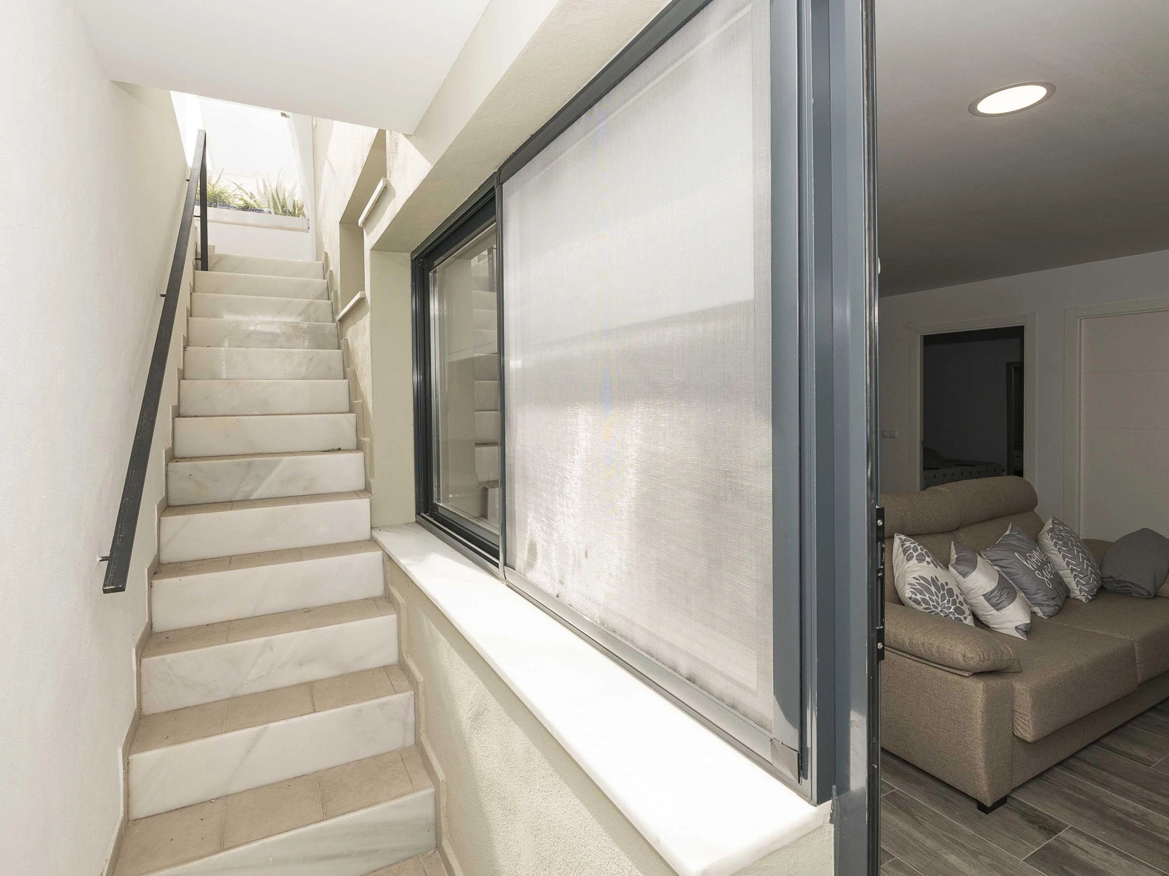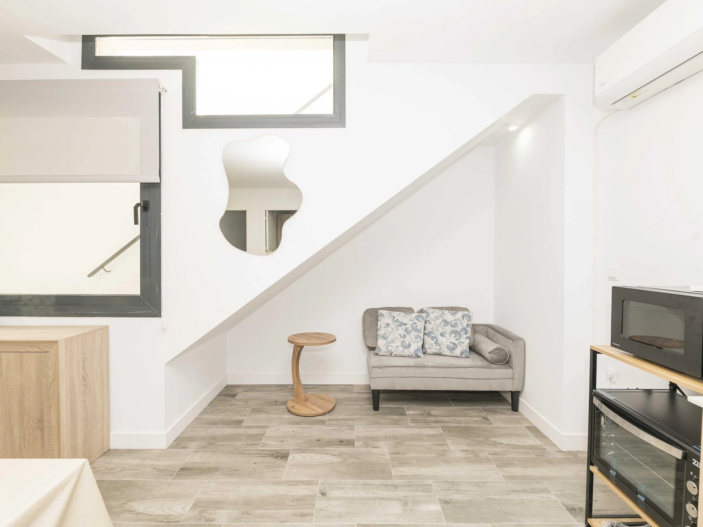 This accommodation is located in a semi-basement, which is accessed by going down some stairs from a shared entrance with the owner, who resides in the main house.