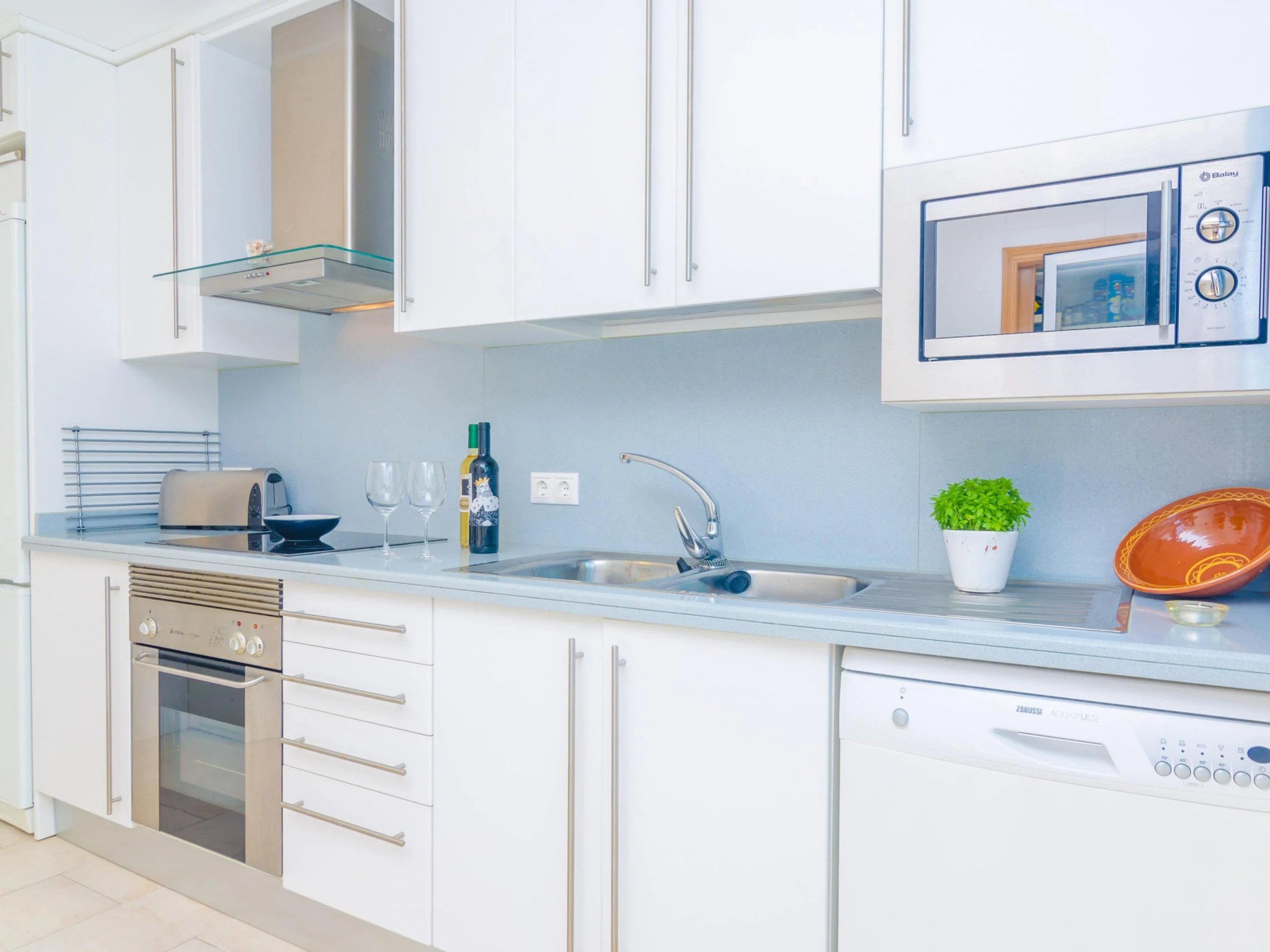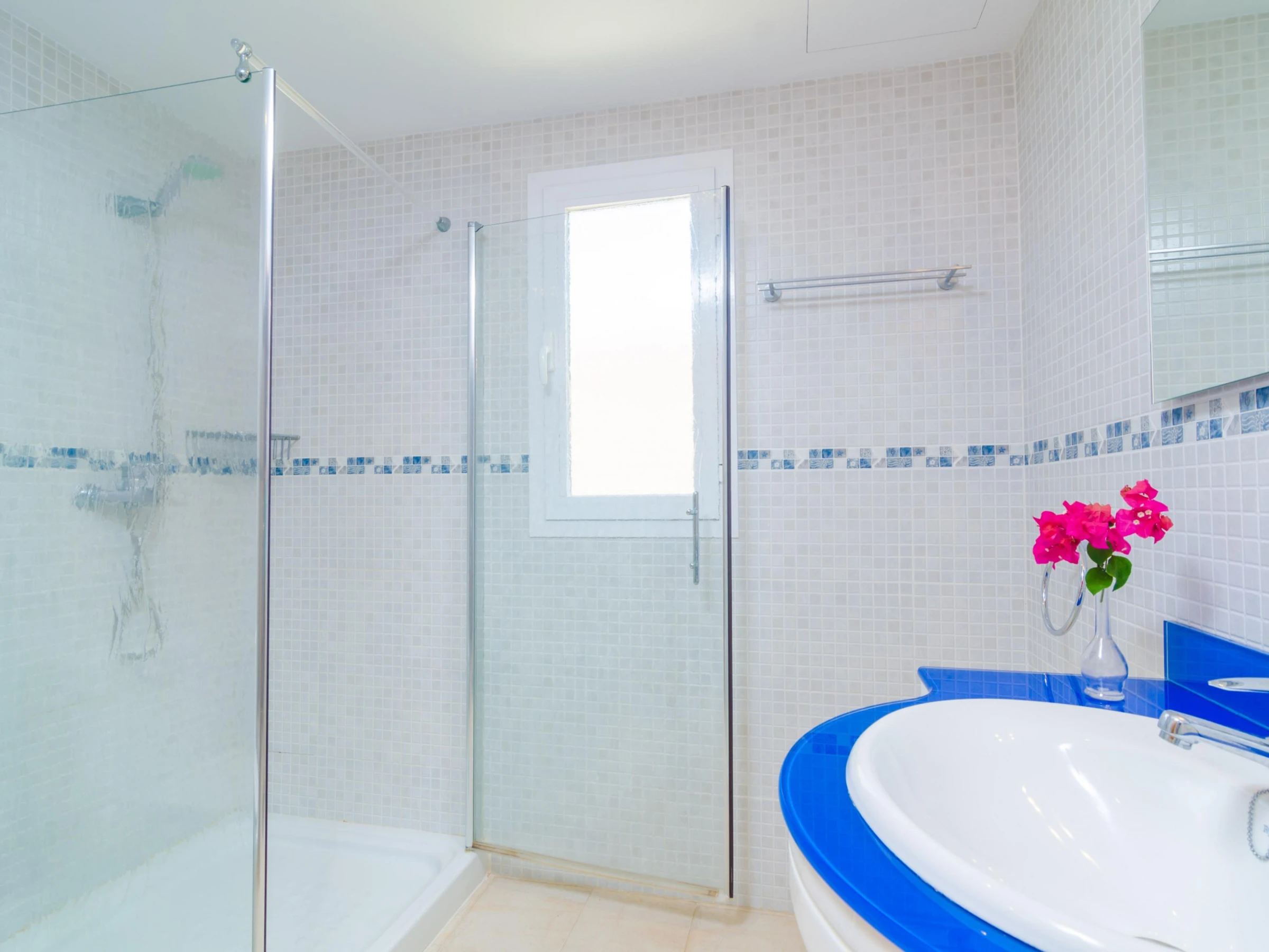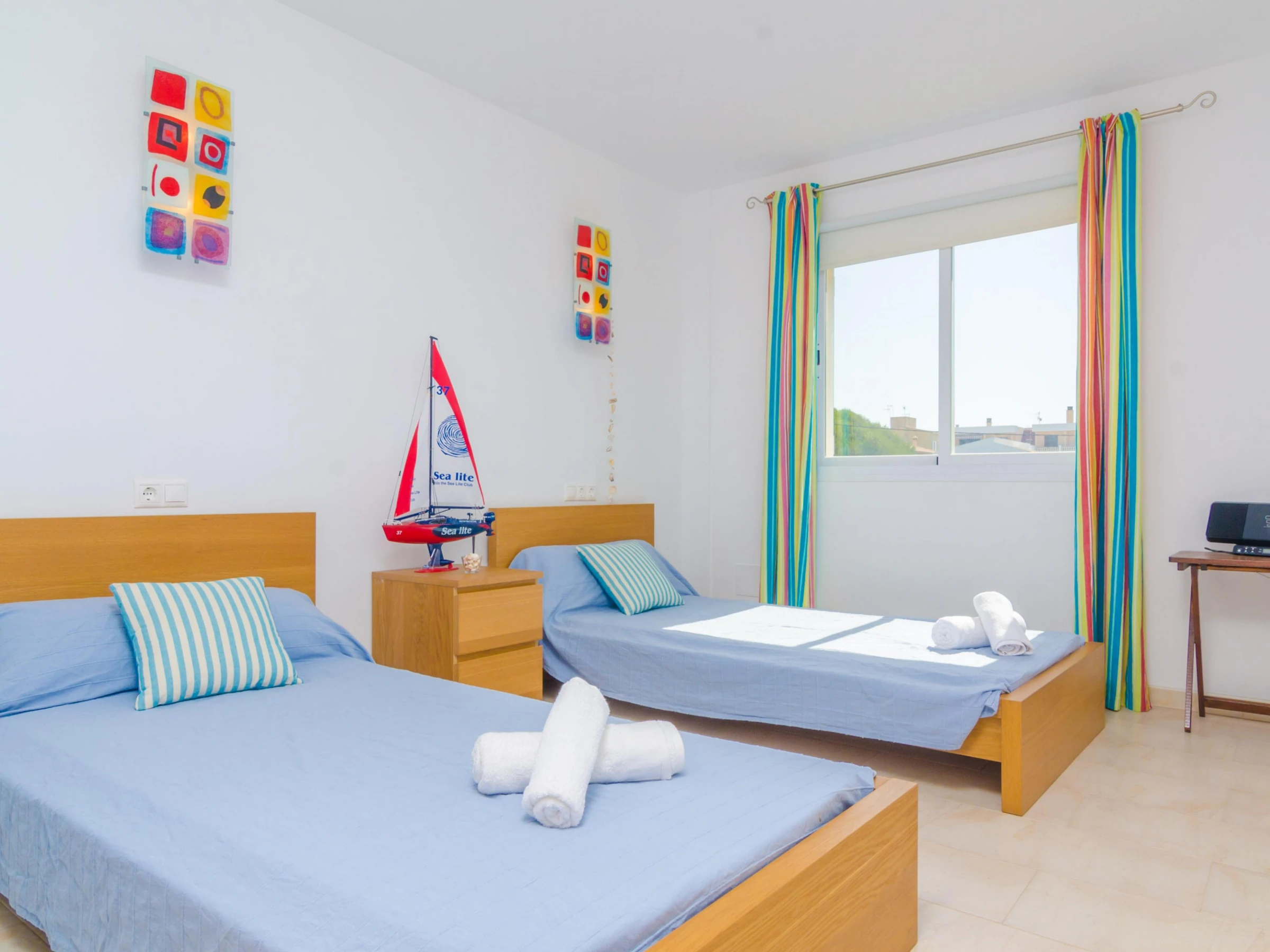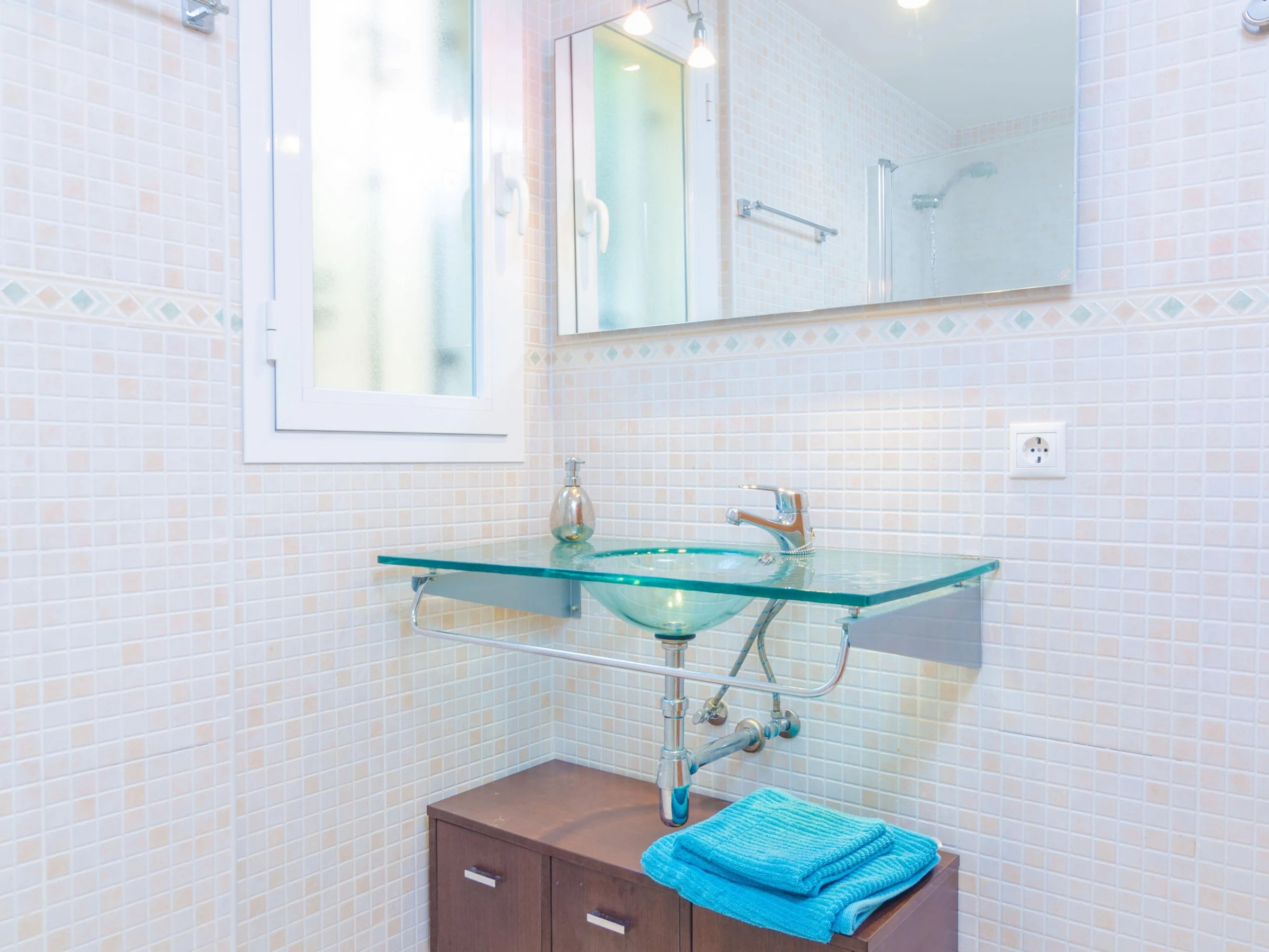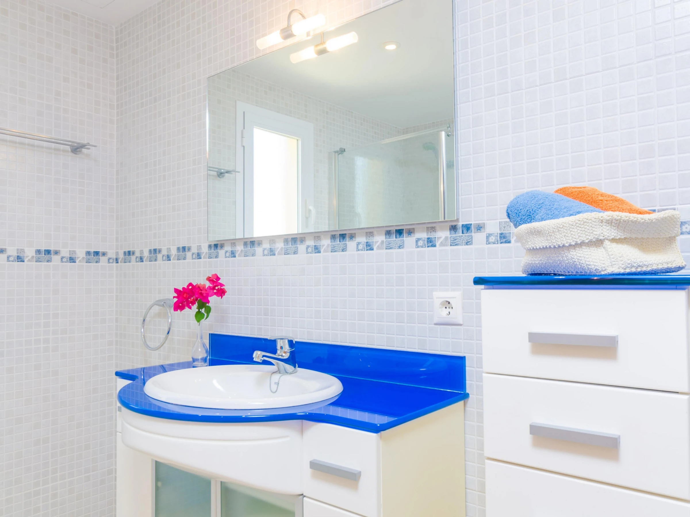 The two storey 120 m2 house has a comfortable, refreshing and Mediterranean style which will make you feel at home. On the ground floor you will find the living and dining room where you can watch TV or simply have a rest on the sofa while refreshing with the air-conditioning. Then the beautiful and Mediterranean dining area with capacity for 4 people. The kitchen is independent and fully equipped, with a ceramic hob and dishwasher, and also a table for 4 people. From the kitchen we have access to the back terrace of the house. It also has a laundry area with a washing machine, a tumble dryer, an iron and an ironing board. A shower bathroom completes this floor. Upstairs you will find the three bedrooms. Two of them feature a double bed and the last one has twin beds. All are air-conditioned and with a closet. From one of the double bed bedrooms we have access to the first floor terrace. Another shower bathroom completes this floor. We can prepare a cot and a high chair if you are coming with a baby.