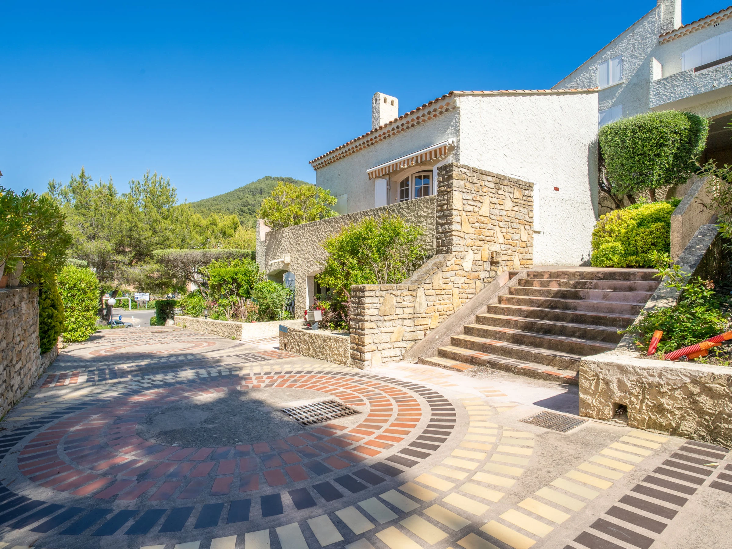 La Madrague: Residence "Hameau la Madrague". In an elevated position, 200 m from the sea. Parking (limited number of spaces). Grocery 100 m, supermarket 3 km, restaurant 200 m, bus stop "Le Viguier" 2.1 km, railway station "Saint Cyr les Lecques-La Cadière" 3.1 km, sandy beach "La madrague" 300 m, rocky beach "la reinette" 200 m. Sports harbour 300 m, golf course (18 hole) 4 km, tennis 2 km. Nearby attractions: Aqualand 3 km. Hiking paths: Sainte Baume, Sainte Victoire, Calanques Port-Cros, Porquerolles, Ile verte, Embiez, Figuerolles, Cassis. Please note: the keys‘ handover takes place by the agency in St Cyr /La Madrague. The photograph shows a typical example. Additional accommodations can be booked. Please note: apartments accessible via long sets of steps. Traffic prohibited to vehicles in the residence. The grocers shop is situated 100 m away and is open from 1st April to 30th September.
