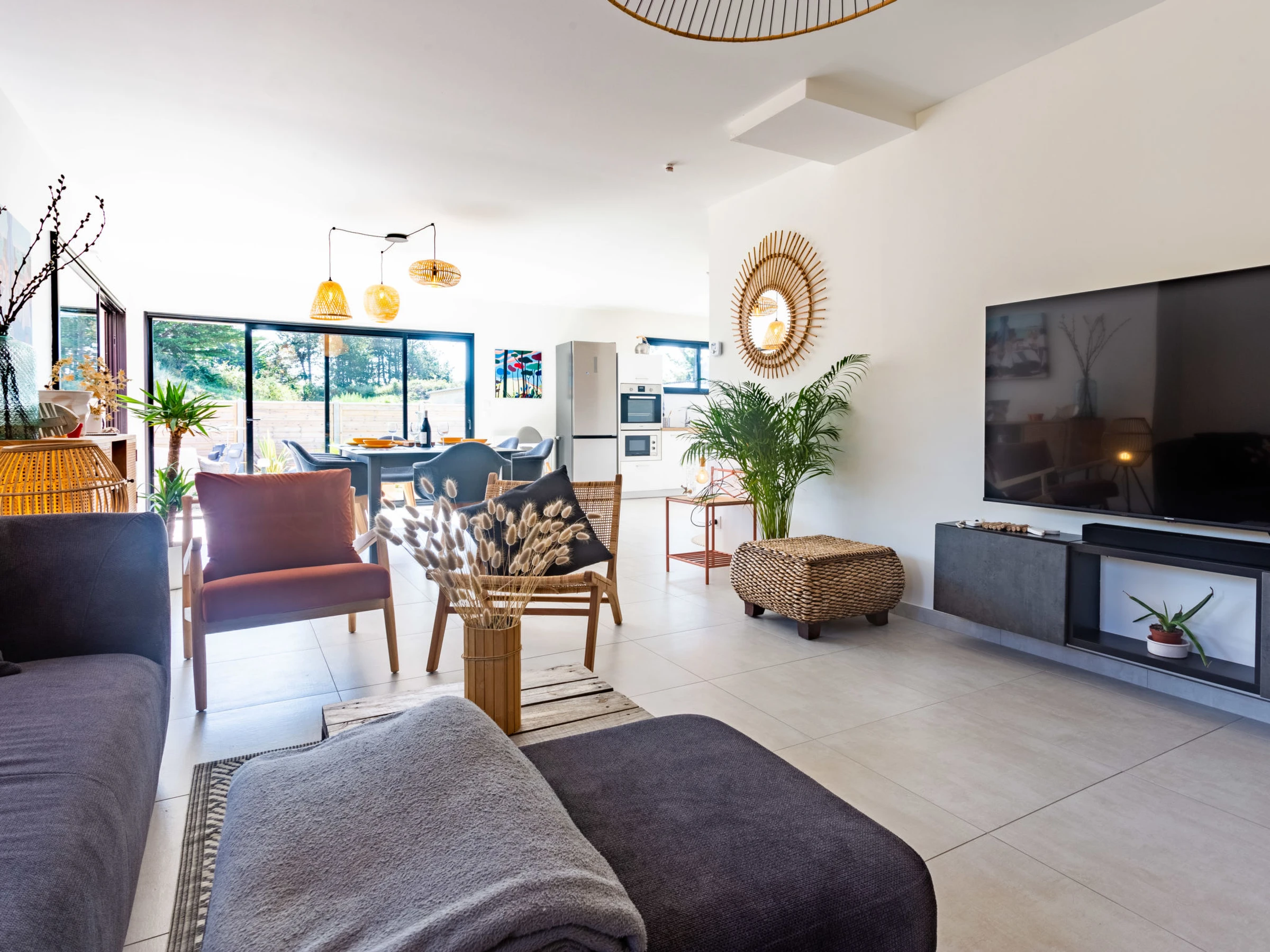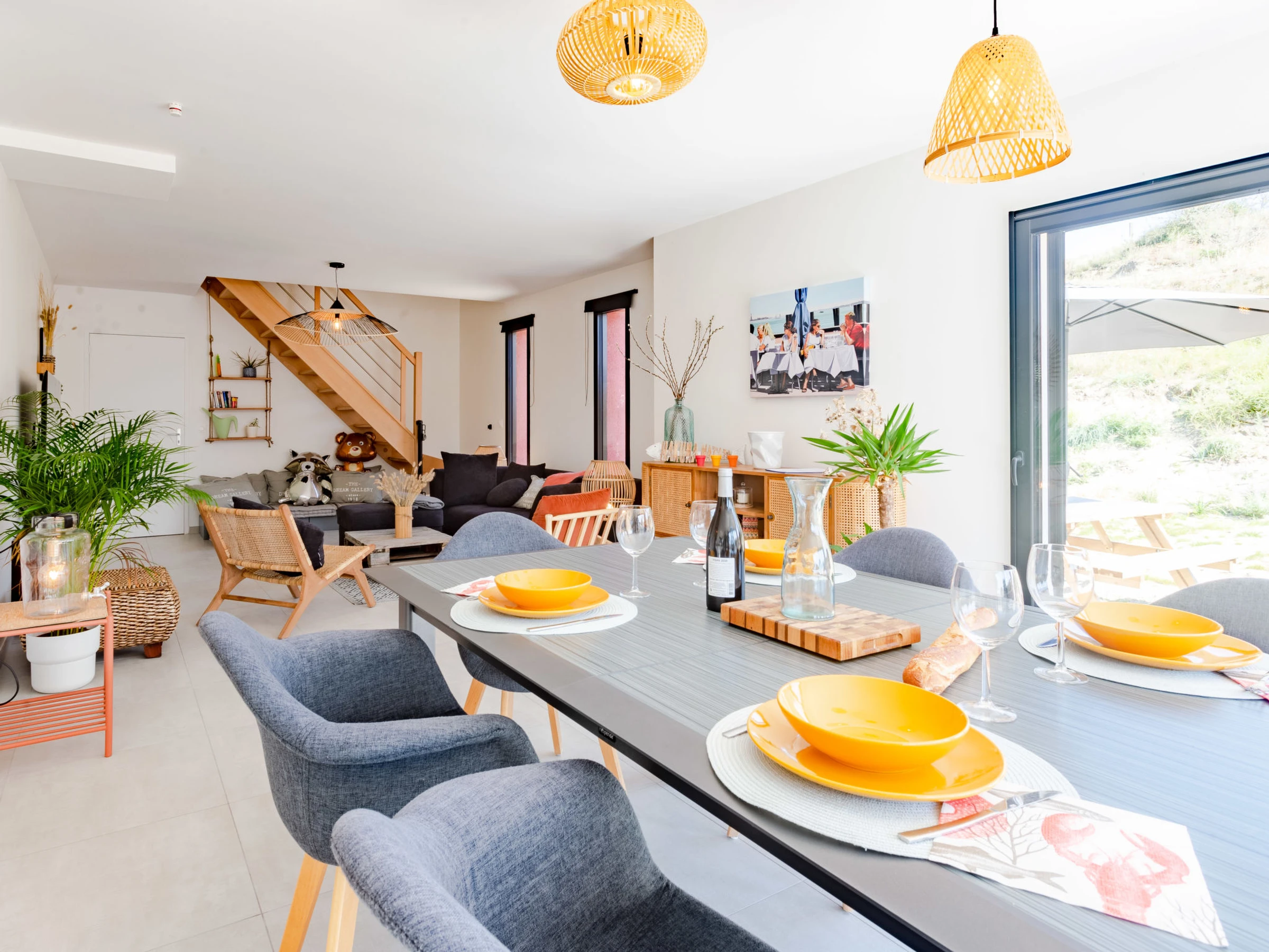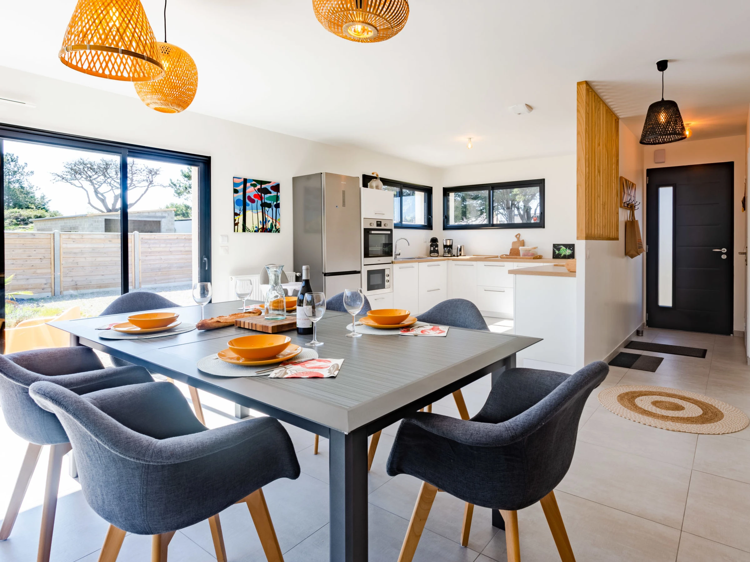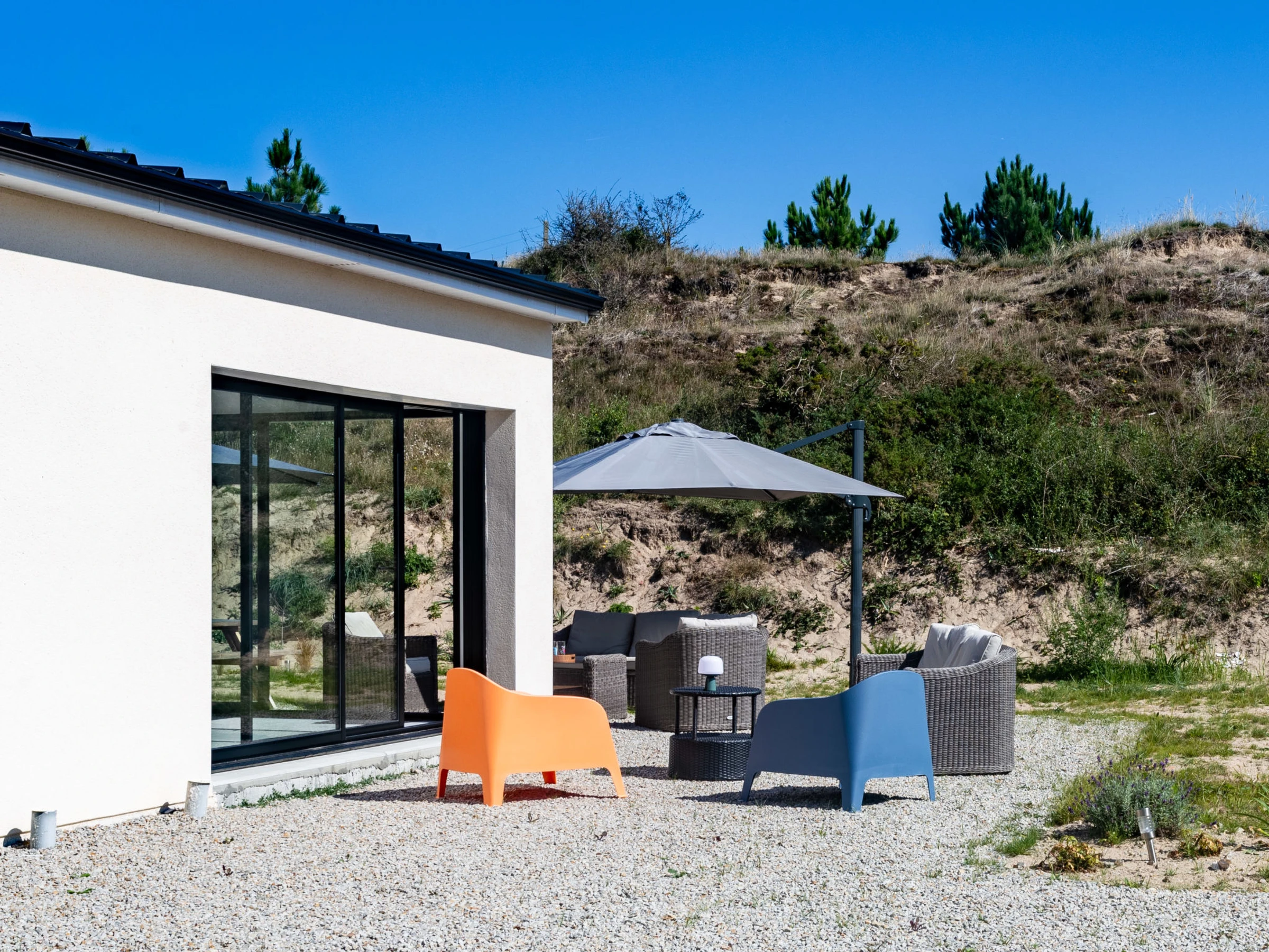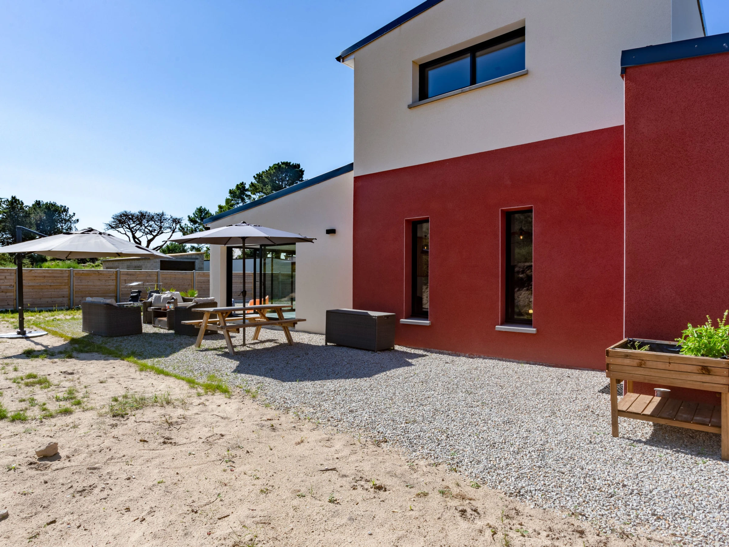 "La Dune", 3-room house 100 m2. Beautiful and modern furnishings: living/dining room. Exit to the garden, to the terrace. Lounge. Open kitchen (oven, dishwasher, 1 induction hot plates, 4 gas rings, toaster, kettle, microwave, electric coffee machine, Capsules for coffee machine (Tassimo)). Sep. WC. Underfloor heating. Upper floor: 1 room with 1 french bed (1 x 140 cm, length 190 cm). 1 room with 1 french bed (160 cm, length 200 cm). Shower/WC. Terrace furniture, barbecue, deck chairs (4). Facilities: washing machine, dryer, baby cot for up to 2 year olds, hair dryer. Internet (WiFi, free). Parking (fenced 2 cars), garage. Please note: smoke alarm. Offer by a private individual according to Art. 155, IV of CGI. [hidden]