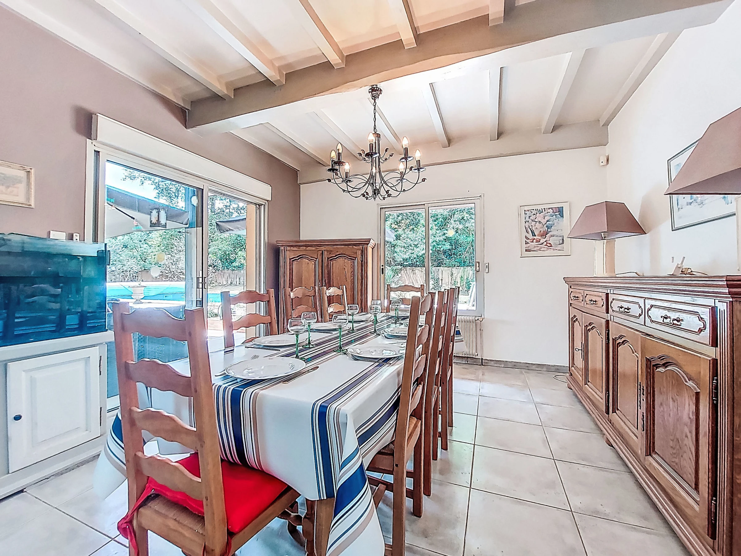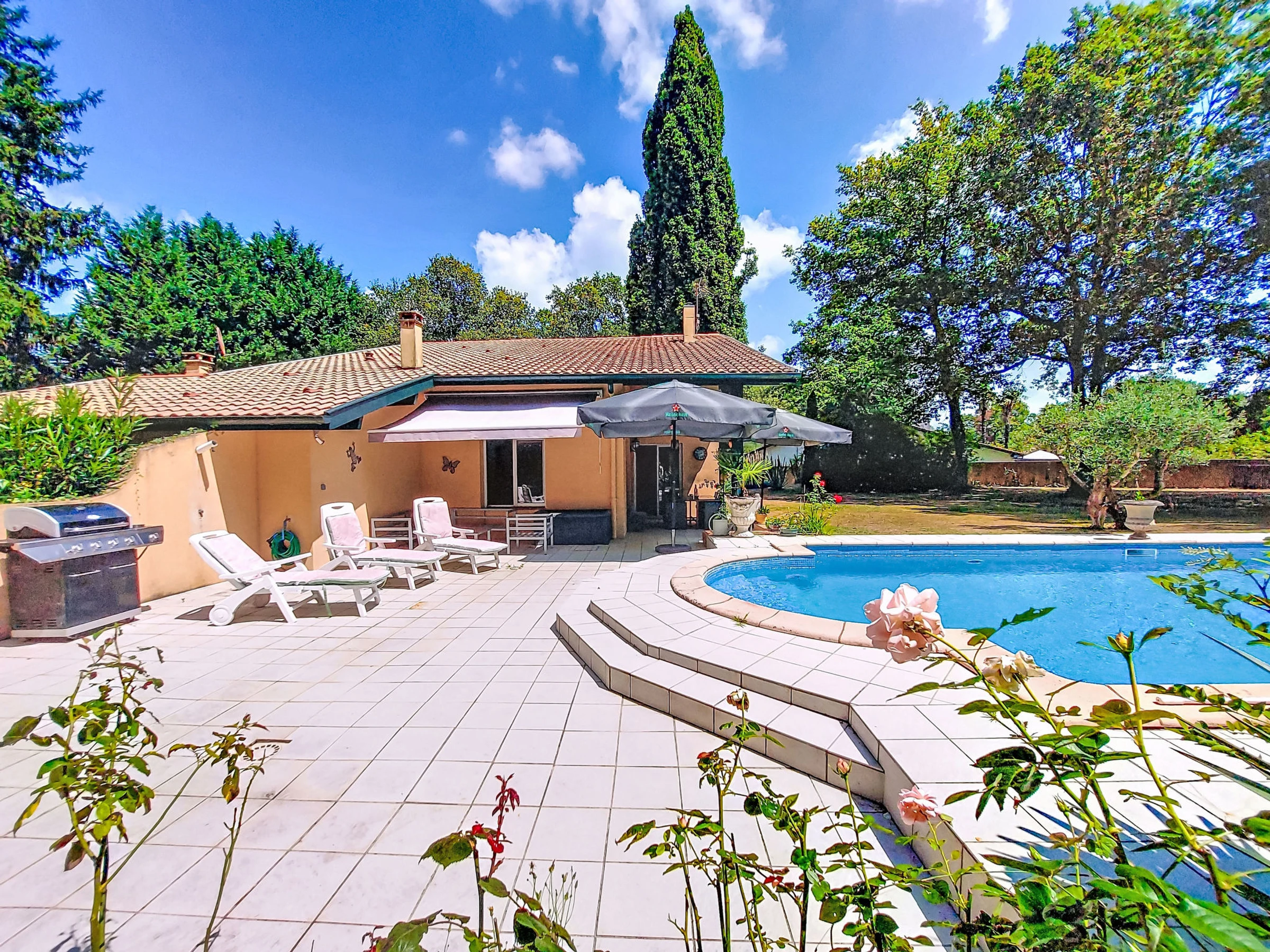 Single-family house, 2 storeys. Outside the resort, in a quiet position, 40 km from the sea, 40 km from the beach, in a cul-de-sac. Private: property 3'850 m2, swimming pool (10 x 5 m, depth 120 - 180 cm, seasonal availability: [hidden] - [hidden] Parking (for 3 cars). Carport. Shop 4 km, supermarket 4 km, restaurant 2 km, bakery 700 m, bus stop 3.8 km, railway station "Dax" 9 km, sandy beach "Soustons" 40 km, thermal baths "Dax" 6 km. Sports harbour 42 km, golf course (18 hole) 40 km, surf school 40 km, sailing school 33 km, tennis 5.5 km, riding stable 7 km. Nearby attractions: Hossegor 40 km, Bayonne 50 km.