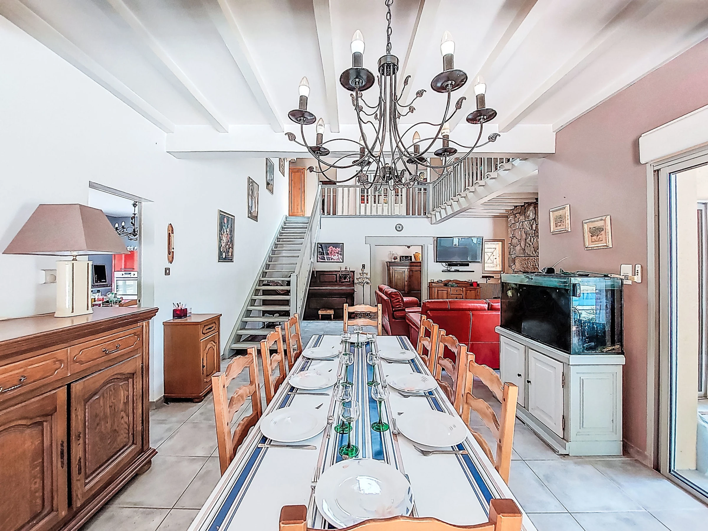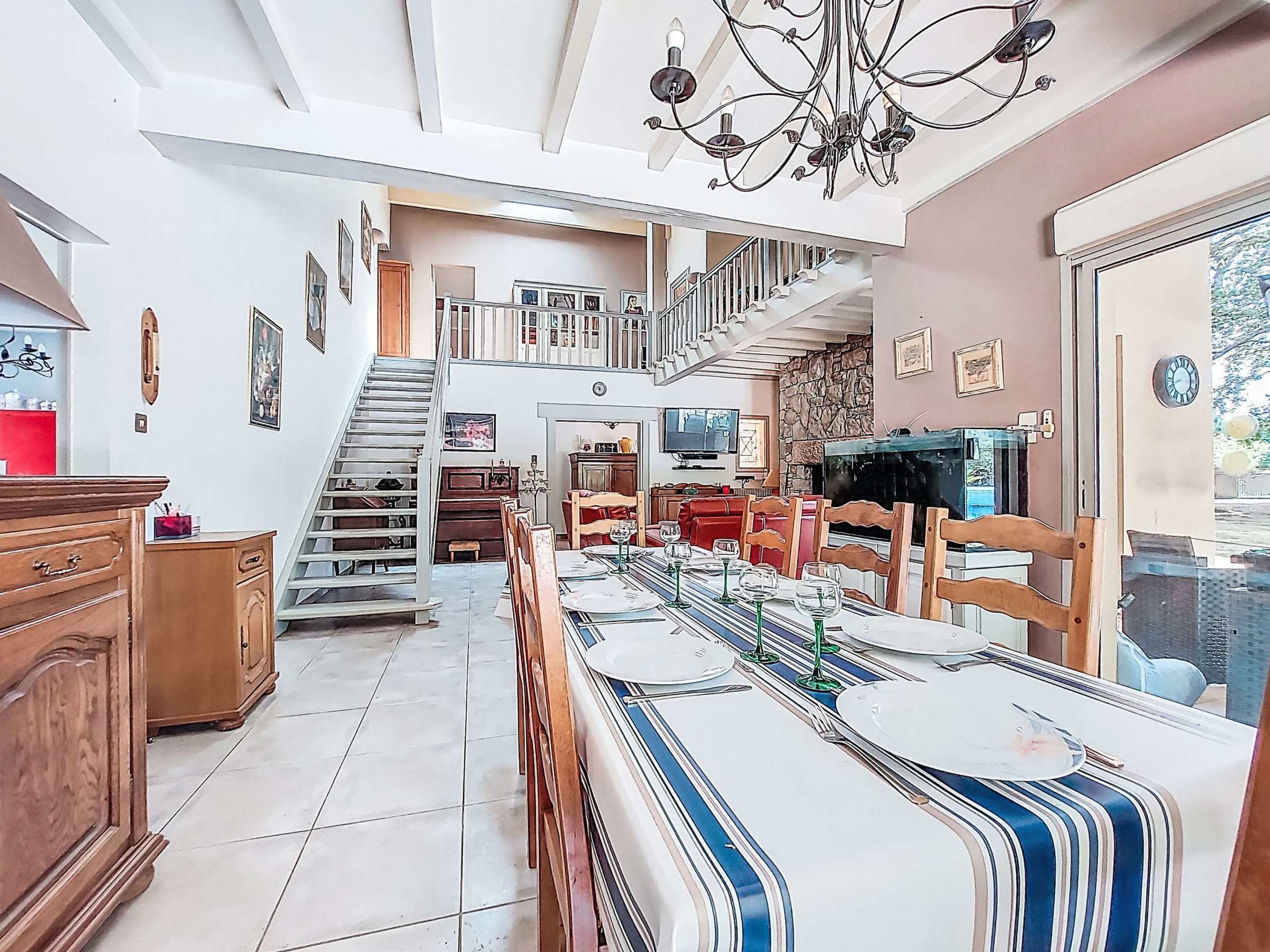 "Maison du Chêne Pointu", 5-room house 190 m2 on 2 levels. Comfortable and beautiful furnishings: living/dining room with Scandinavian wood stove and TV (flat screen). Exit to the terrace. 2 rooms, each room with 1 french bed (160 cm, length 200 cm). Kitchen (oven, dishwasher, 5 gas rings, toaster, kettle, microwave). Shower, sep. WC. Upper floor: 1 room with 1 french bed (160 cm, length 200 cm). 1 room with 1 french bed (140 cm, length 200 cm). Shower, sep. WC. Oil heating. Terrace partly roofed. Barbecue, deck chairs (4). Facilities: washing machine. Maximum 1 pet/ dog allowed. Offer by a private individual according to Art. 155, IV of CGI.