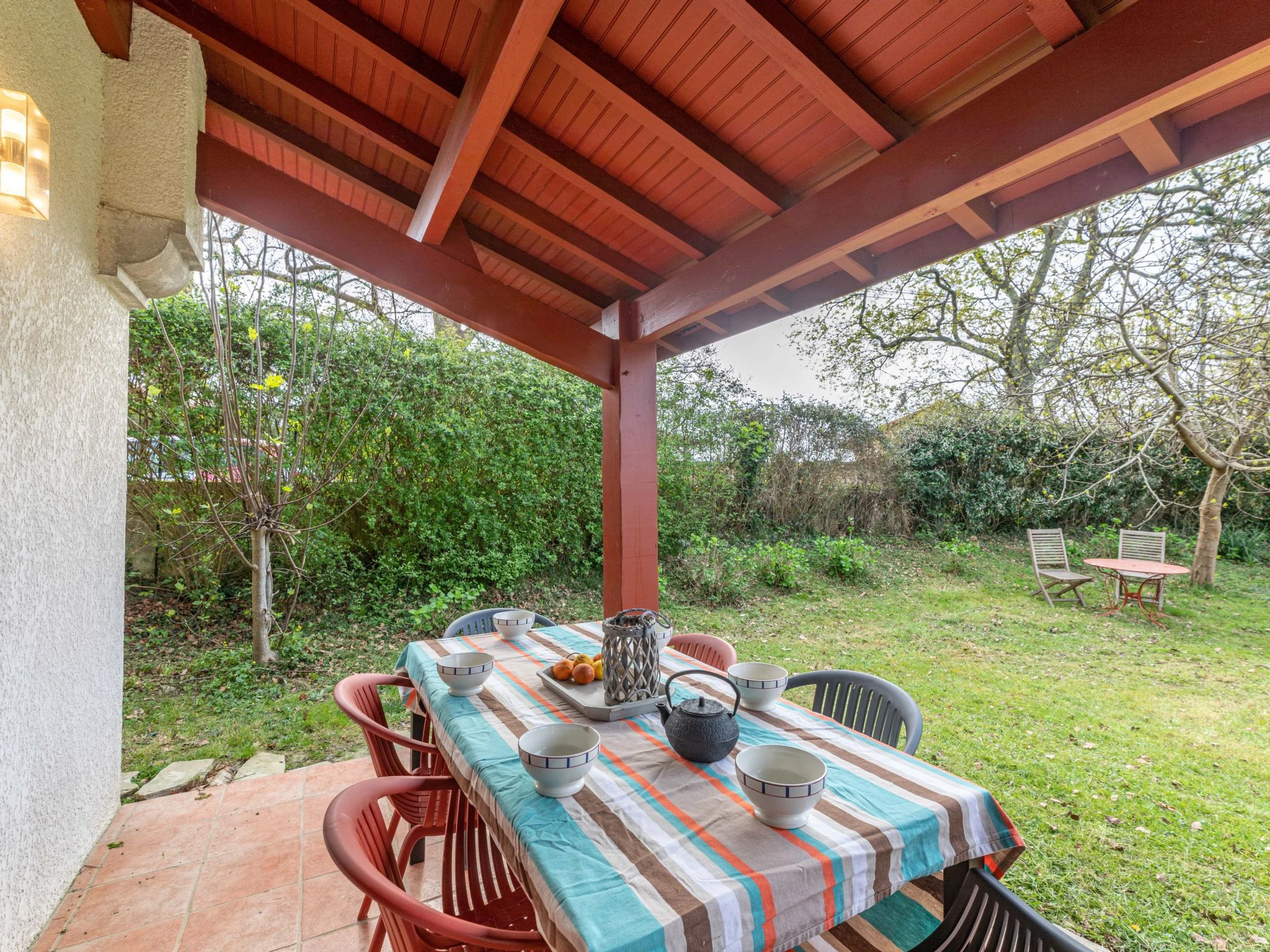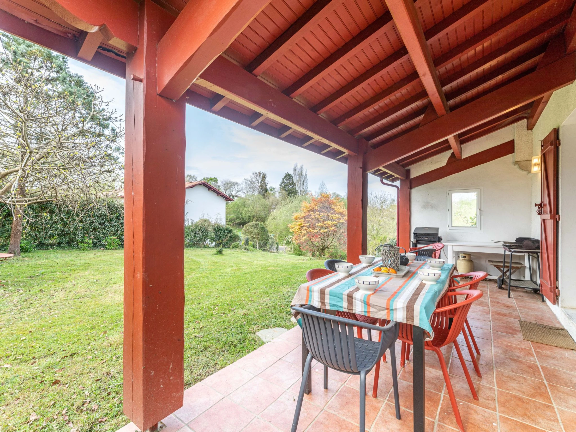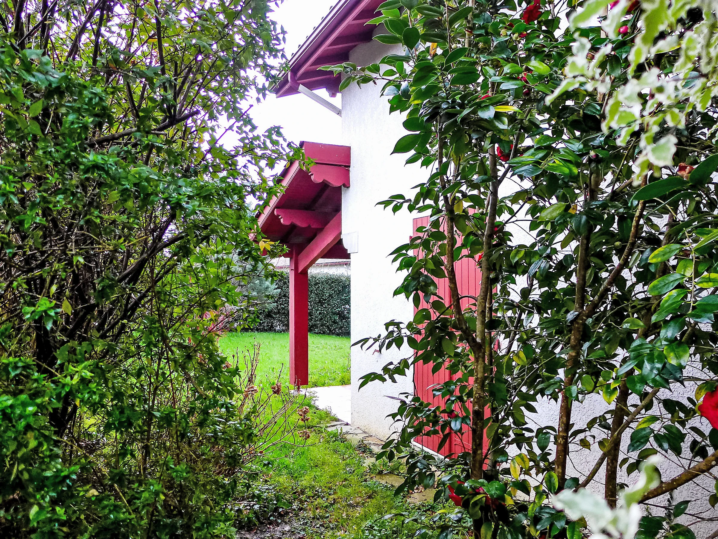 St Pée sur Nivelle 15 km from Saint Jean de Luz: Single-family house "Eki Alde". 15 km from the sea, 5 km from the lake, 15 km from the beach. Private: property 2'300 m2 (fenced), parking (for 3 cars). Grocery 1.5 km, supermarket 2 km, restaurant 1.5 km, bakery 1.5 km, bus stop 5 km, sandy beach "Saint Jean de Luz" 15 km, outdoor swimming pool 11 km, thermal baths "Cambo les Bains" 16 km, bathing lake 5 km. Golf course (18 hole) 11 km, tennis 11 km, riding stable 11 km. Hiking paths: La Rhune 12 km, Espagne 13 km. The keys‘ handover takes place by the agency in Saint Jean de Luz, 13 km.