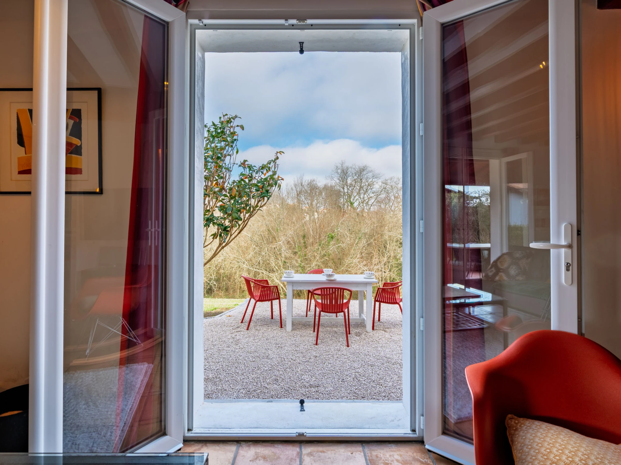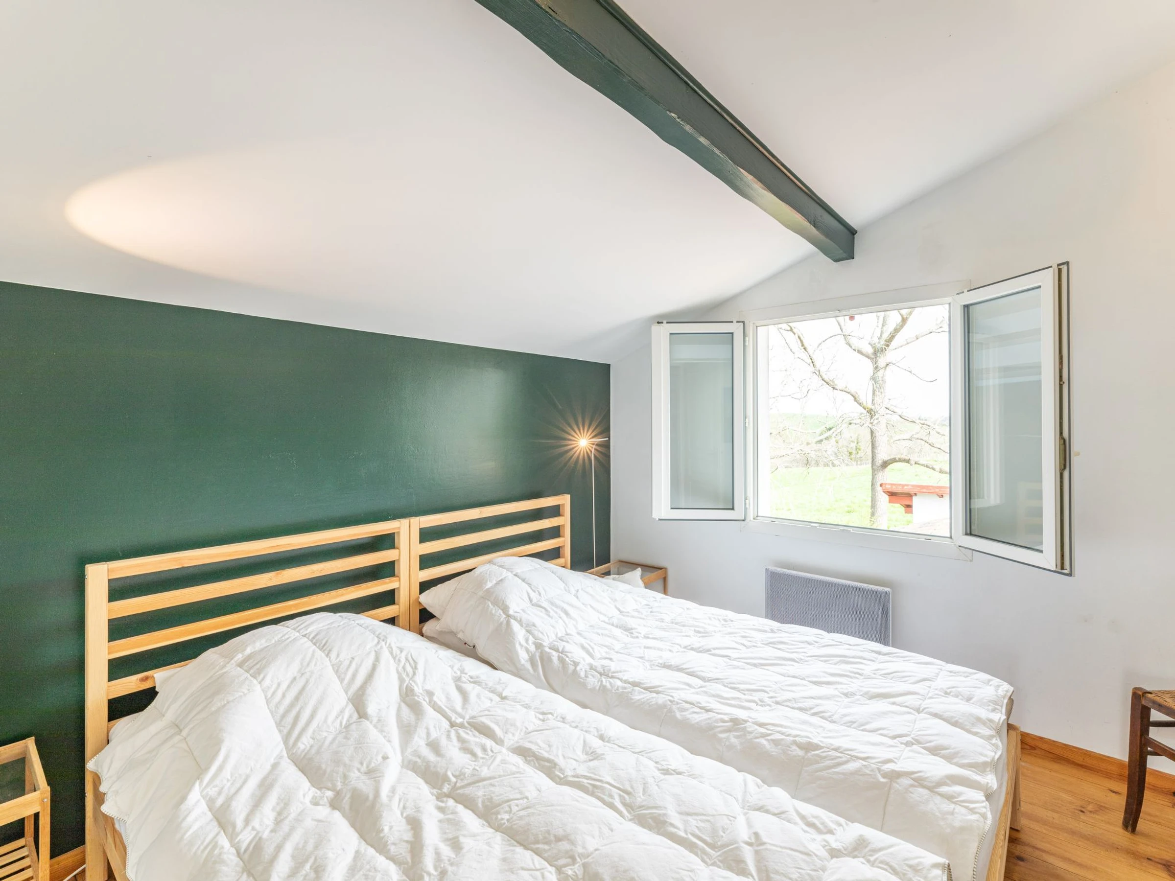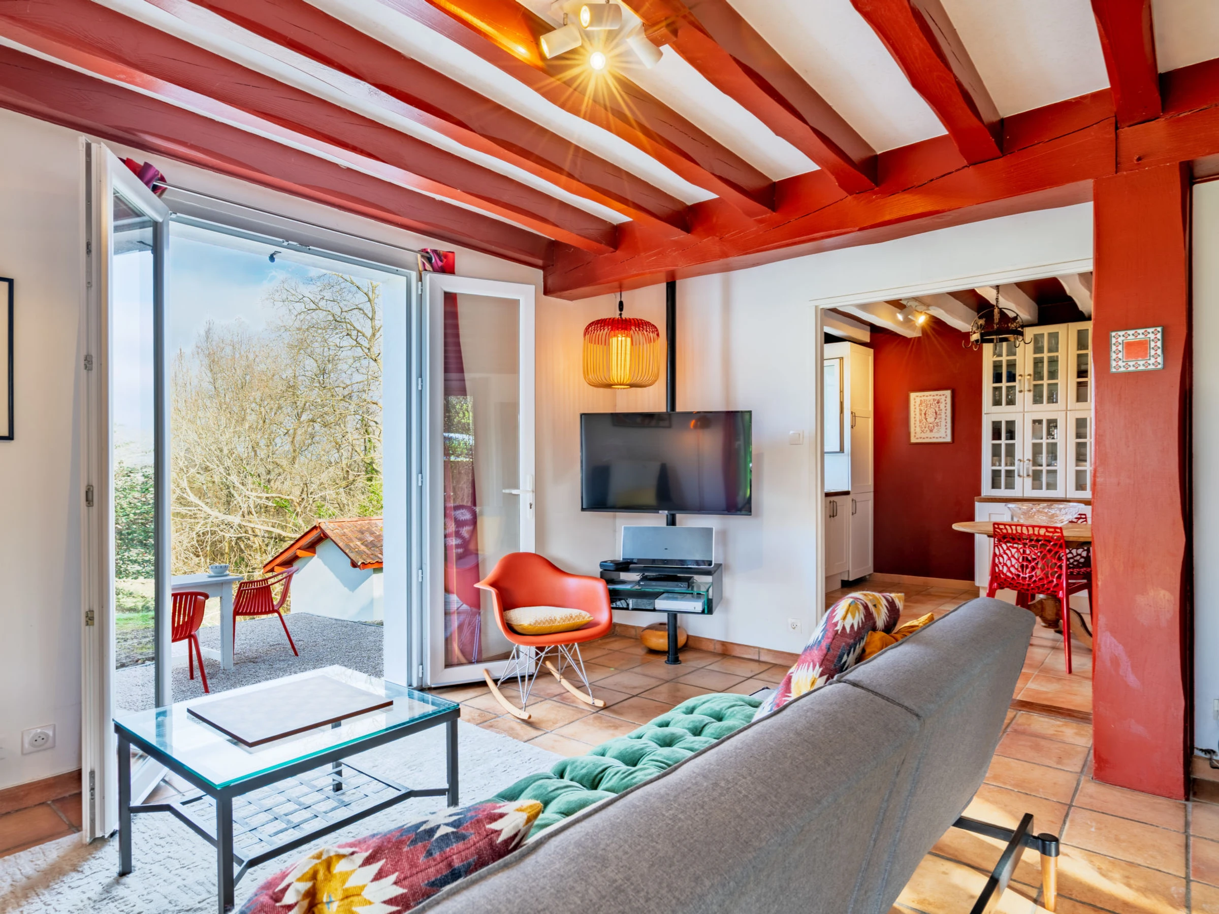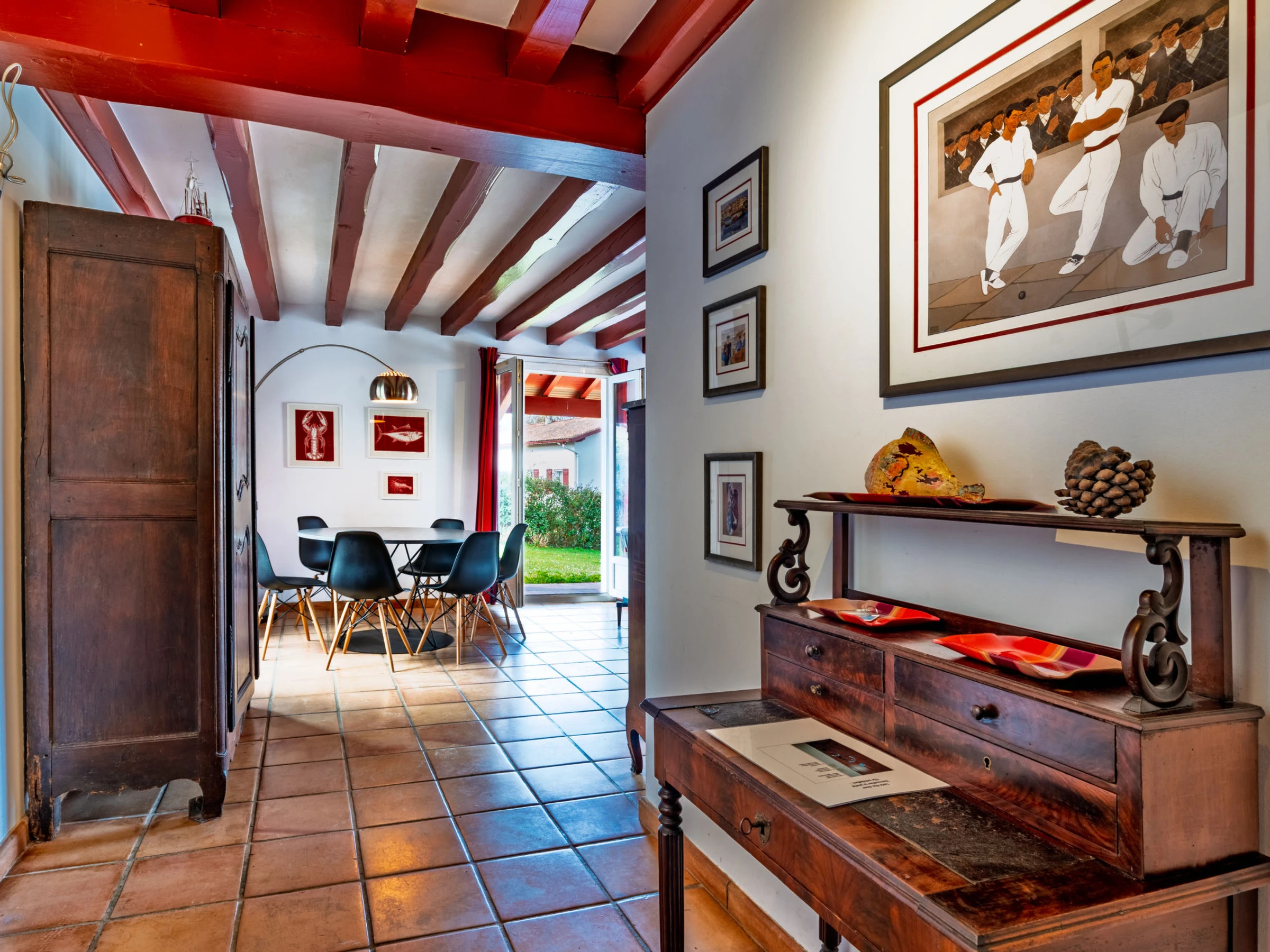 St Pée sur Nivelle 15 km from Saint Jean de Luz: Single-family house "Eki Alde". 15 km from the sea, 5 km from the lake, 15 km from the beach. Private: property 2'300 m2 (fenced), parking (for 3 cars). Grocery 1.5 km, supermarket 2 km, restaurant 1.5 km, bakery 1.5 km, bus stop 5 km, sandy beach "Saint Jean de Luz" 15 km, outdoor swimming pool 11 km, thermal baths "Cambo les Bains" 16 km, bathing lake 5 km. Golf course (18 hole) 11 km, tennis 11 km, riding stable 11 km. Hiking paths: La Rhune 12 km, Espagne 13 km. The keys‘ handover takes place by the agency in Saint Jean de Luz, 13 km.