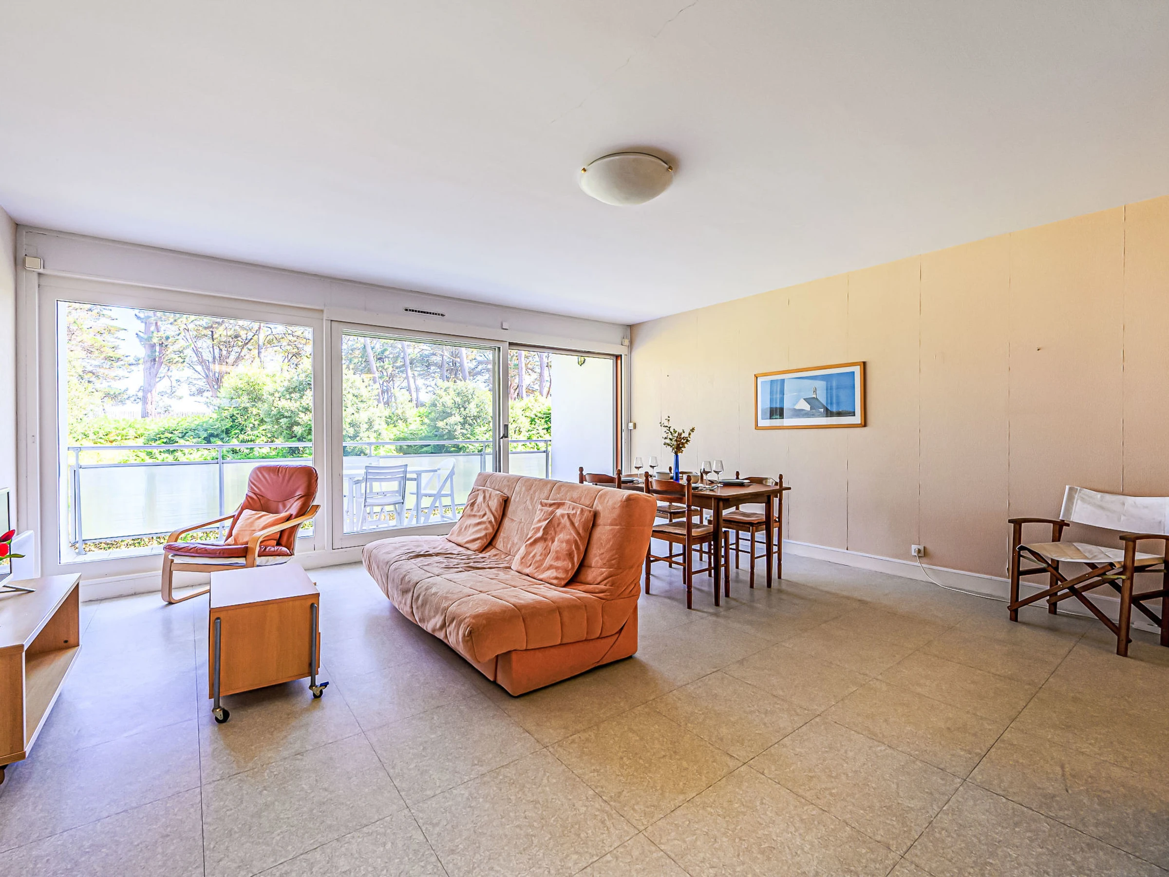 St Philibert 7 km from Carnac: Residence "Men Er Bellec", 5 storeys, surrounded by trees. From the sea, 50 m from the beach. In the complex: lift. Parking. Shop 2 km, restaurant 500 m, bar 2 km, bakery 2 km, sandy beach "Men Er Beleg" 50 m, thermal baths "Thalassothérapie de Carnac" 8 km. Marina 5 km, golf course (18 hole) 20 km, sailing school 2 km. Nearby attractions: La Trinité sur Mer 4 km, Locmariaquer - Golf du Morbihan 4 km, Alignements de Carnac 8 km, Auray 14 km, Presqu'Ile de Quiberon belle ile en Mer 21 km, Vannes 30 km. Please note: suitable for families. Groups of teenagers on request only. The keys‘ handover takes place by the agency in Carnac, 7 km.