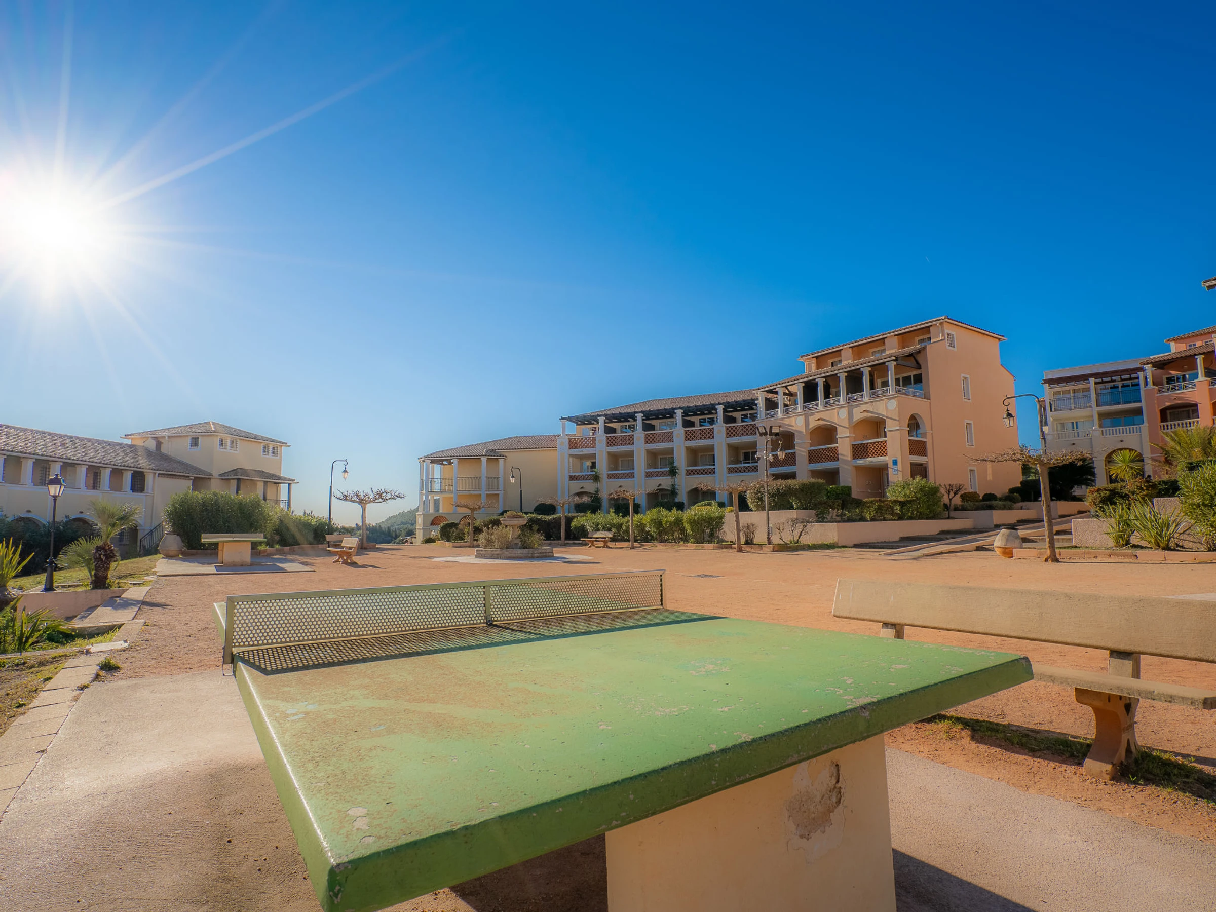 Large resort "Village Cap Estérel - Le Belvédère". On the outskirts, 2 km from the centre of Agay, on a slope, in the residential district, 400 m from the sea, 350 m from the beach, road to cross, on the golf course, in a pedestrian area. For shared use: park 210 ha, 5 swimming pools (seasonal availability: [hidden] - [hidden] Children's pool, boccia, children's playground (slide, swing). In the complex: spa area (extra), shopping facilities, laundry (extra). Shop, grocery 200 m, supermarket 6 km, restaurant 150 m, bakery 500 m, bus stop "Ligne 21" 300 m, railway station "Saint-Raphaël-Valescure TGV" 9 km, sandy beach "Tiki Plage" 900 m. Marina 1 km, golf course (9 hole), tennis 500 m. Nearby attractions: Anthéor 8 km, Saint-Raphaël 9 km, Fréjus 13 km, Cannes 33 km, Saint-Tropez 50 km, Nice 76 km. Well-known lakes can easily be reached: Lac Saint-Cassien. Hiking paths: Massif de l'Estérel. Please note: car-free holiday complex, no lift. Entertainment in the season. Suitable for families, childminding in the season (extra). Guarded residence. The keys‘ handover takes place by the agency in Cap Estérel. Additional accommodations can be booked. Access to the apartments is via steps, even on the ground floor.