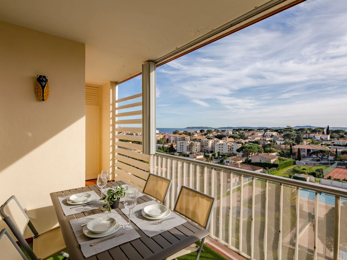Animals are prohibited in the condominium, the garden and the swimming pool. Elevators stop at 1/2 floors. Residence "Les Côteaux du Préconil". In the resort 800 m from the centre of Sainte Maxime, in a sunny position, 800 m from the sea, 800 m from the beach. For shared use: large, well-kept garden, swimming pool angular (25 x 10 m, depth 200 - 120 cm, seasonal availability: [hidden] - [hidden] Children's pool, outdoor shower, tennis, boccia. In the complex: lift, storage room for bicycles. Parking (limited number of spaces). E-charging station. Shop 500 m, grocery 450 m, supermarket 1.2 km, bus stop 1 km, railway station "TGV Saint-Raphaël" 20 km, sandy beach "Centre ville" 800 m, thermal baths "Thalassothérapie Les Issambres" 7 km. Sports harbour 1.2 km, golf course (18 hole) 5 km, sailing school 1 km, tennis 50 m. Nearby attractions: Aqualand waterpark 2.5 km, St Tropez,Ramatuelle 15 km, Port Grimaud 8 km, Gorges du Verdon 75 km, Navette / shuttle boat St-Tropez 15min 1.2 km. Hiking paths: Massif des Maures 5 km, Massif de l'Estérel 20 km. Please note: residence with electric gates. Airfield 60 km from the property.