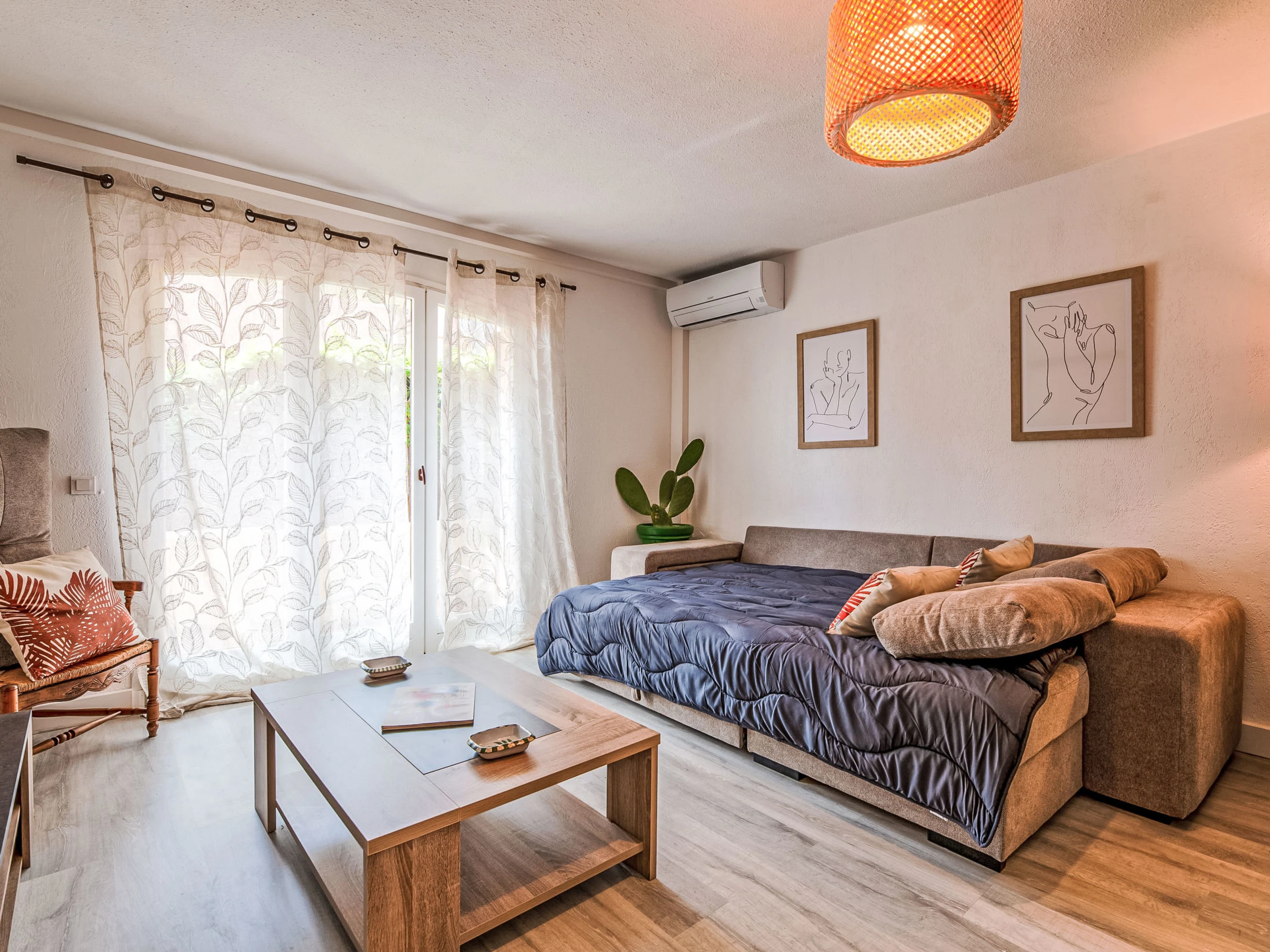 2-room apartment 50 m2, on the ground floor, south facing position. Renovated in 2025, comfortable and beautiful furnishings: living/dining room with 1 double sofabed (140 cm, length 190 cm), TV (flat screen). Exit to the terrace. 1 room with 1 french bed (160 cm, length 200 cm). Open kitchen (oven, dishwasher, 4 induction hot plates, toaster, kettle, electric coffee machine). Bathroom, sep. WC. Air-conditioning, forced-air heating. Terrace 10 m2. Terrace furniture. Partial view of the sea. Facilities: washing machine, iron, hair dryer. Internet (WiFi, free). Garage. Please note: non-smokers only. Maximum 1 pet/ dog allowed. Smoke alarm. Offer by a private individual according to Art. 155, IV of CGI. [hidden]