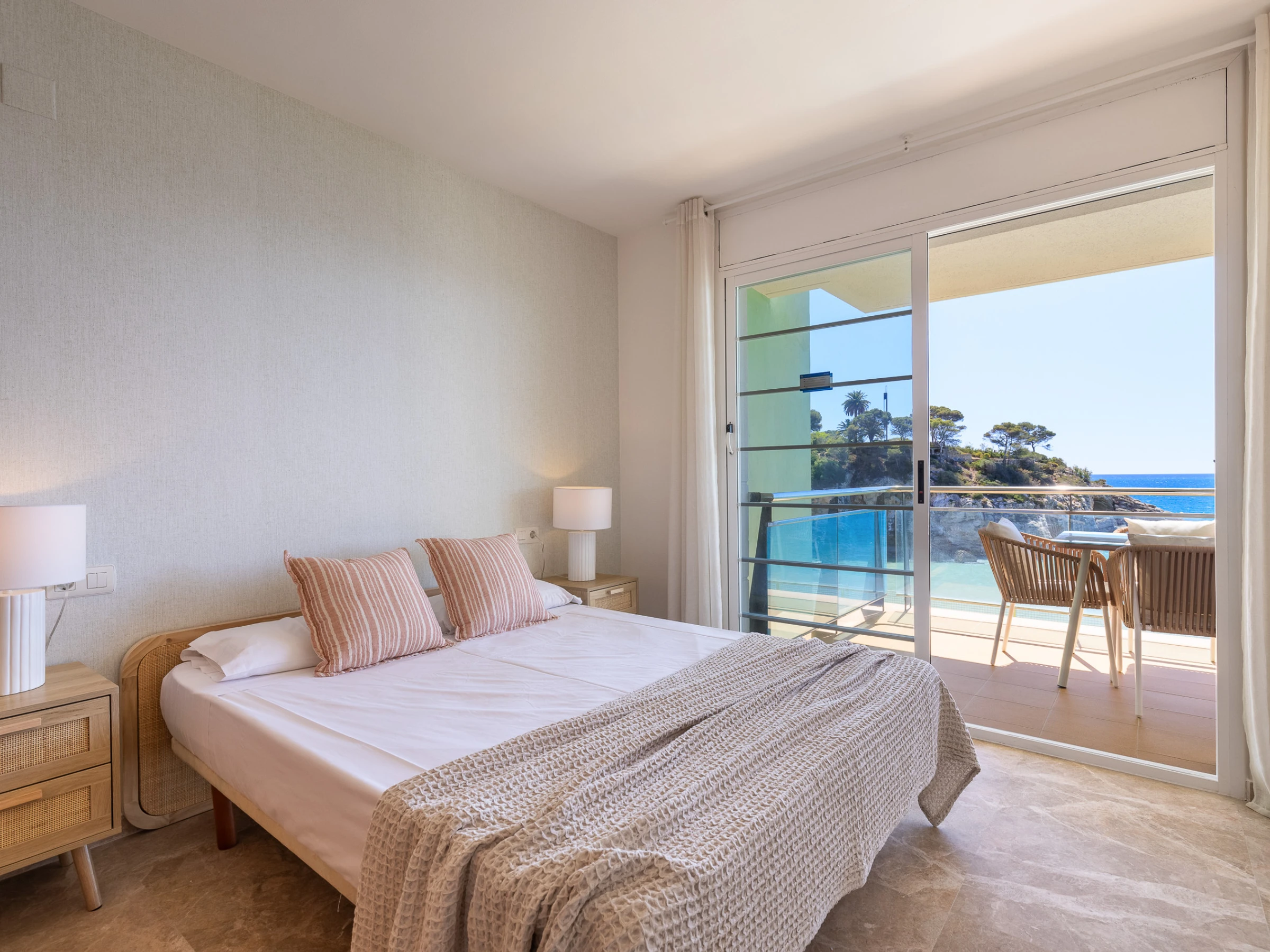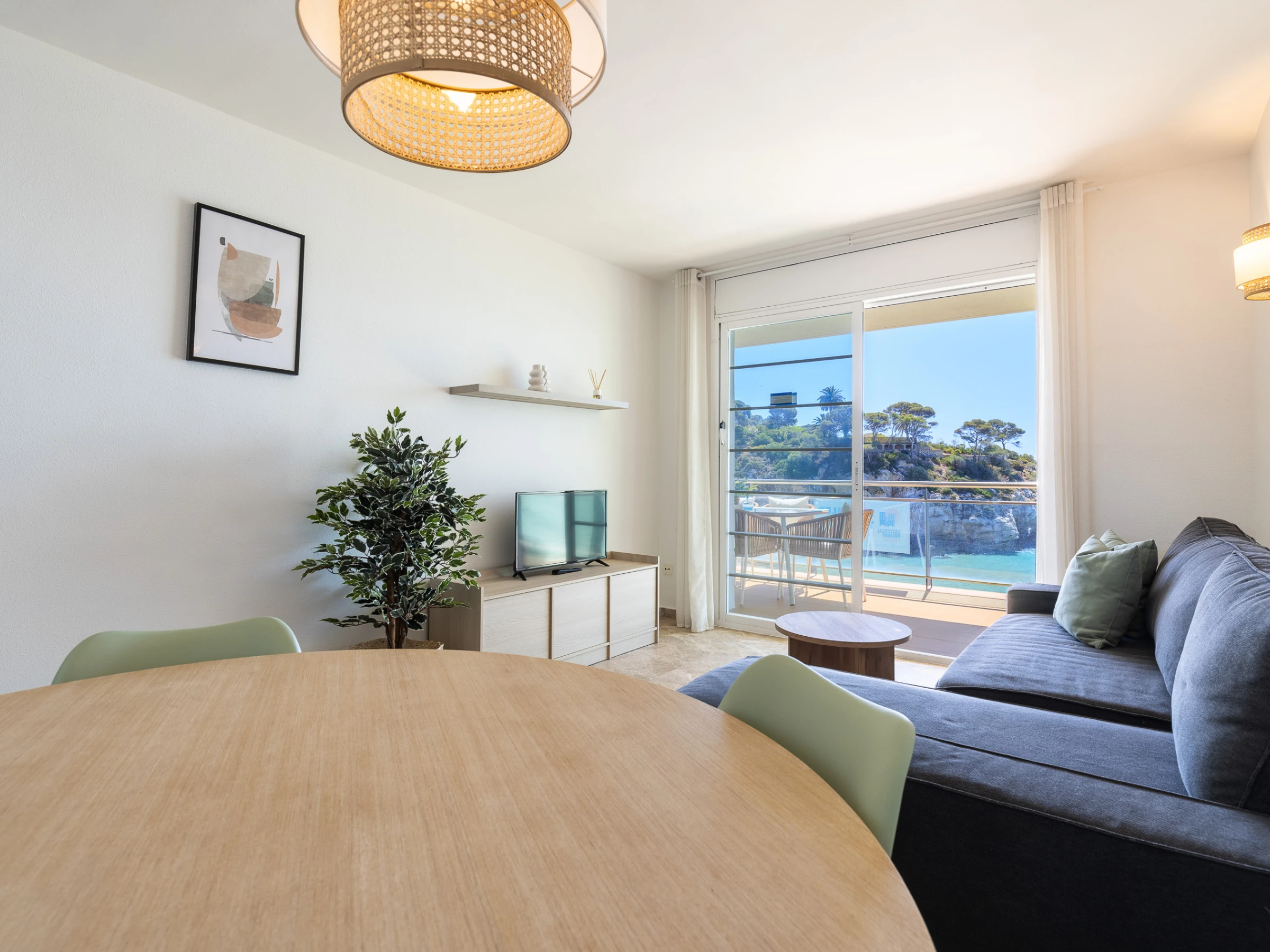 With capacity for up to 6 people, with 2 double bedrooms and 1 bathroom, it is distributed in a spacious and bright living-dining room with sofa bed, fully equipped independent kitchen and a large 14m terrace with impressive sea views. The terrace has a table to enjoy meals with family and one of the most beautiful sunsets on the Costa Dorada.