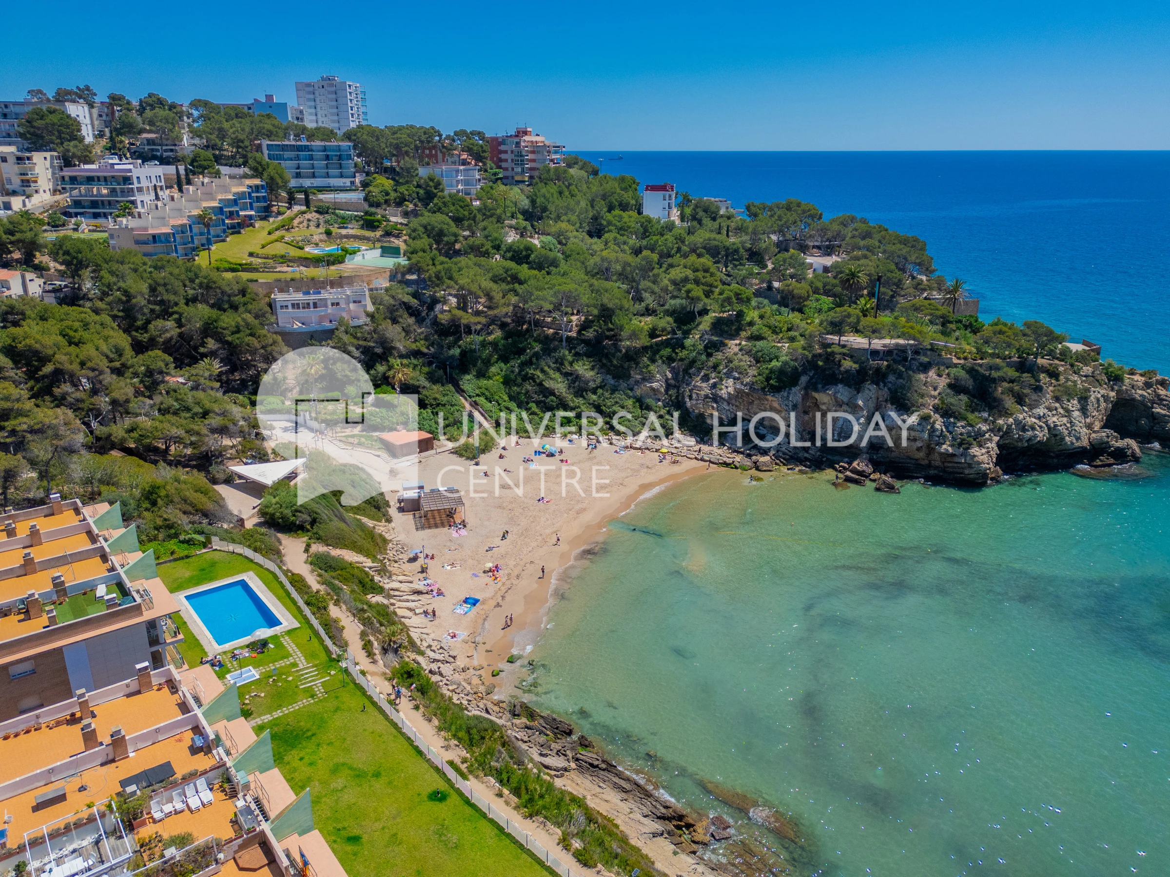 They are located in the Cap Salou area, just opposite Cala Crancs beach. The communal garden has direct access to the beach through a small path, but if you are travelling with very young children, we recommend accessing it via the street, where the slope is gentler.