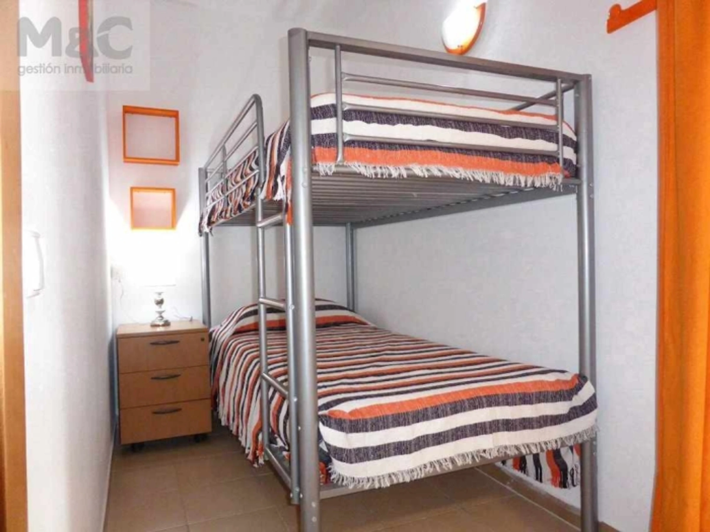 Nice renovated apartment. 1 double bedroom + 1 cabin. Living room, kitchenette, large terrace, overlooking gardens and pool. Air conditioning and WI-FI connection (both included in the price). Communal area with swimming pools, gardens, sports court, mini-golf and games for children. A few meters from Carles Buïgas Avenue. 300 meters from the beach. Area with many shops (supermarkets, restaurants, pubs and nightclubs). Air conditioning and WI-FI connection. Sheets, towels and final cleaning included. Nice updated apartment. 1 double bedroom + 1 cabin. Living room, American kitchen, large terrace, overlooking the gardens and pool. Air conditioning and WI-FI connection (both included in the price). Community area with swimming pools, gardens, sports court, mini golf and games for children. A few meters from Carles Buïgas avenue. 300 meters from the beach. Area with many shops (supermarkets, restaurants, pubs and discos). INCLUDED IN THE PRICE: SHEETS, TOWELS AND FINAL CLEANING.WIFI INCLUDED. Public transport less than 50 meters away. Pool open from June 20 to September 13. Crib on request: 10 € per [hidden], on request: 40 € (for the whole stay).tourist tax: 1,10 €/night/person over 16 years old (during the first 7 nights).