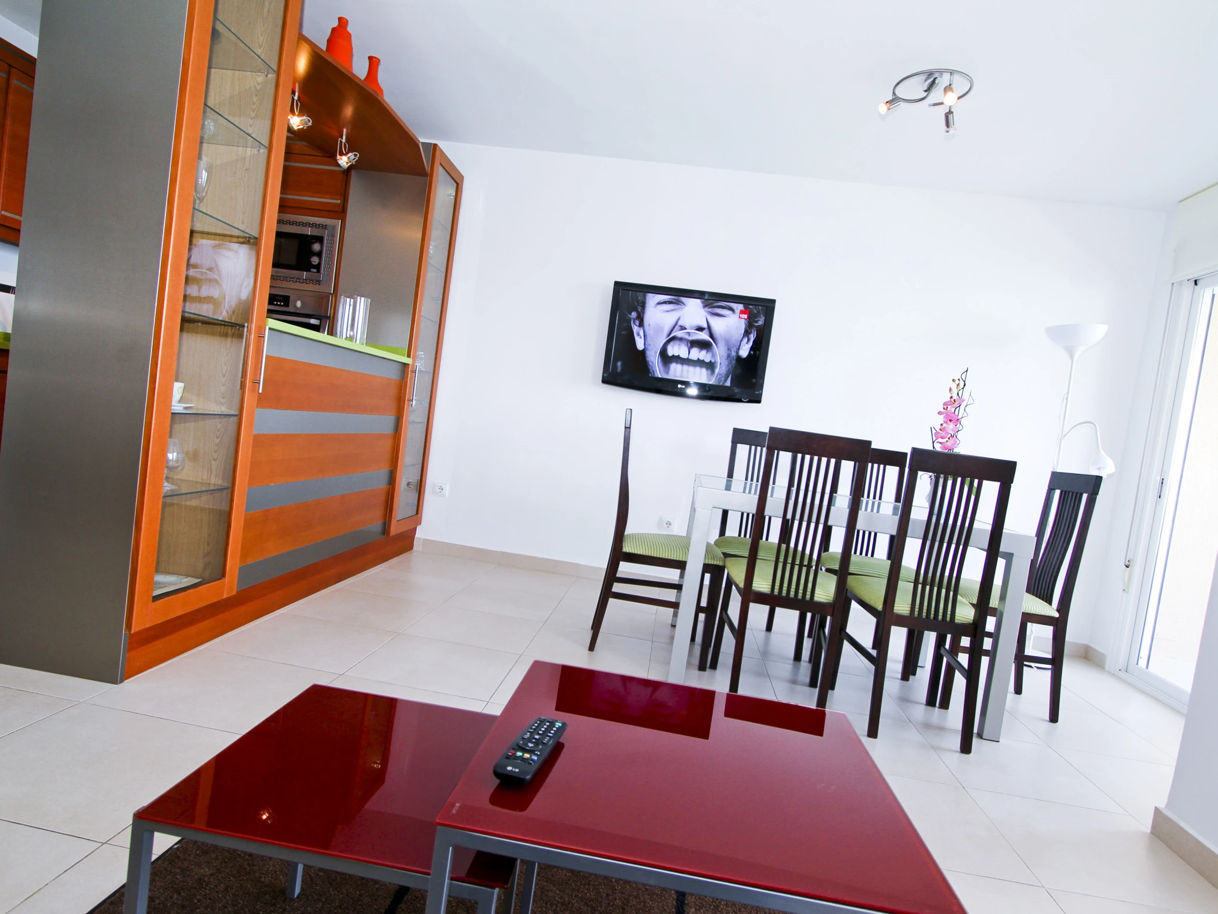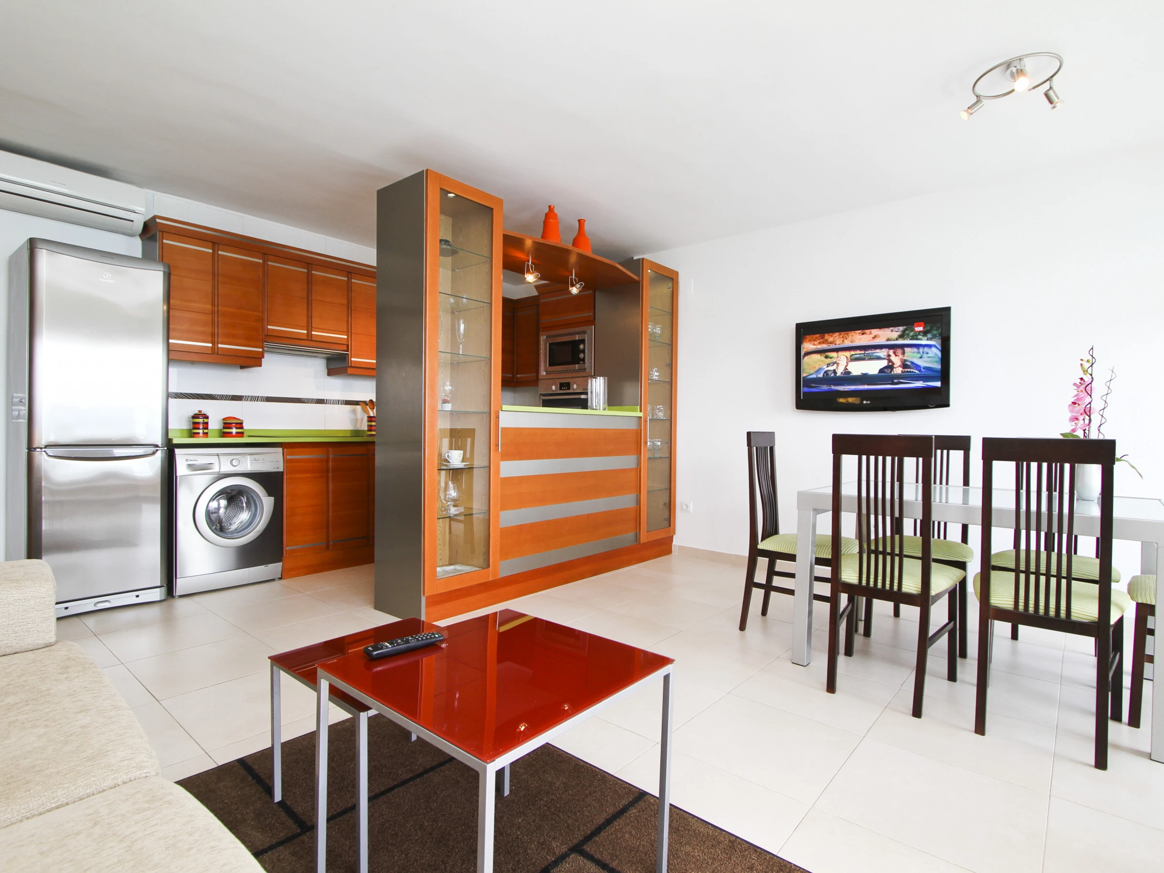ποΈ Bright living-dining room with air conditioning, double sofa bed and direct access to a furnished terrace, perfect for relaxing outdoors.