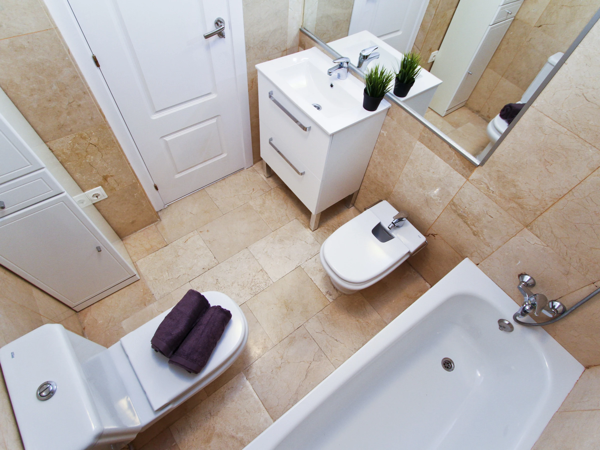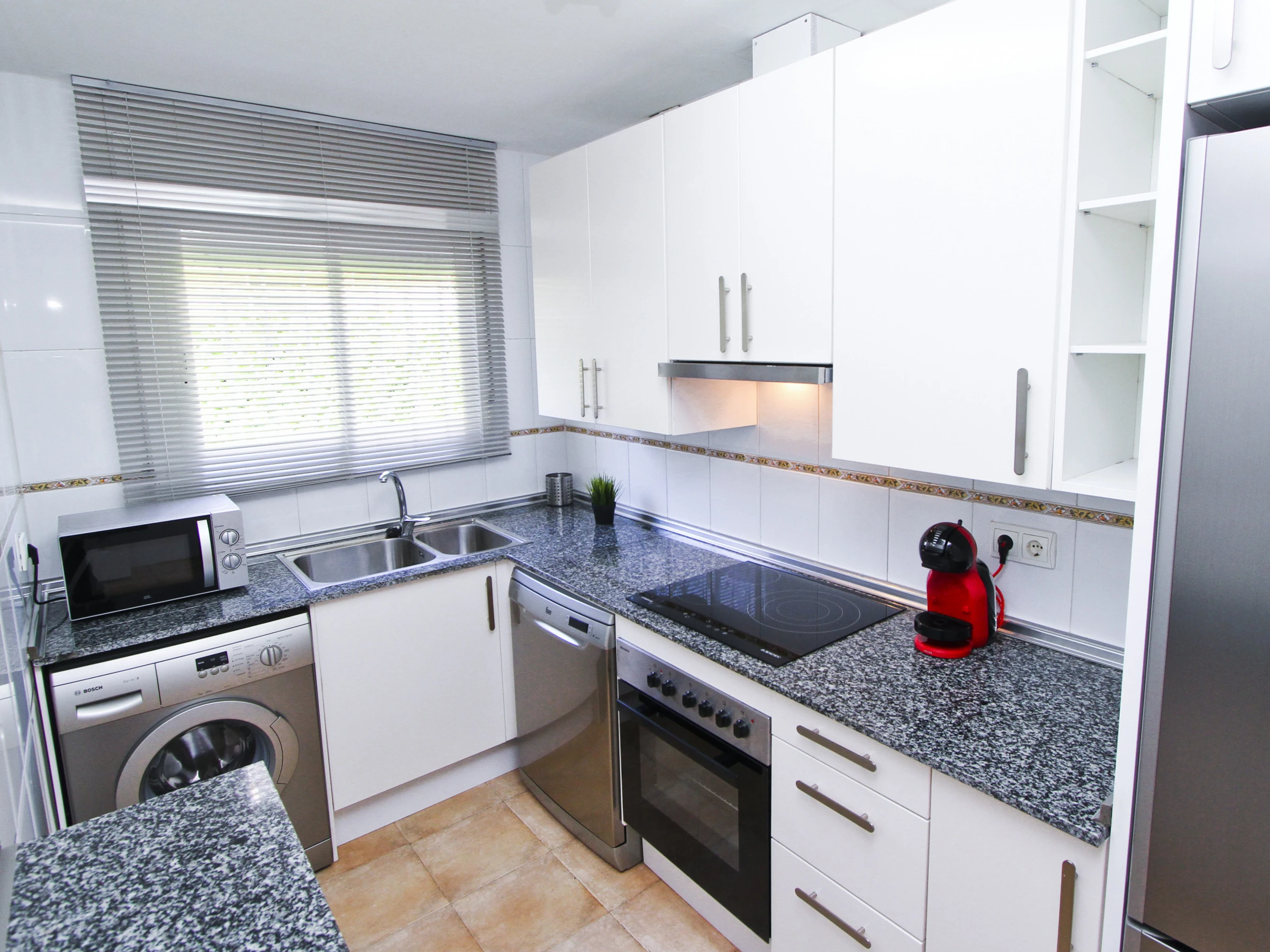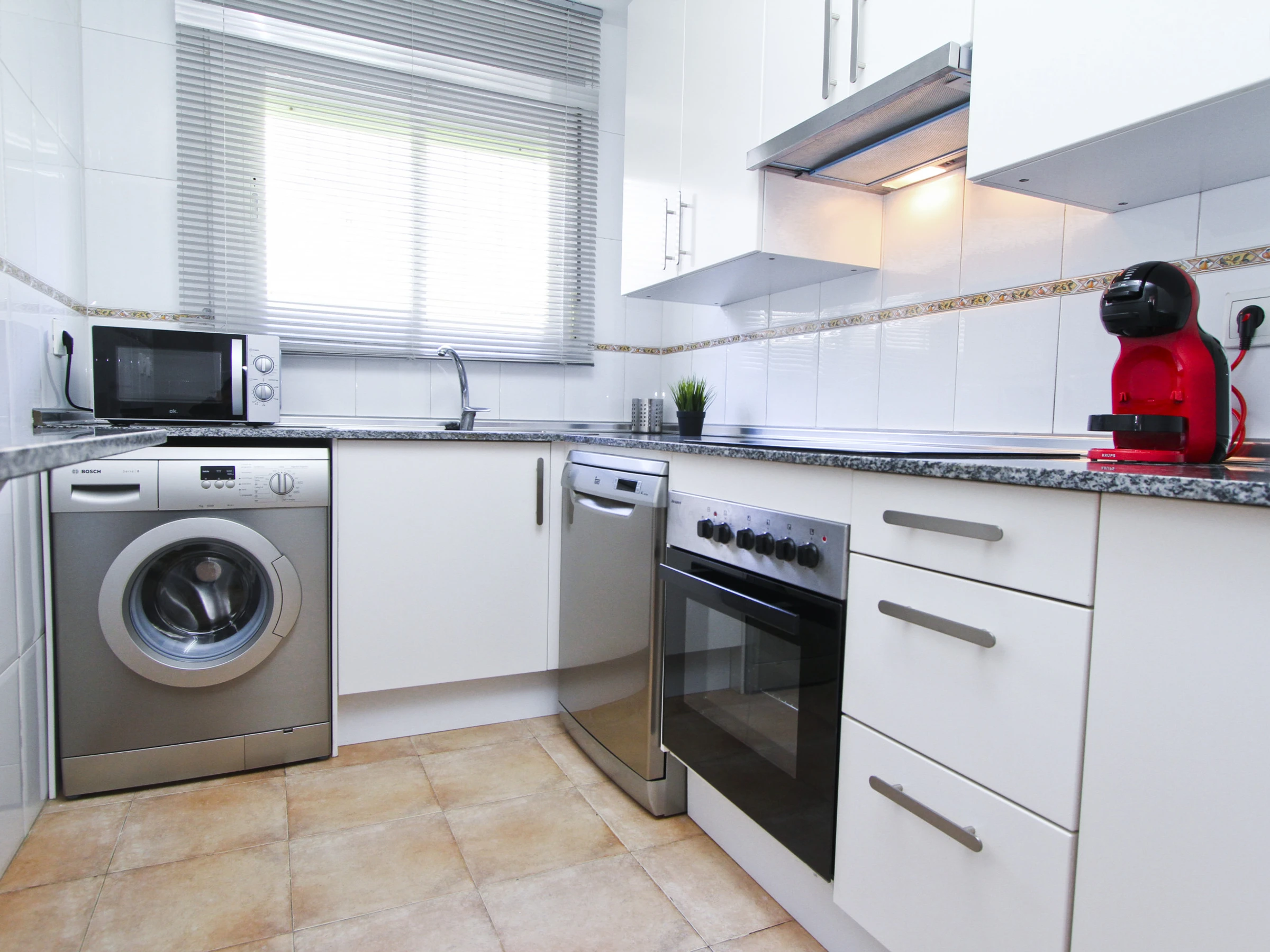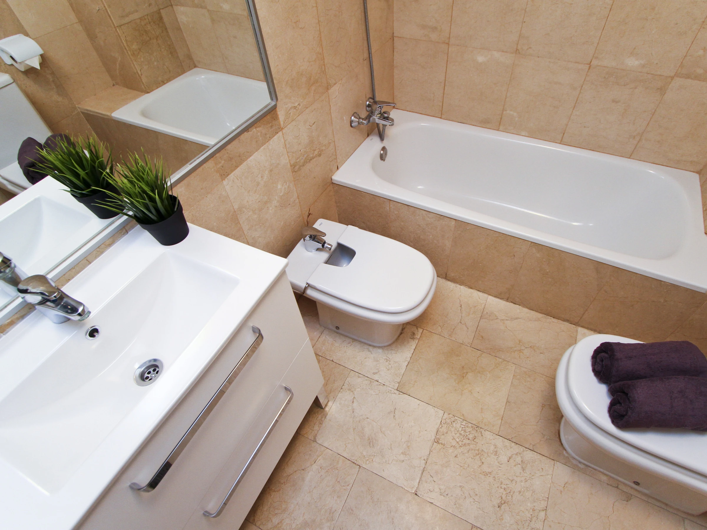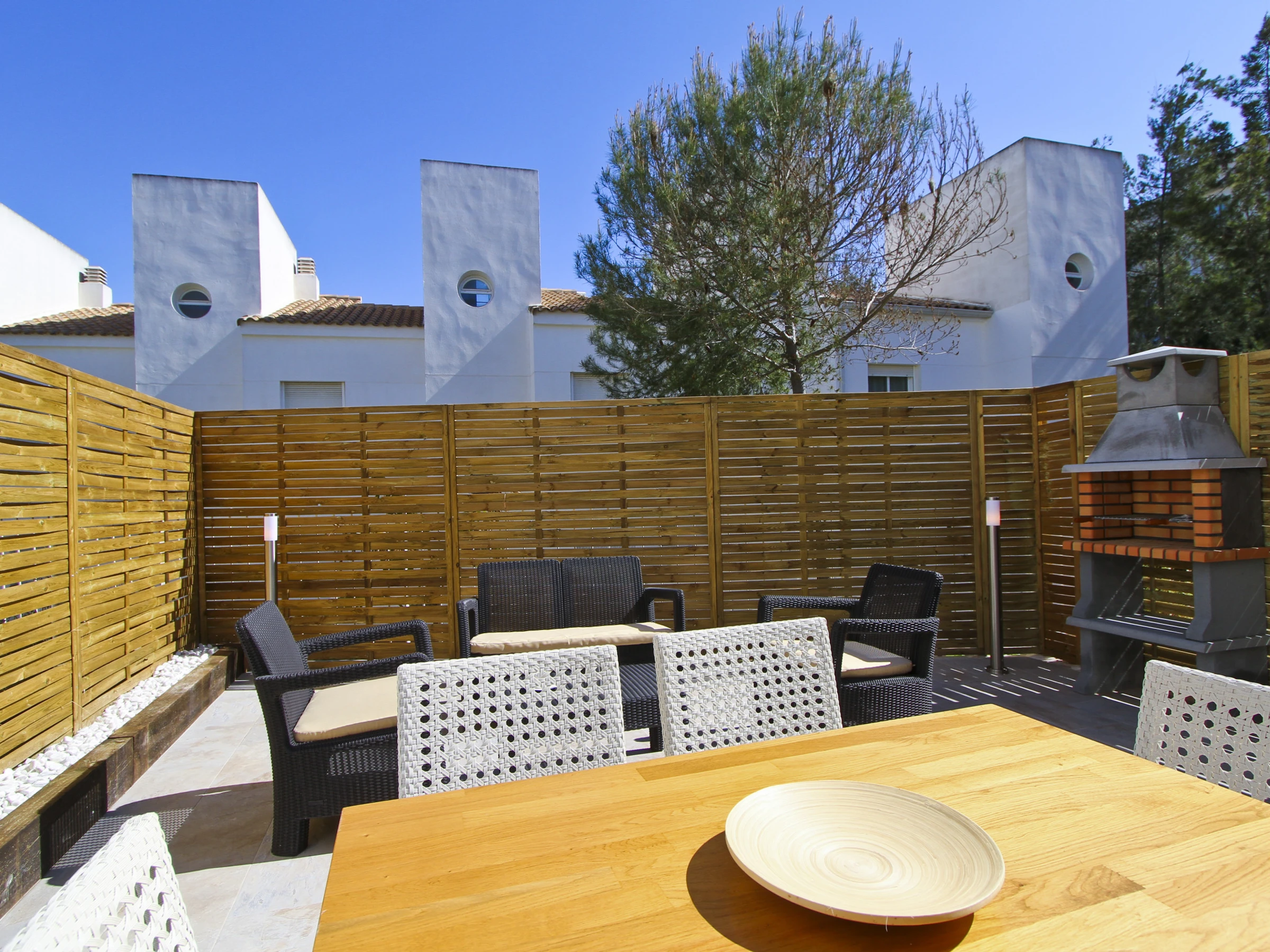 Air conditioning throughout the house, TV, WiFi, washing machine, bed linen and towels with weekly replacement, outdoor furniture and private parking space in the same building.