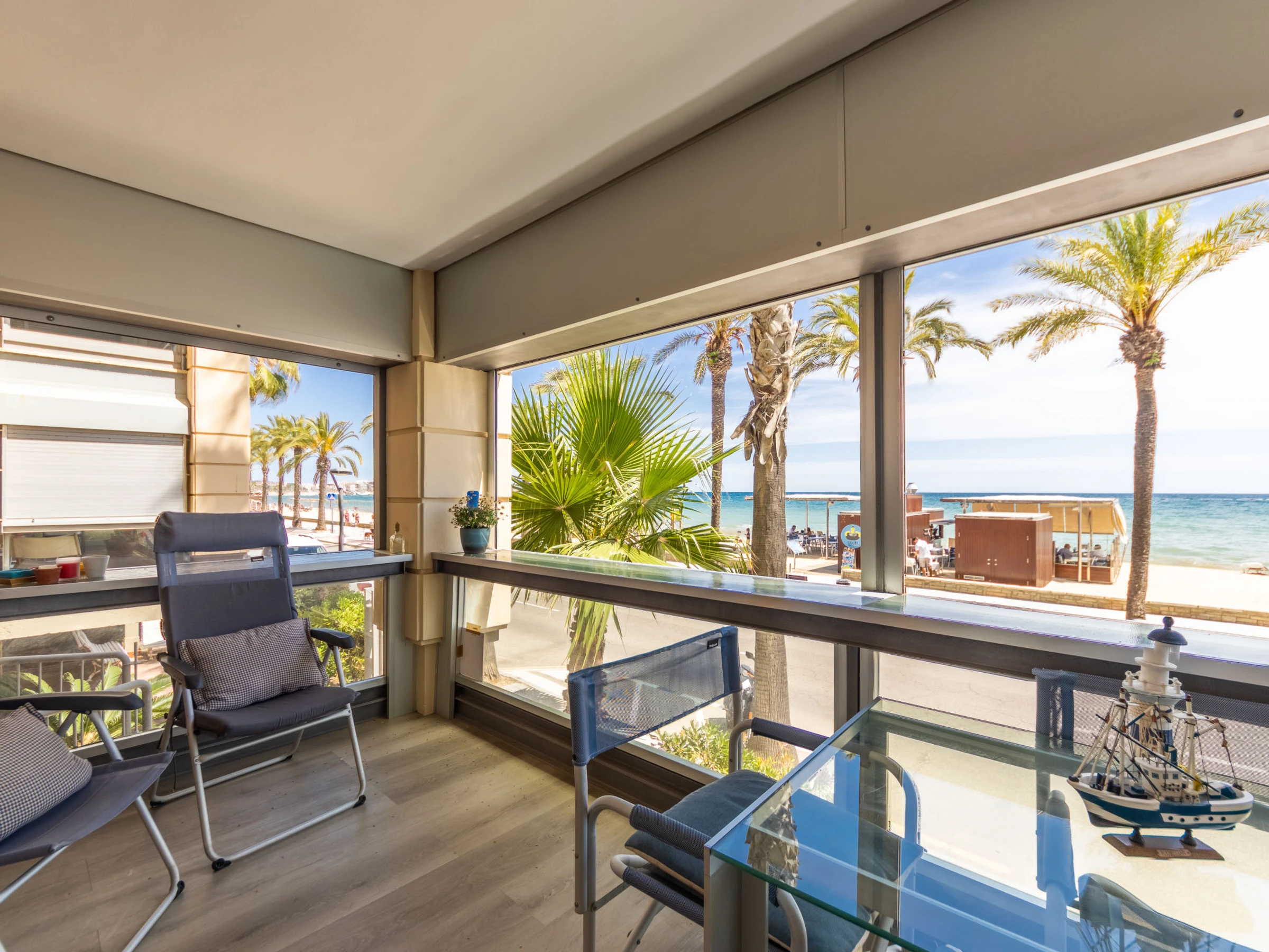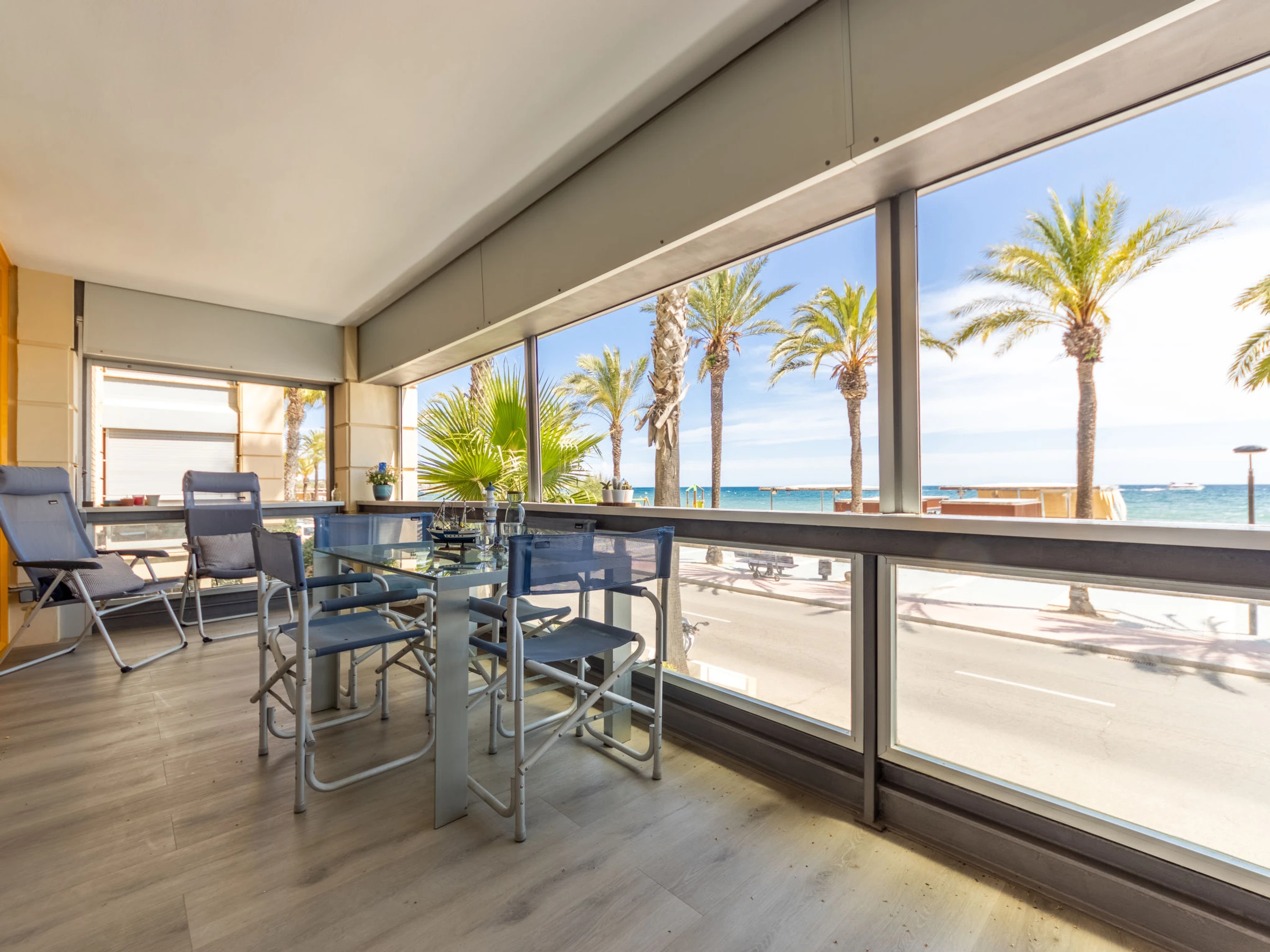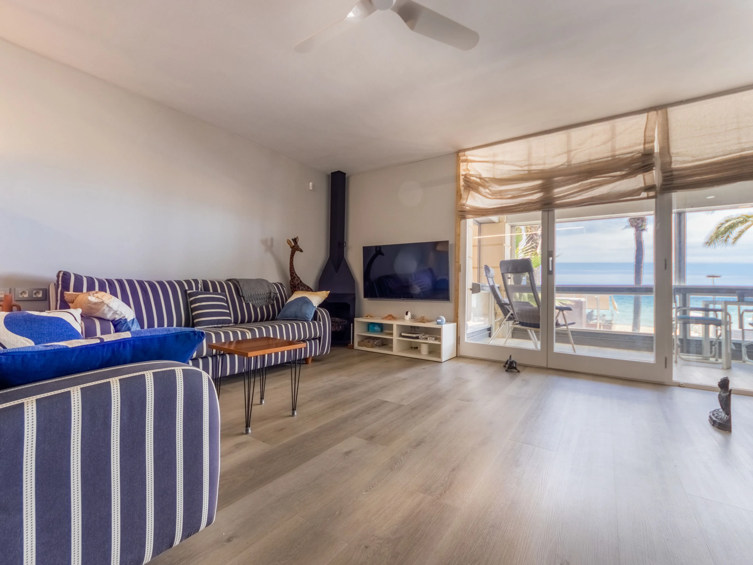 "Ancla Roja", 3-room apartment 119 m2 on 1st floor. Modern and cosy furnishings: living/dining room with sliding door with digital TV and air conditioning. Exit to the terrace, to the loggia. 1 room with 1 french bed (150 cm, length 190 cm), bath/shower and fan. 1 room with 2 beds (90 cm, length 190 cm), fan. 1 room with 2 pull-out beds (4 pers. 2 x 90 cm, length 190 cm). Kitchen (oven, dishwasher, 4 ceramic glass hob hotplates, toaster, kettle, microwave, electric coffee machine, Capsules for coffee machine (Delonghi Nespresso)). Shower/WC. Heating not available in all rooms. Terrace. Terrace furniture, balcony furniture. Very beautiful view of the sea. Facilities: washing machine, iron, hair dryer. Internet (WiFi, free). Suitable for families. [hidden] // Reg. Nr.: ESFCTU00004302400017963900000000000000[hidden]-794