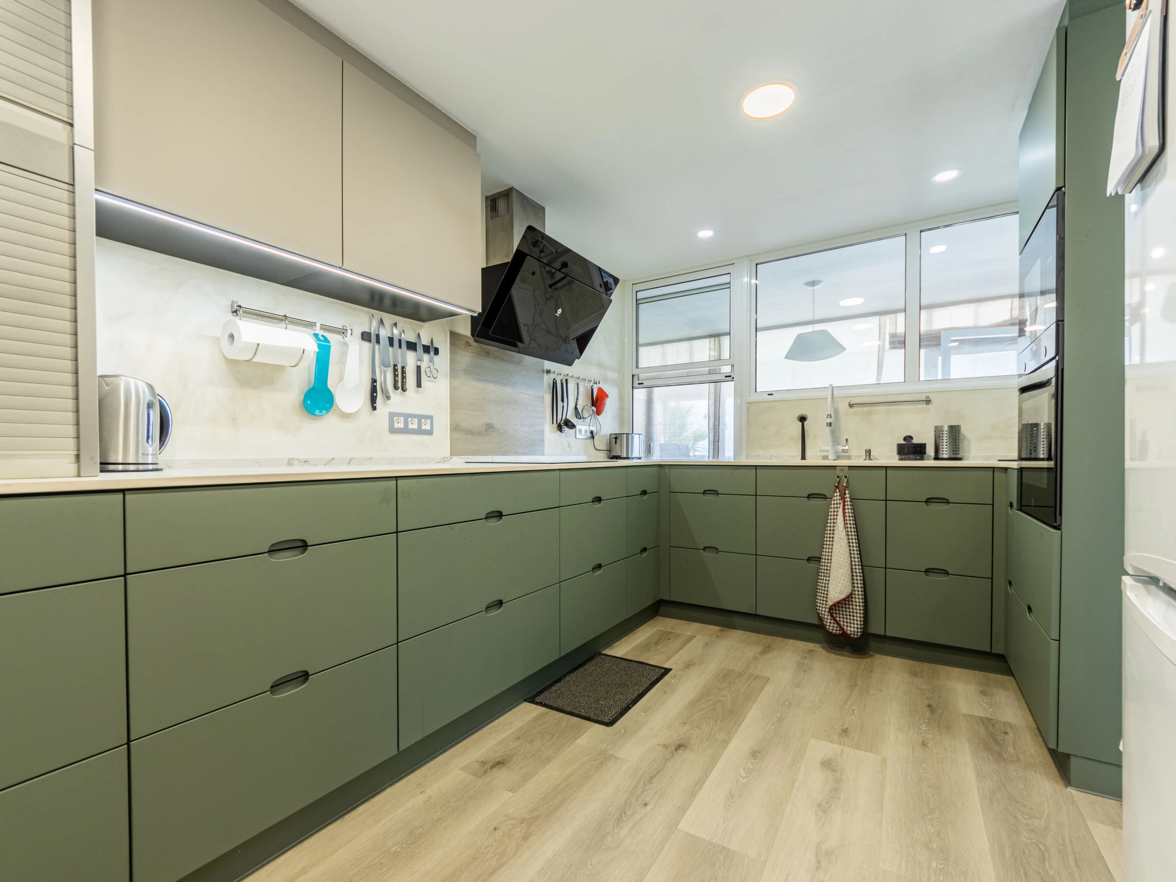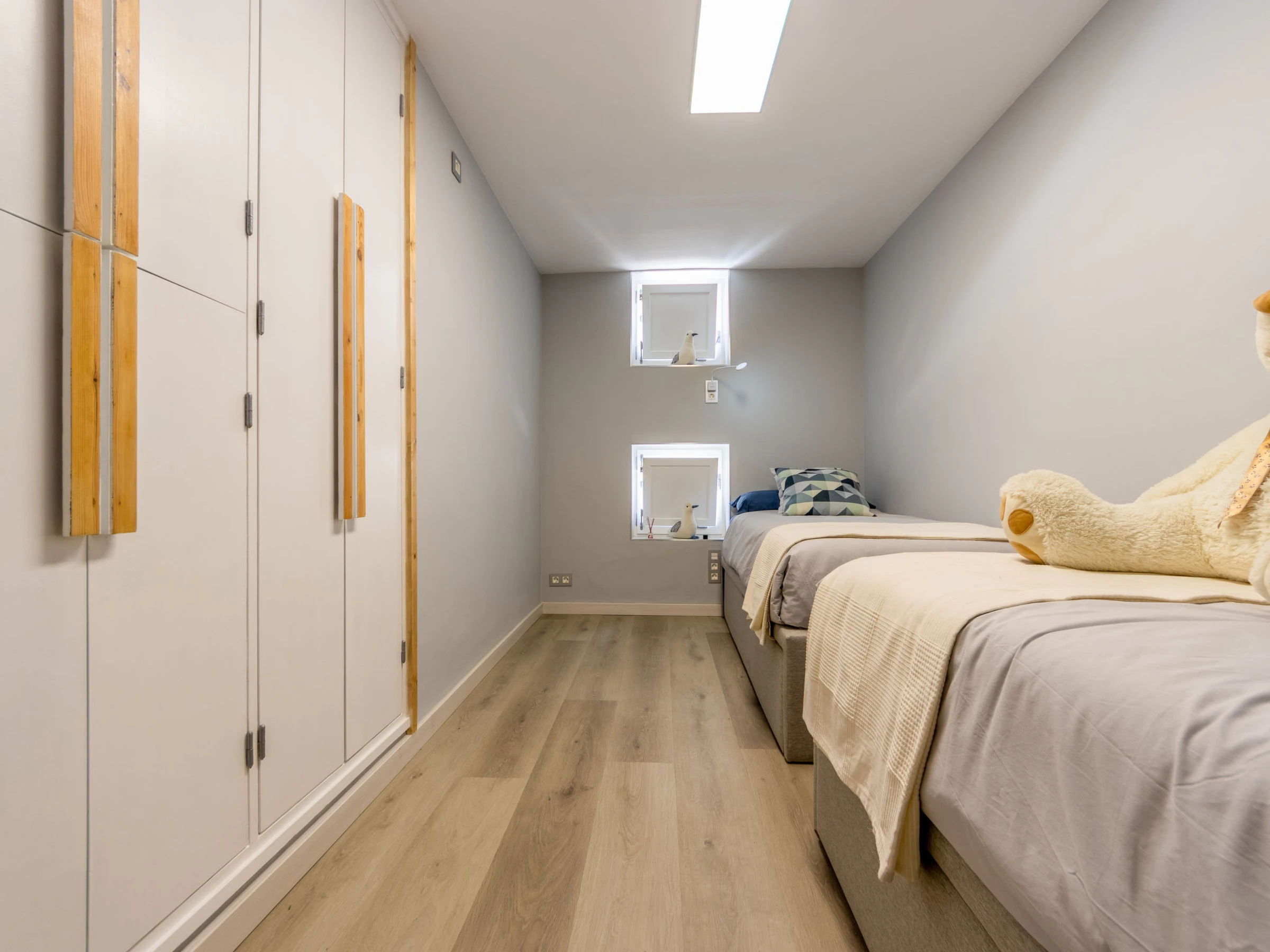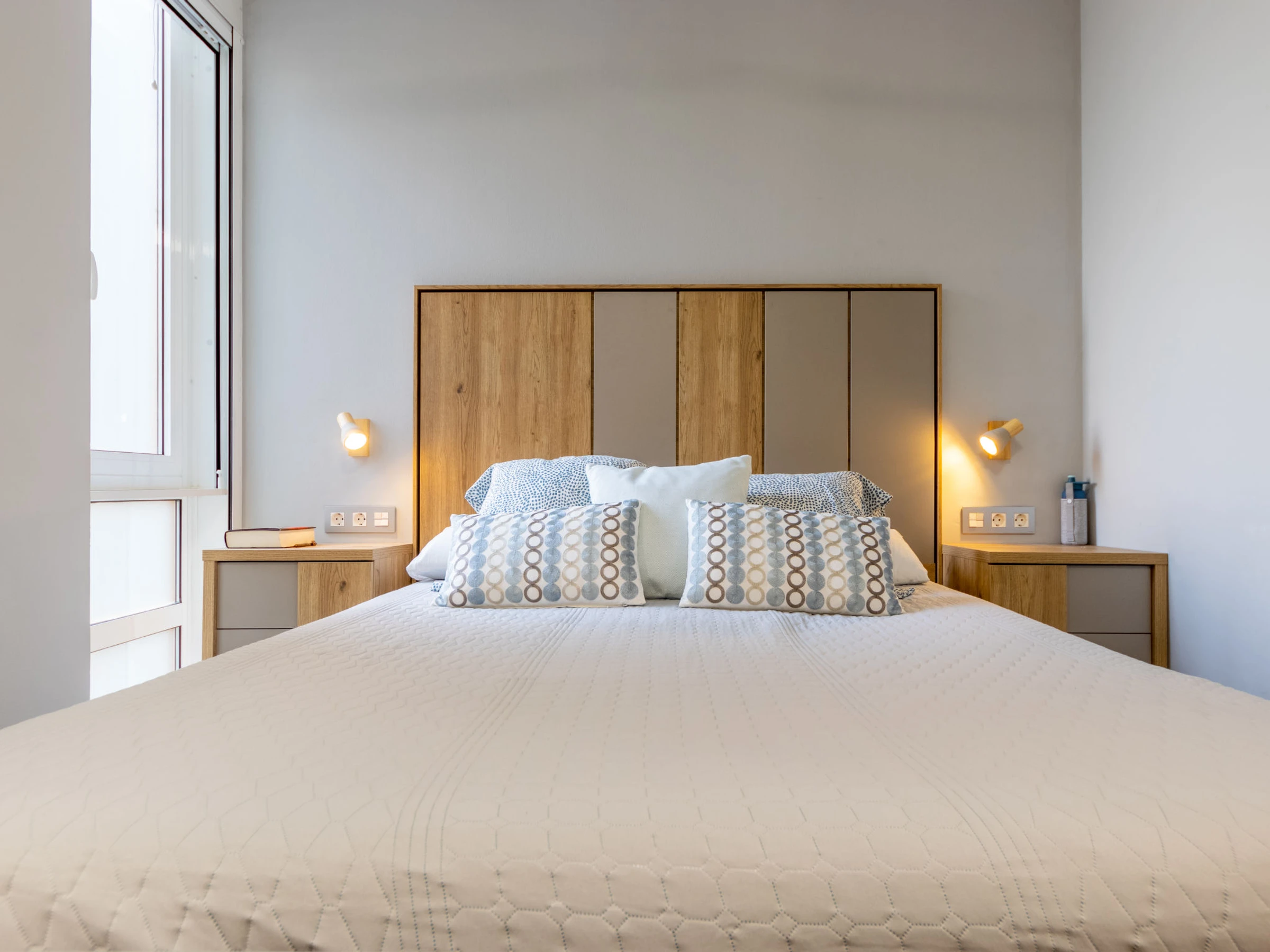 "Ancla Roja", 3-room apartment 119 m2 on 1st floor. Modern and cosy furnishings: living/dining room with sliding door with digital TV and air conditioning. Exit to the terrace, to the loggia. 1 room with 1 french bed (150 cm, length 190 cm), bath/shower and fan. 1 room with 2 beds (90 cm, length 190 cm), fan. 1 room with 2 pull-out beds (4 pers. 2 x 90 cm, length 190 cm). Kitchen (oven, dishwasher, 4 ceramic glass hob hotplates, toaster, kettle, microwave, electric coffee machine, Capsules for coffee machine (Delonghi Nespresso)). Shower/WC. Heating not available in all rooms. Terrace. Terrace furniture, balcony furniture. Very beautiful view of the sea. Facilities: washing machine, iron, hair dryer. Internet (WiFi, free). Suitable for families. [hidden] // Reg. Nr.: ESFCTU00004302400017963900000000000000[hidden]-794