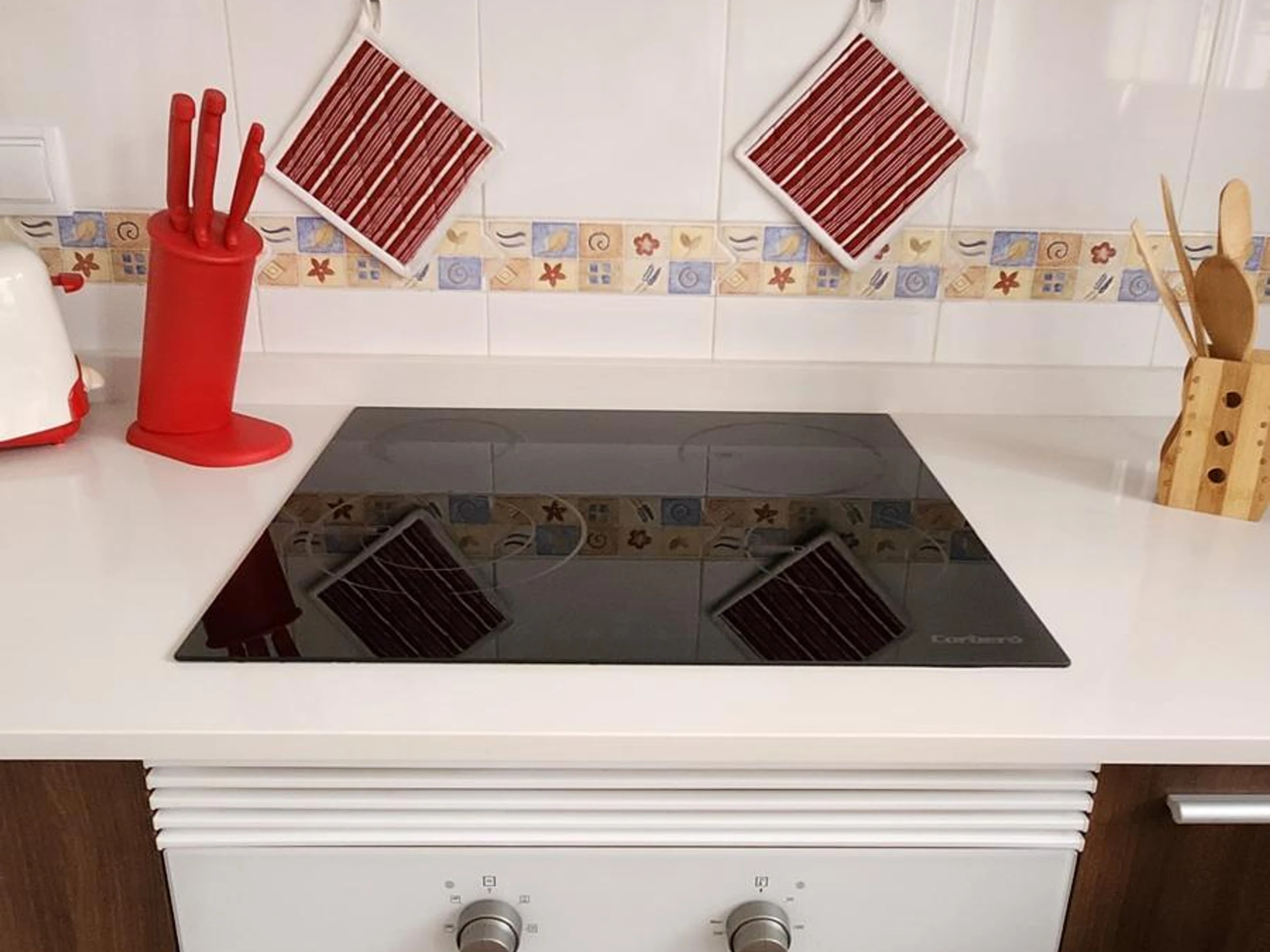 * kitchen with electric hob, electric oven, microwave, dishwasher,