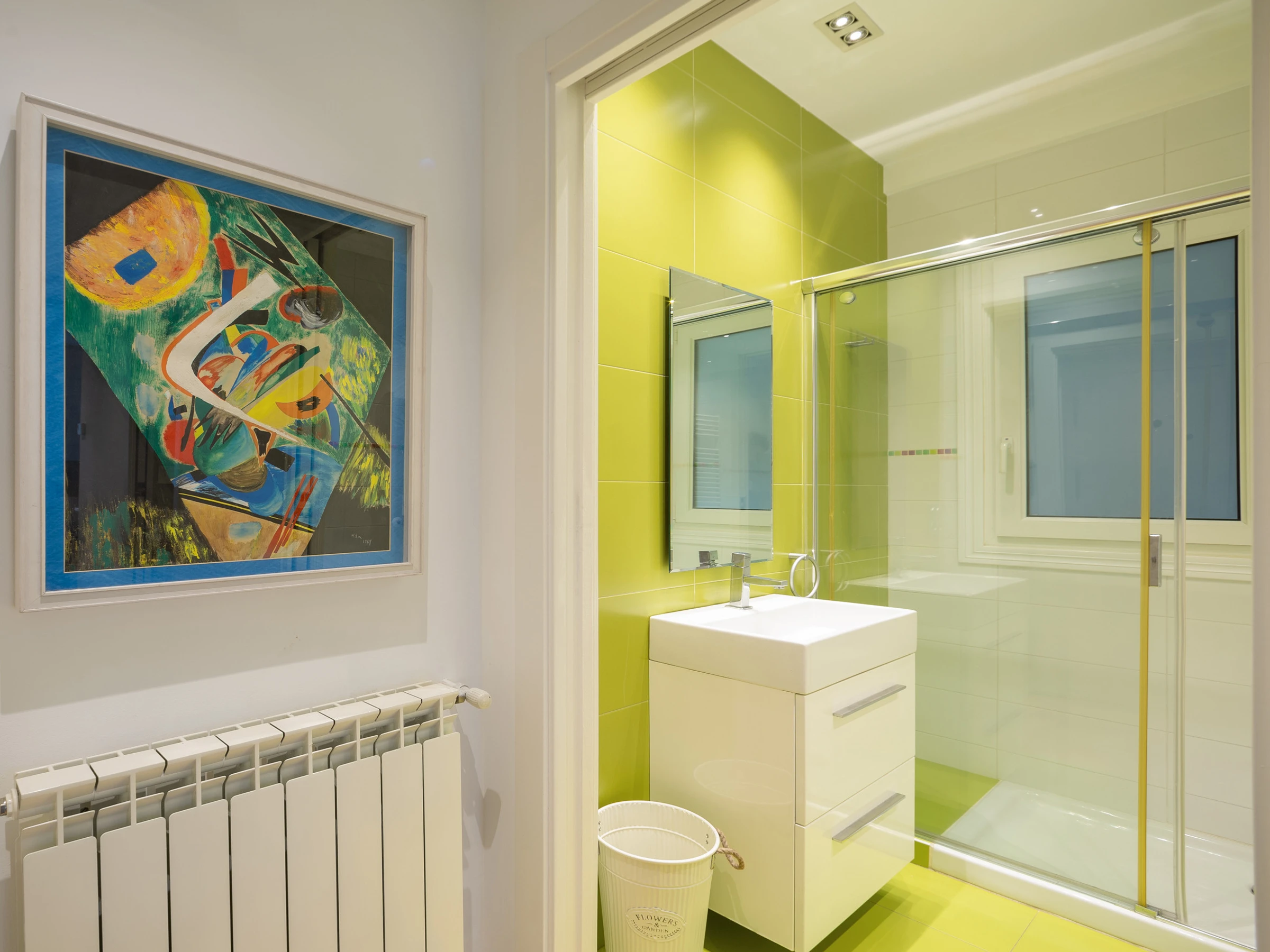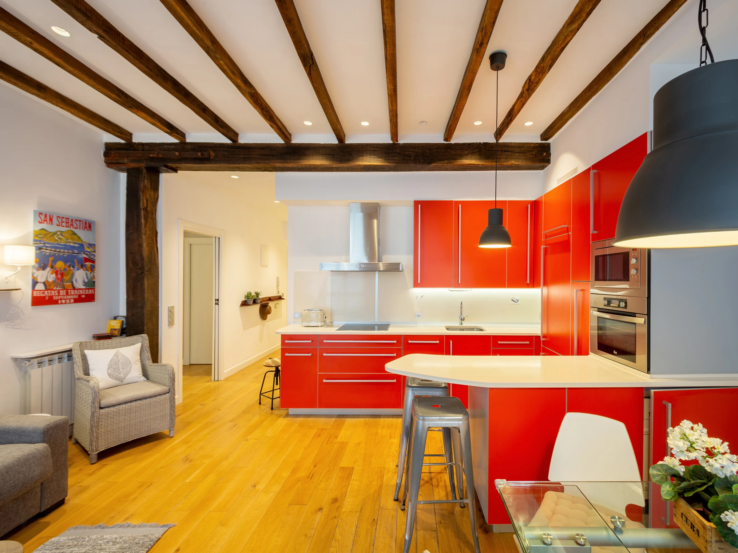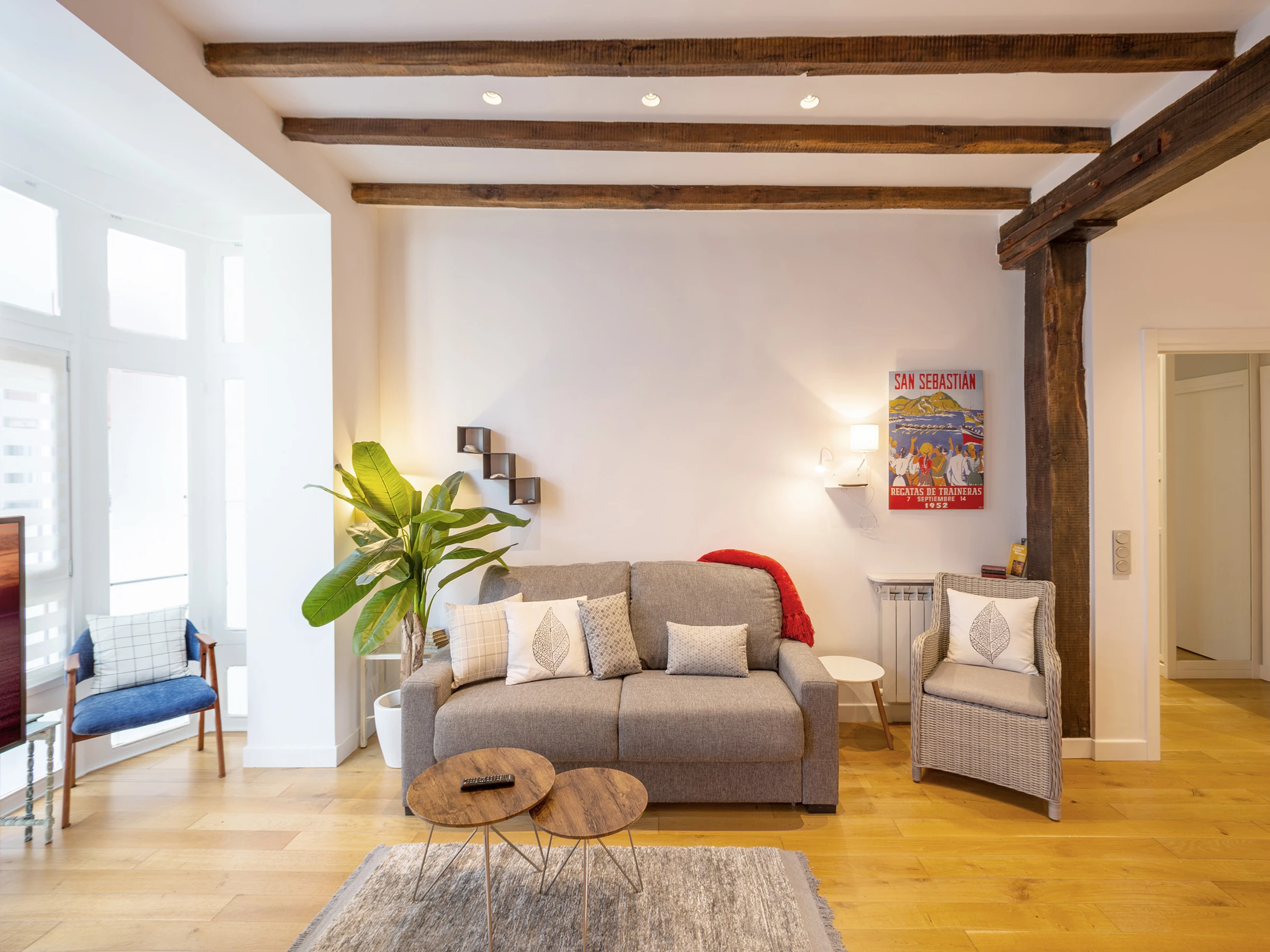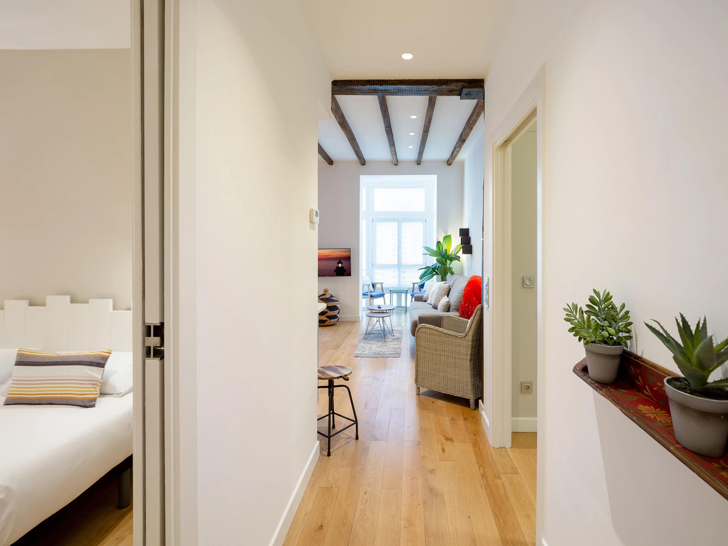 KRESALA is a fully renovated apartment that stands out for its carefully curated decoration and fantastic location. It has two bedrooms. The first has a double bed of 150 cms wide and a private bathroom with shower. The second bedroom has 2 single beds of 90 cms wide and there is a second full bathroom in the hallway. Both rooms include the necessary duvets, sheets and towels. The kitchen is fully equipped with all kinds of appliances: ceramic hob, extractor hood, oven, microwave, washing machine, dishwasher, refrigerator, coffee maker and electric kettle.
