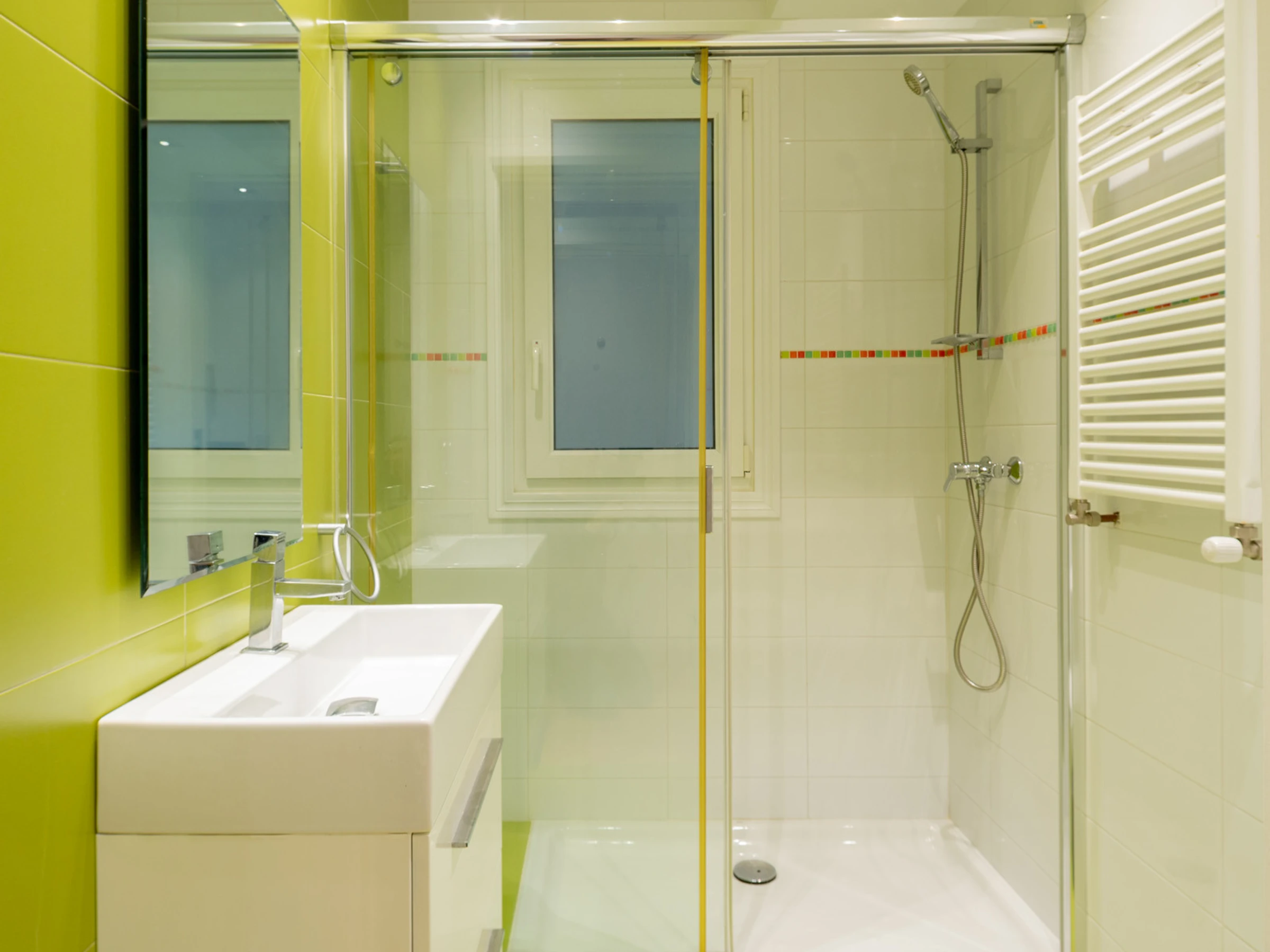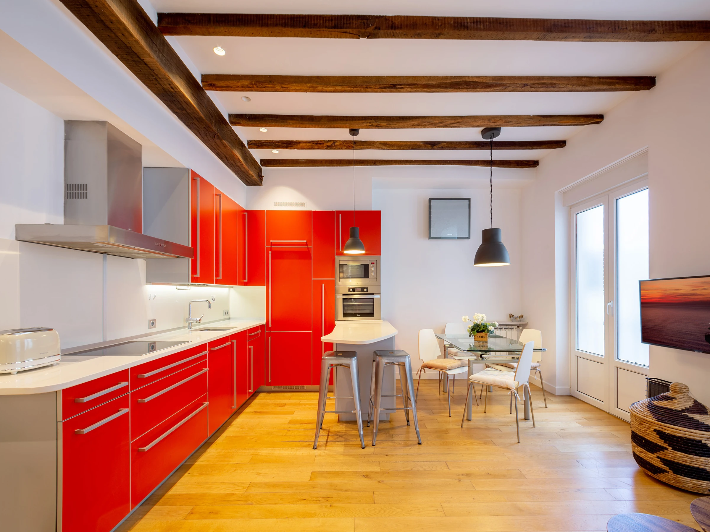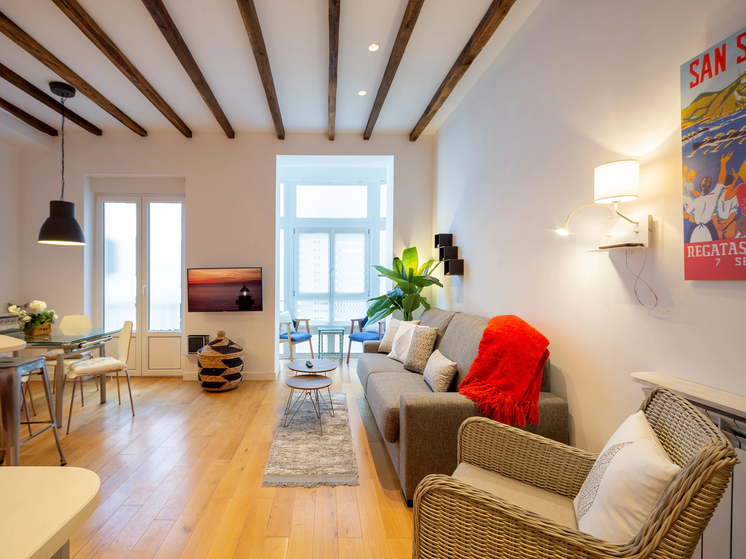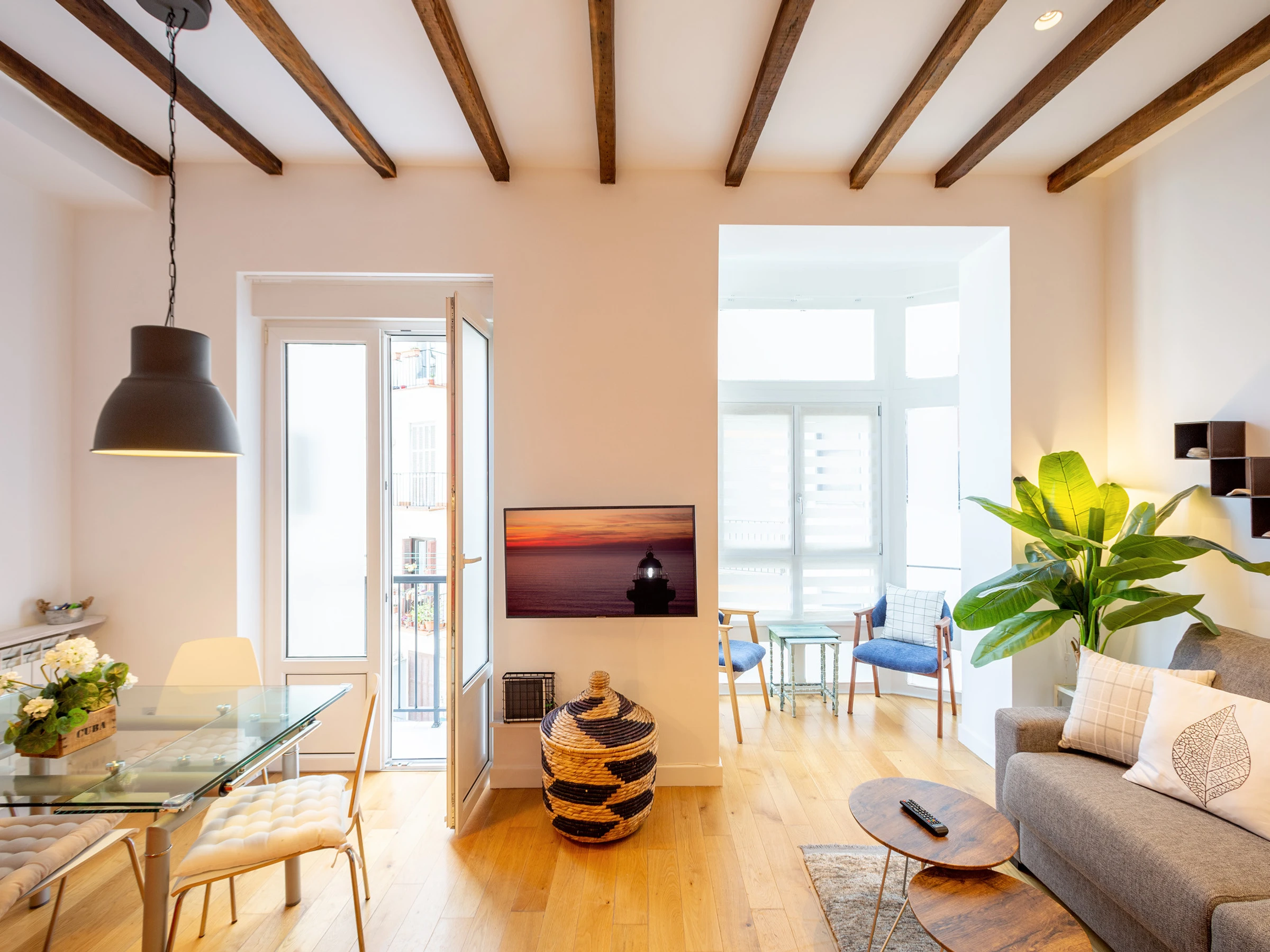 KRESALA is a fully renovated apartment that stands out for its carefully curated decoration and fantastic location. It has two bedrooms. The first has a double bed of 150 cms wide and a private bathroom with shower. The second bedroom has 2 single beds of 90 cms wide and there is a second full bathroom in the hallway. Both rooms include the necessary duvets, sheets and towels. The kitchen is fully equipped with all kinds of appliances: ceramic hob, extractor hood, oven, microwave, washing machine, dishwasher, refrigerator, coffee maker and electric kettle.