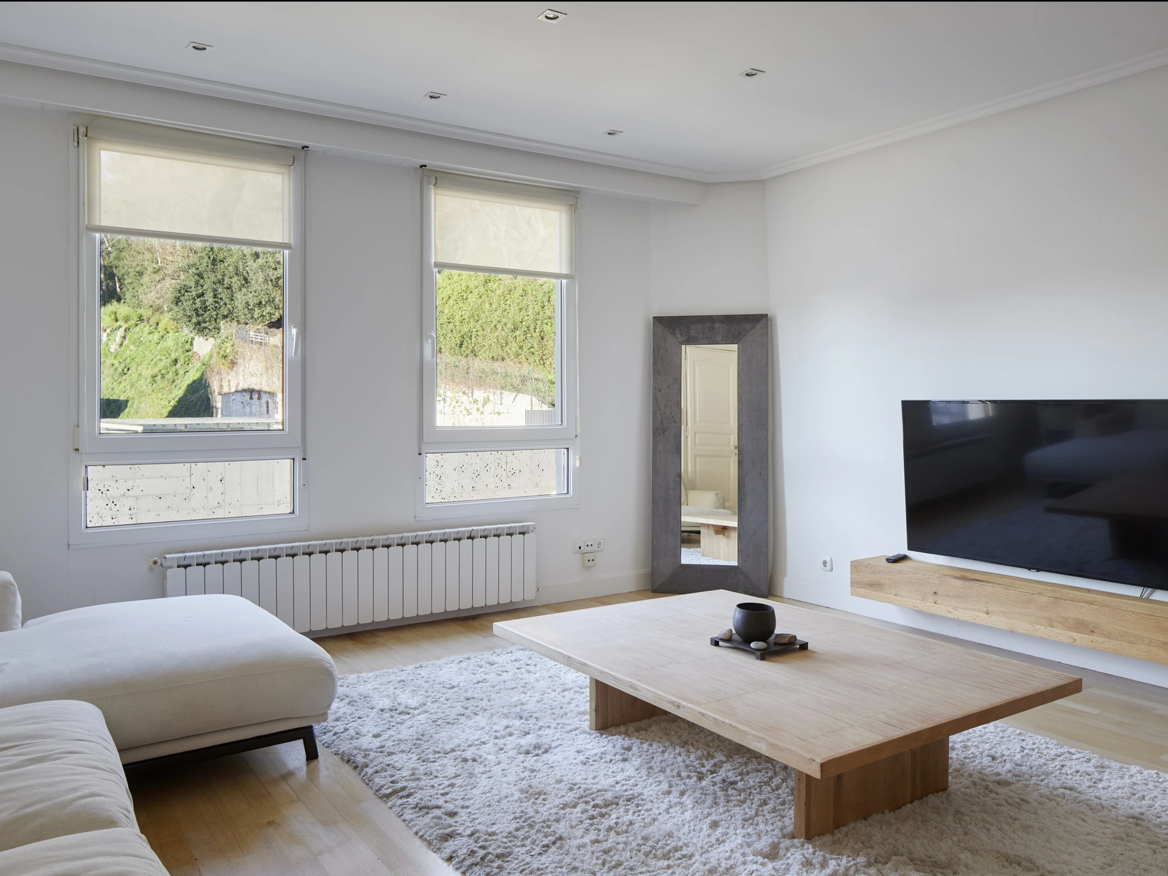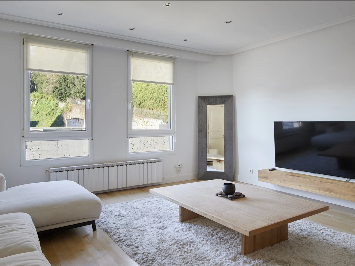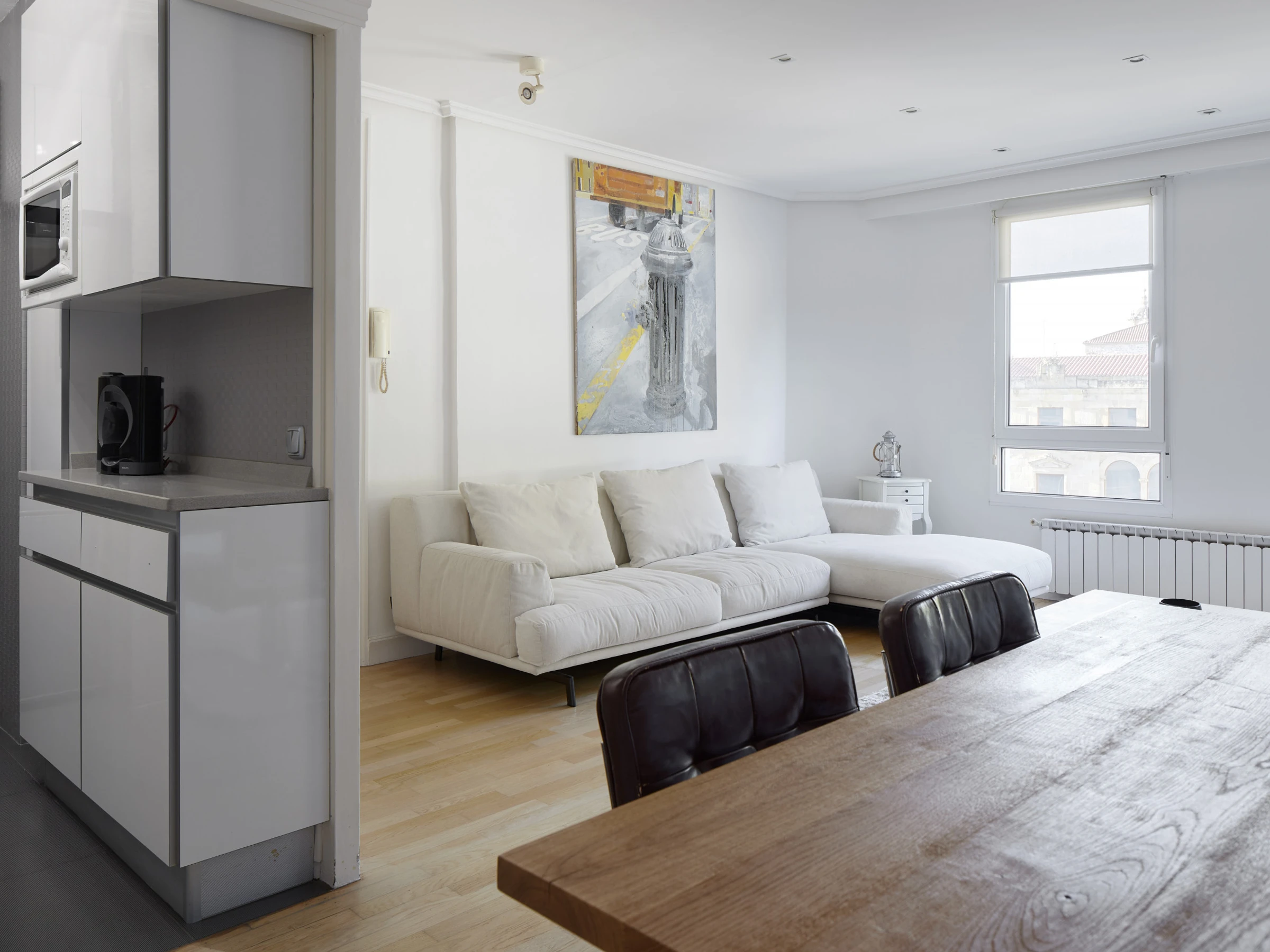 Excellent apartment located just a few metres from the Old Town of San Sebastian. It has 2 bedrooms, both with a double bed of 150 cms width, 1 bathroom with a shower tray, fully equipped kitchen and a spacious living room with views of Zuloaga Square.