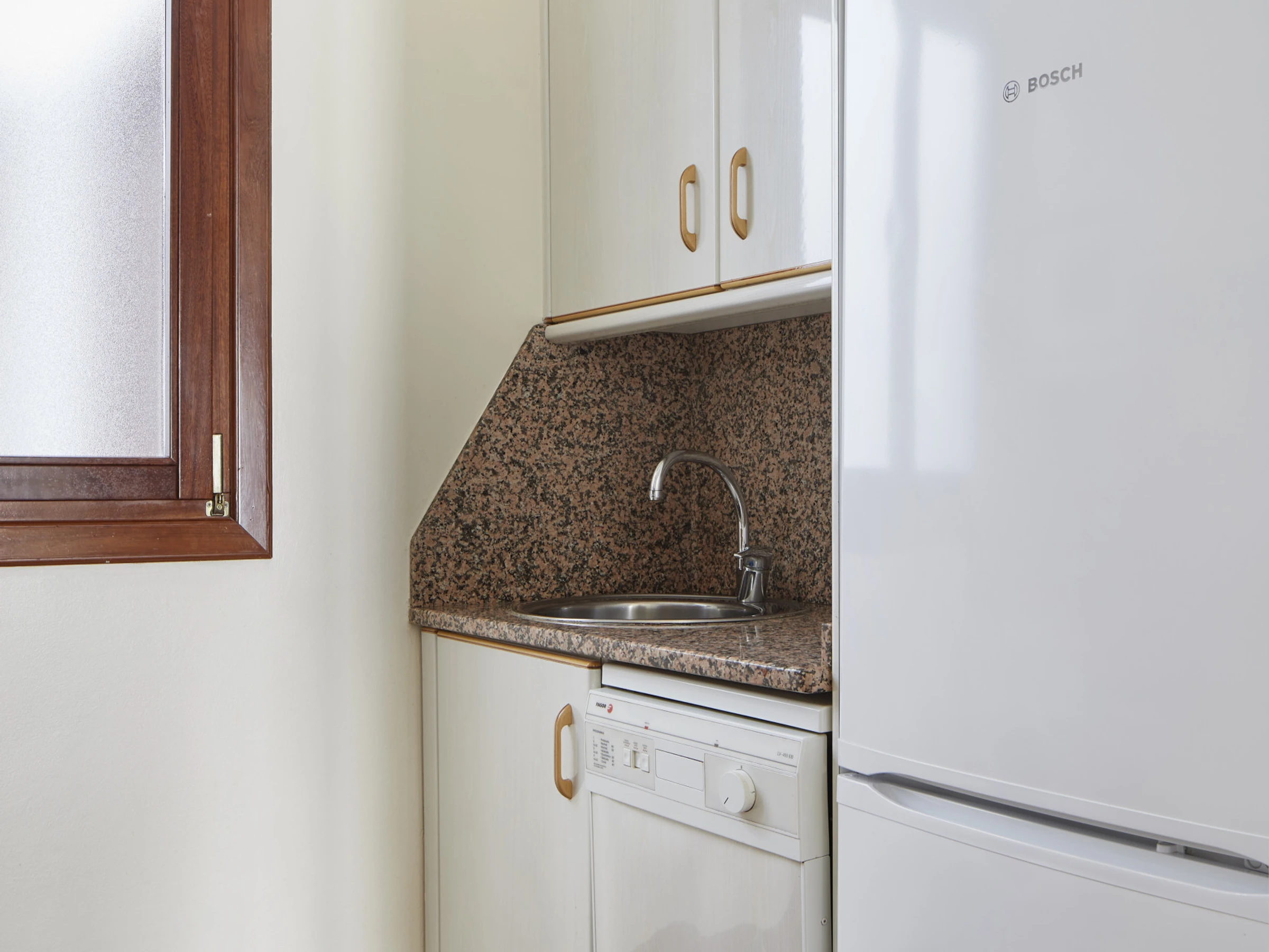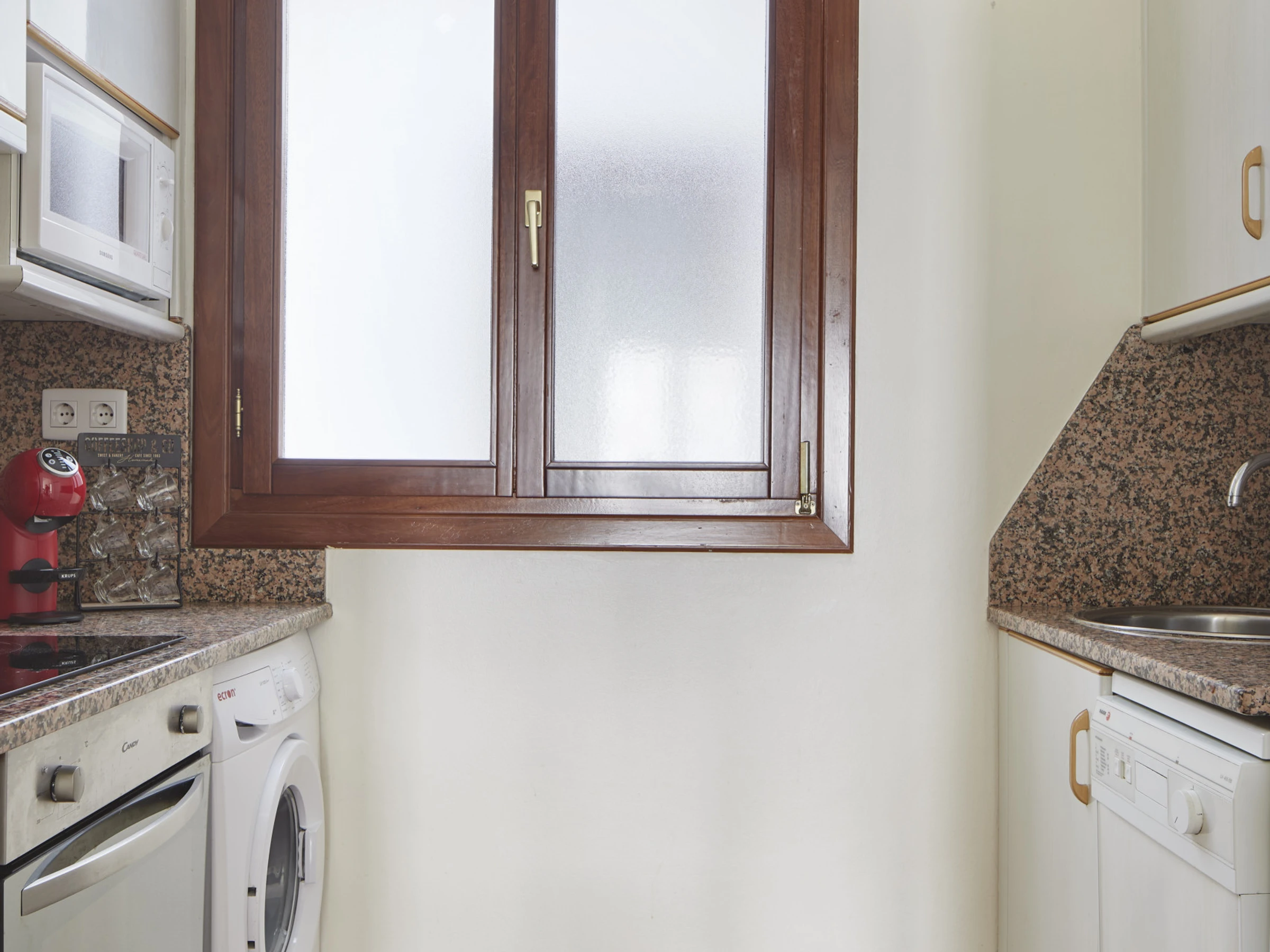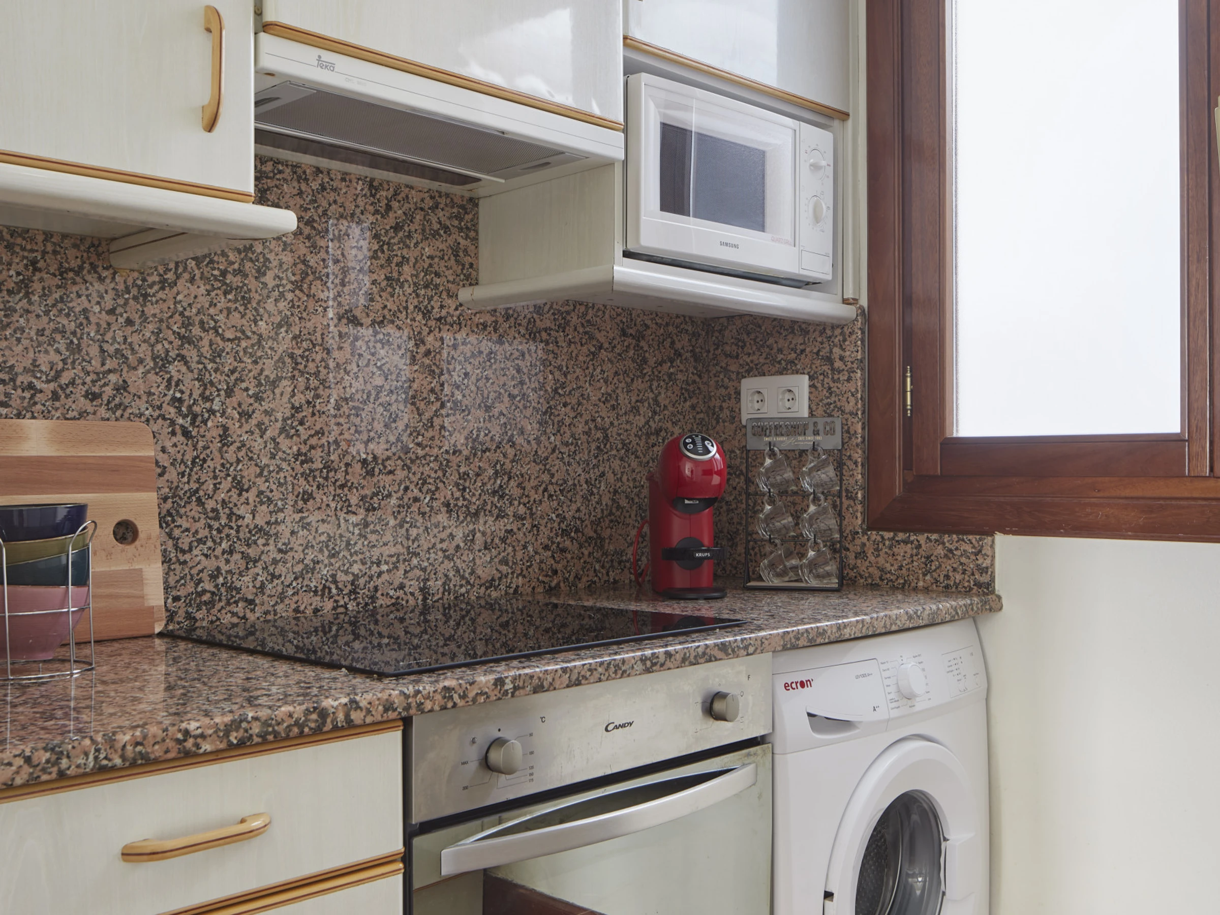 The kitchen is equipped with all necessary appliances: dishwasher, washing machine, oven, microwave, ceramic hob, as well as all kitchen equipment: pots, pans, cutlery, crockery, coffee maker, etc.