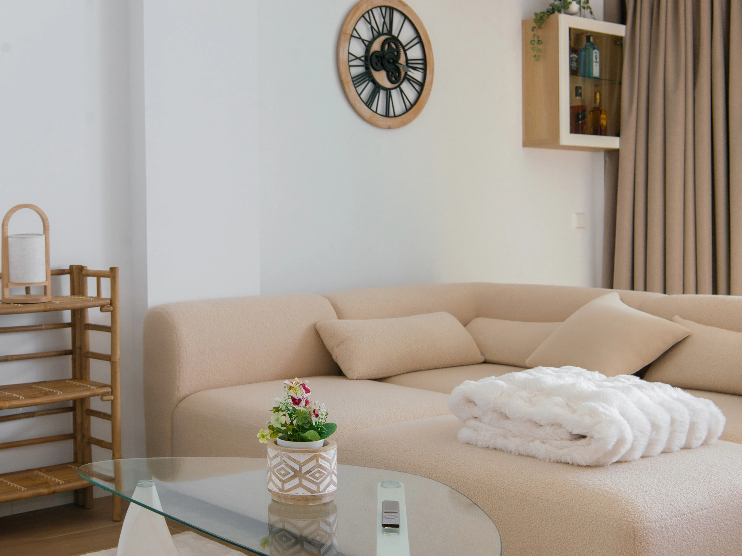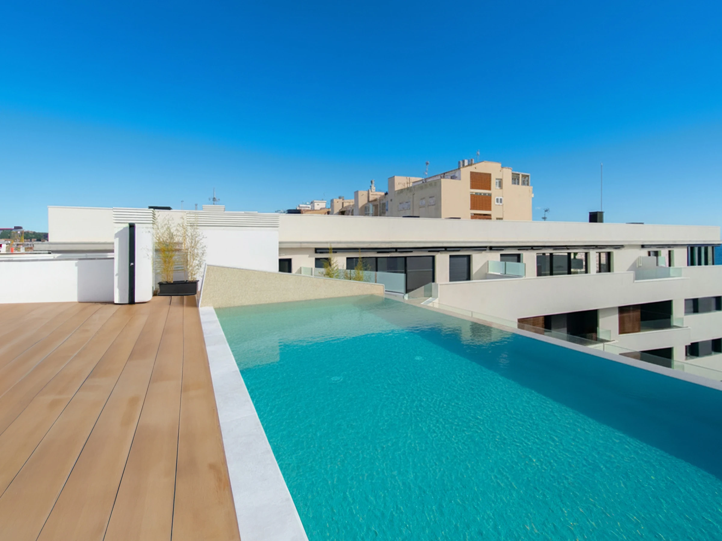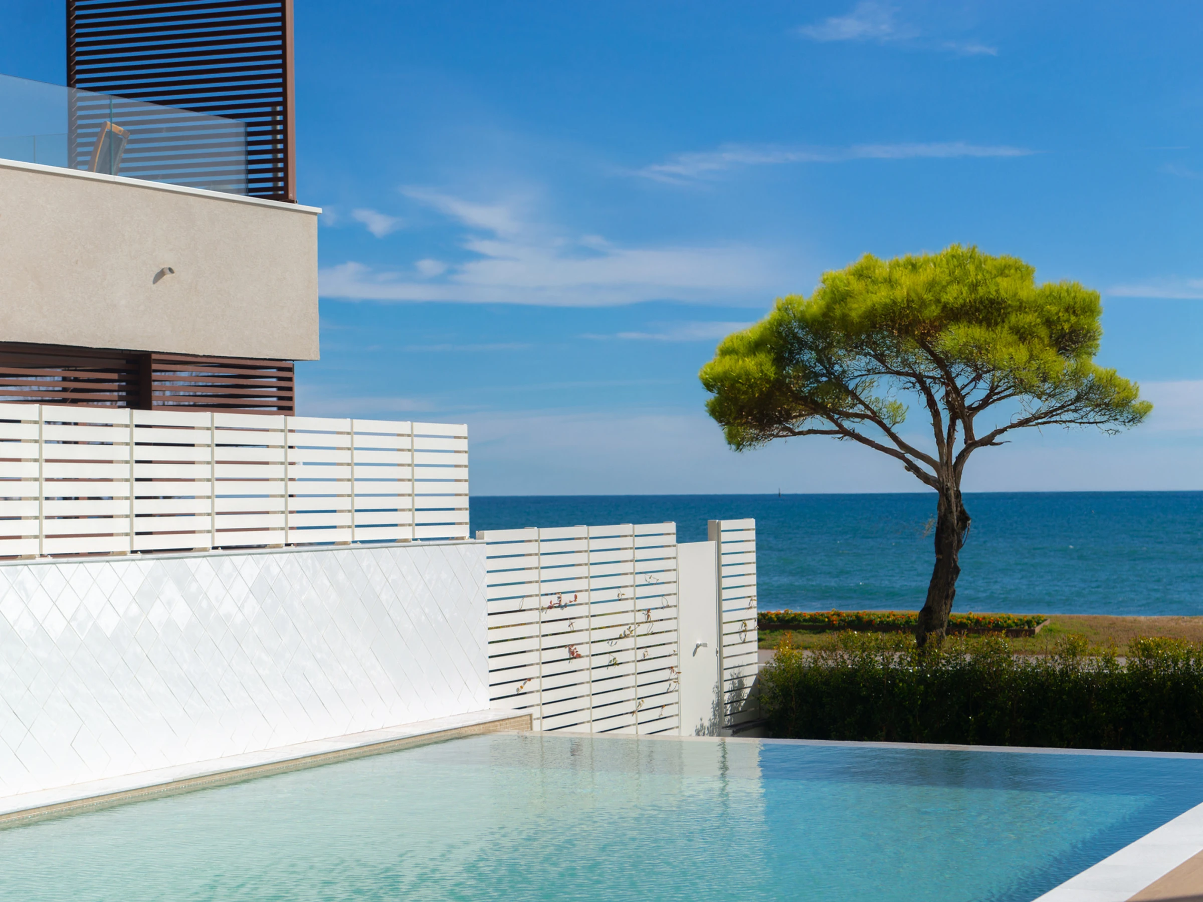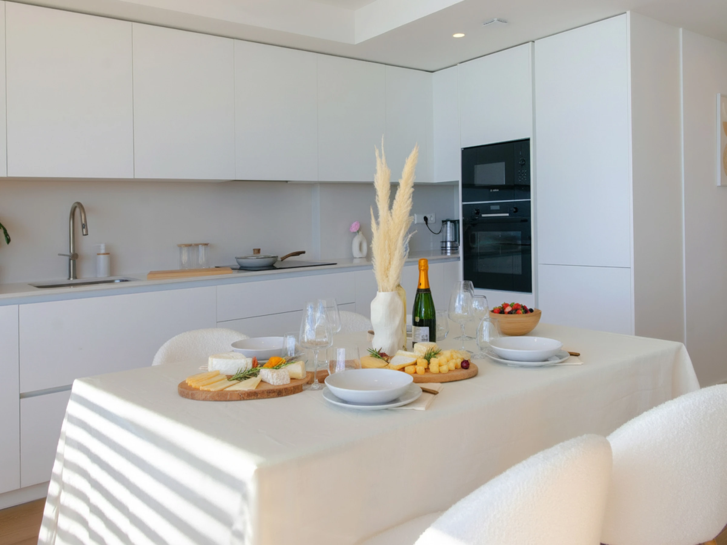 The property features a comfortable living room, a fully equipped American kitchen for daily use, and an environment designed for relaxation after a day at the beach. Additionally, the building offers two communal swimming pools, a coworking space, and a gym, an ideal combination to alternate sunny days with moments of relaxation and activity.