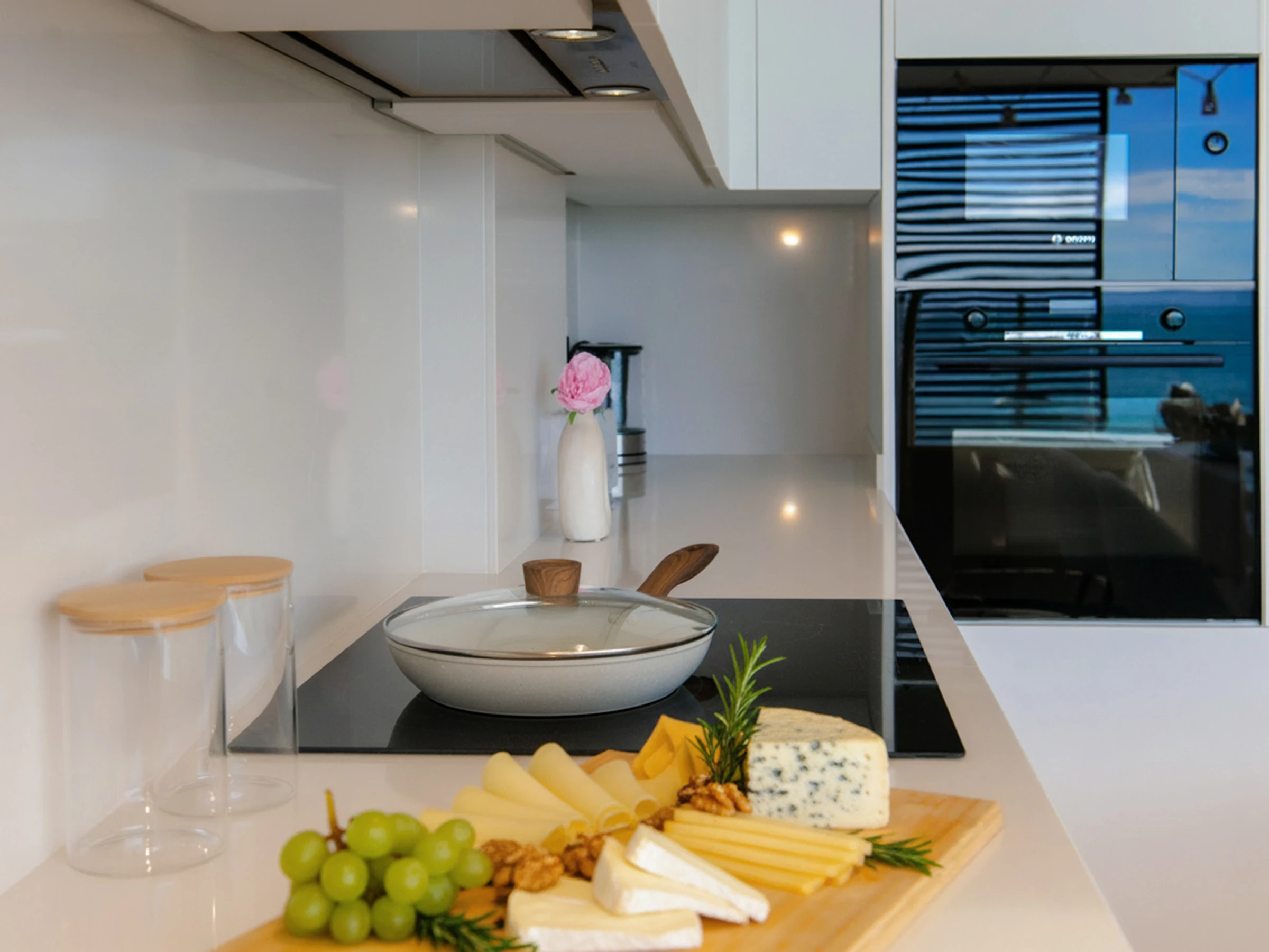 The great strength of the accommodation is its 12 m² balcony/terrace with open views of the sea, perfect for having breakfast with the sea breeze, reading at sunset or simply enjoying the sound of the waves during the stay.