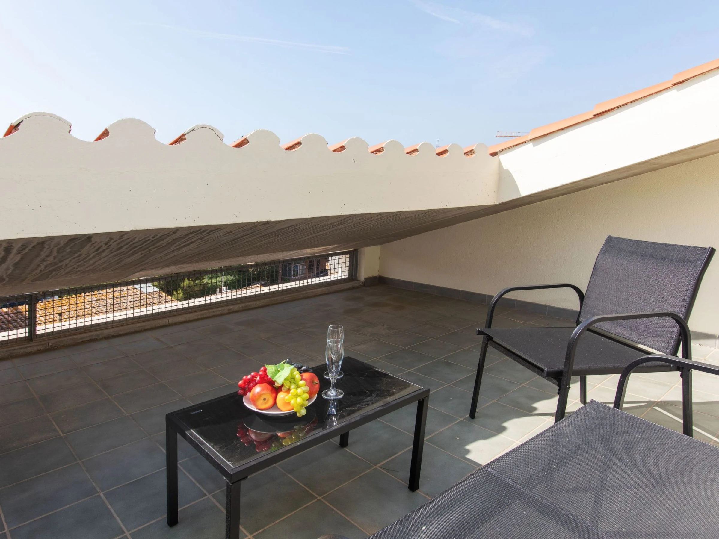 "Montse", 3-room apartment 75 m2 on 2 levels on 4th floor. Practical furnishings: living/dining room with digital TV. Exit to the balcony. 1 room with 1 french bed (135 cm, length 190 cm). Open kitchen (2 hot plates, oven, toaster, kettle, microwave, electric coffee machine). Shower/WC. Air-conditioning. No heating option. Upper floor: (spiral staircase), 1 room with 1 french bed (135 cm, length 190 cm). Shower/WC. Air-conditioning. Small balcony 2 m2. Facilities: washing machine, iron, children's high chair, baby cot, hair dryer. Internet (WiFi, free). Please note: TV only ES. [hidden] // Reg. Nr.: ESFCTU00001701500047839100000000000000000[hidden]9