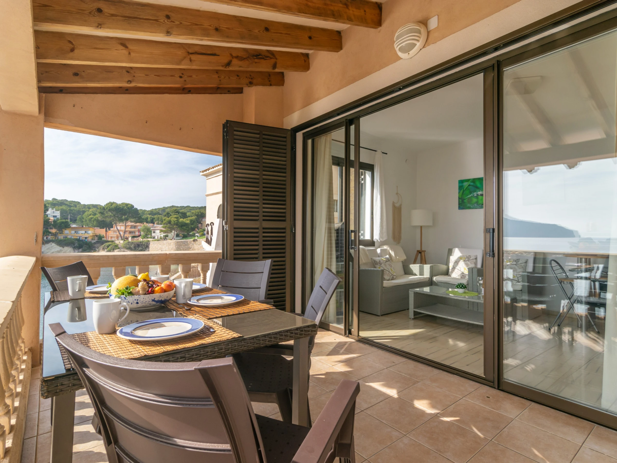 Both apartments offer furnished terraces with a stunning view of the Mediterranean Sea, where you can enjoy your summer meals outdoors. Just keep in mind that part of the terrace on the ground floor constitutes a coastal crossing area, so some people can pass by sporadically.