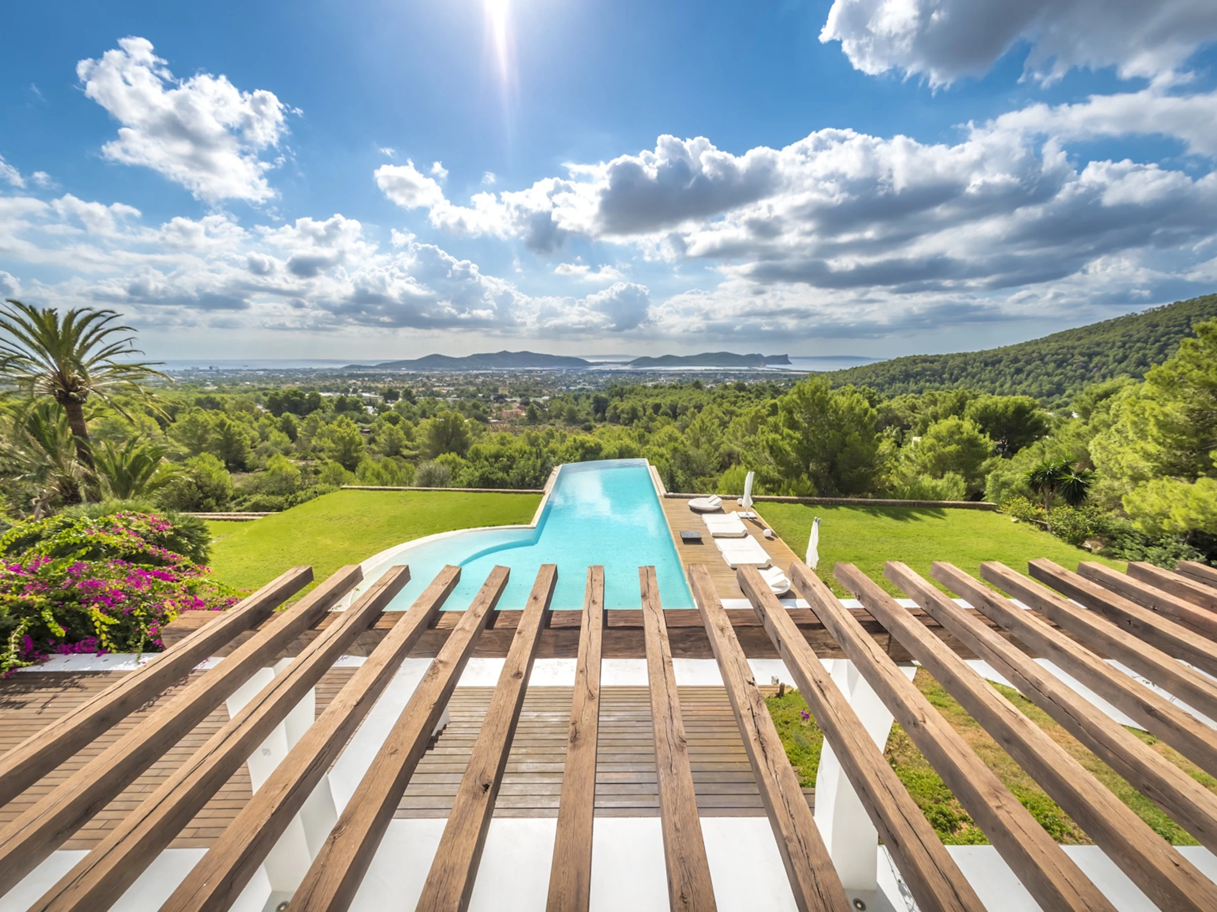 The pool has a gently shelving area, ideal for little ones or simply for sitting and relaxing, as well as a deeper section. Here, you can swim its length as you revel in the view to Las Salinas and Formentera, the sea twinkling just as invitingly in the distance.