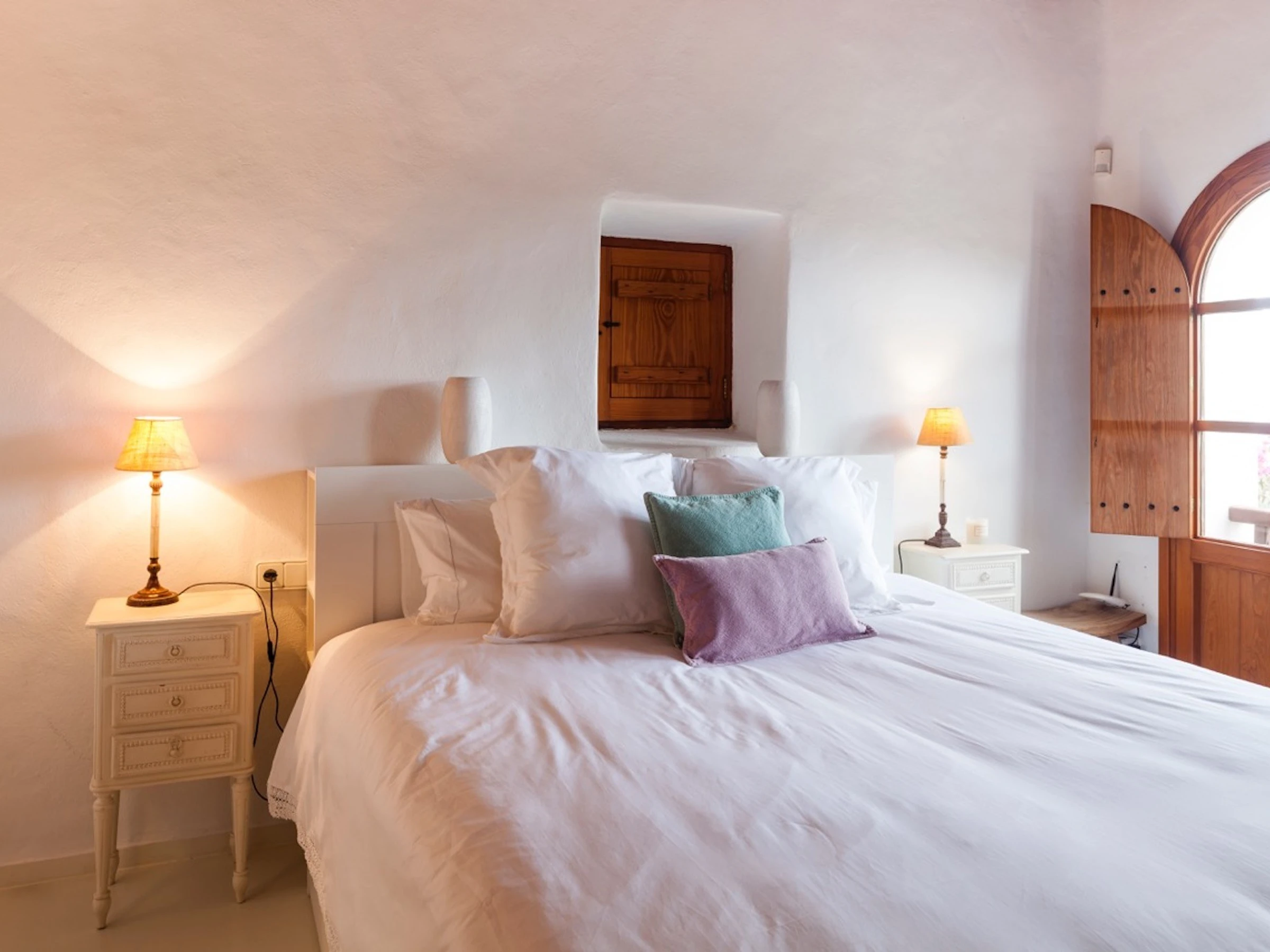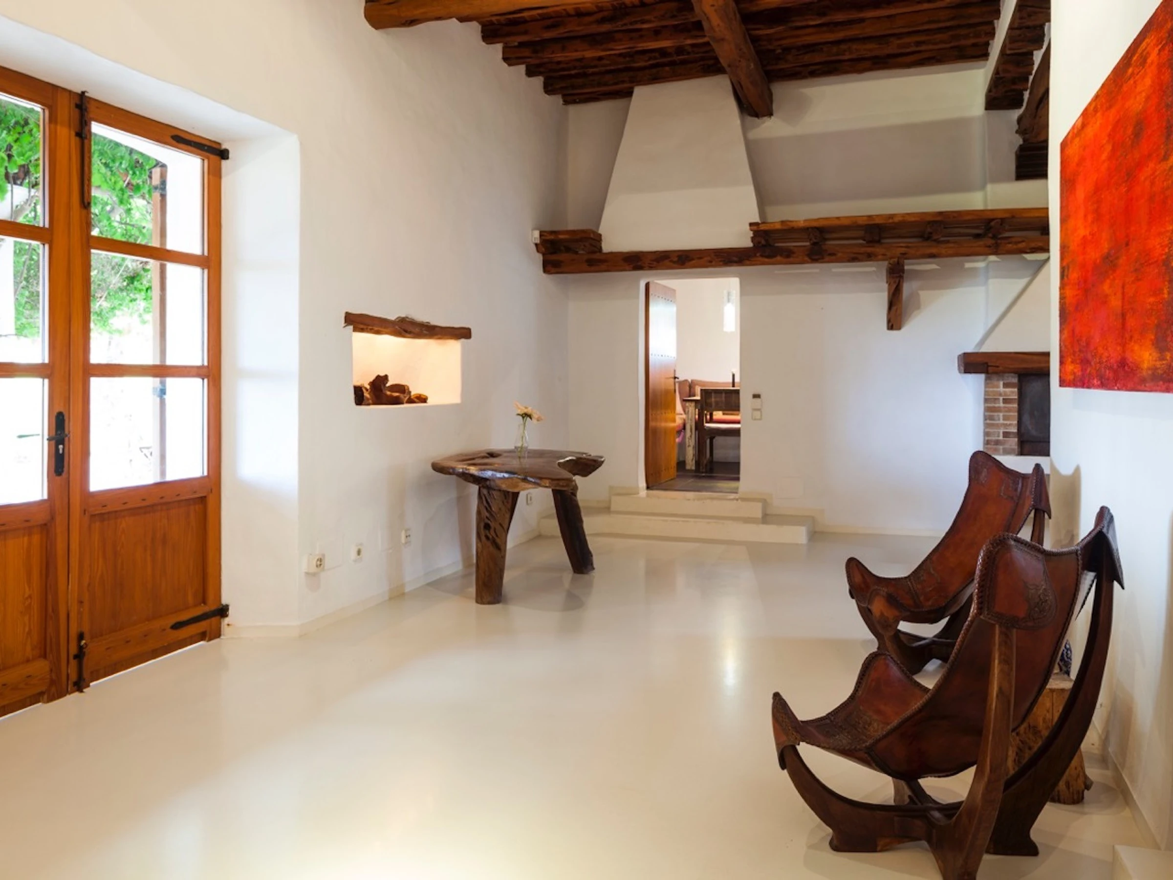 Inside, Estrella Azul is an equally happy blend of traditional, 200-year-old Payesa and sympathetic modern refurbishment. The cosy lounge, with winter fireplace, and the smart, well-equipped kitchen enjoy a tasteful blend of traditional Ibizan farmhouse and modern Ibizan chic.