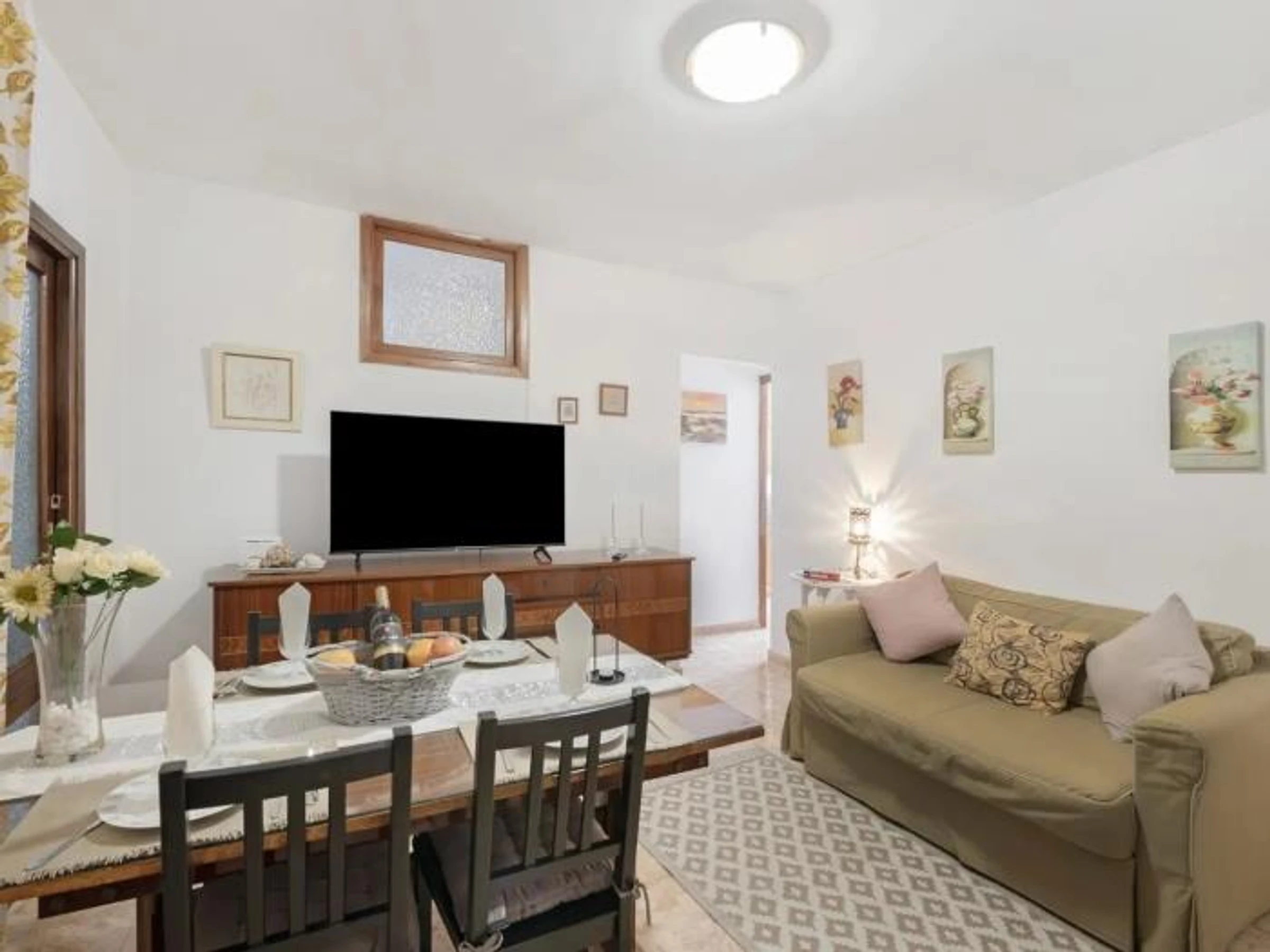 The flat has a balcony with city views, a living room with a flat-screen TV, and a kitchen equipped with a fridge and oven. There is 1 bathroom with a bidet; towels and bed linen are provided. Free Wi-Fi is available throughout the property.