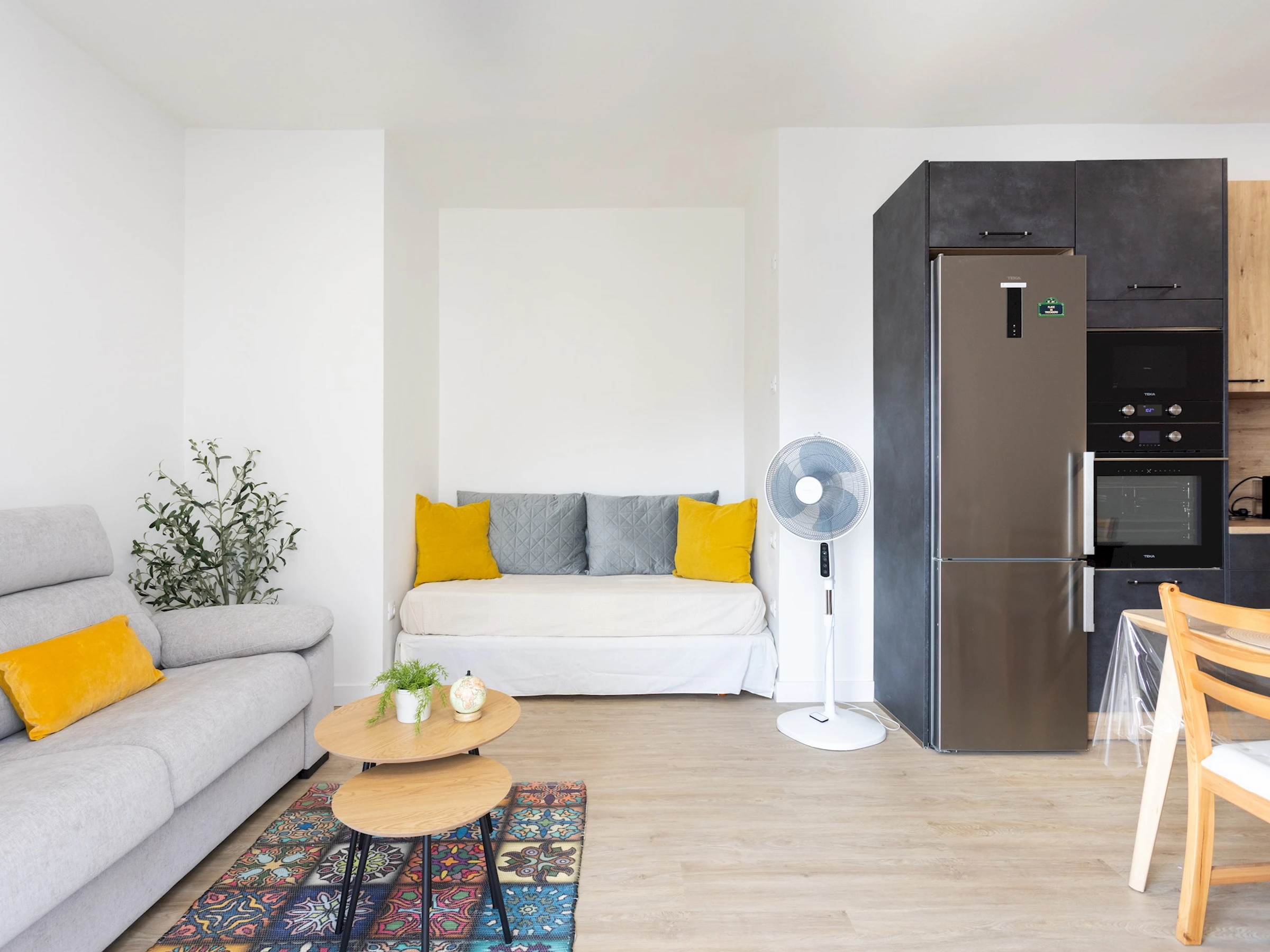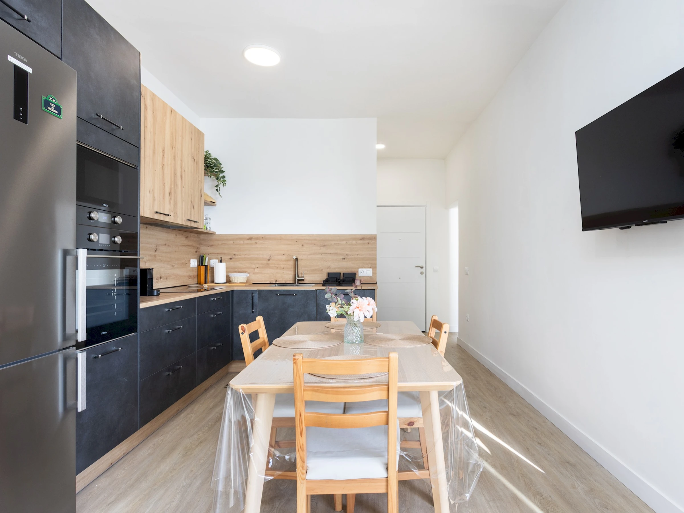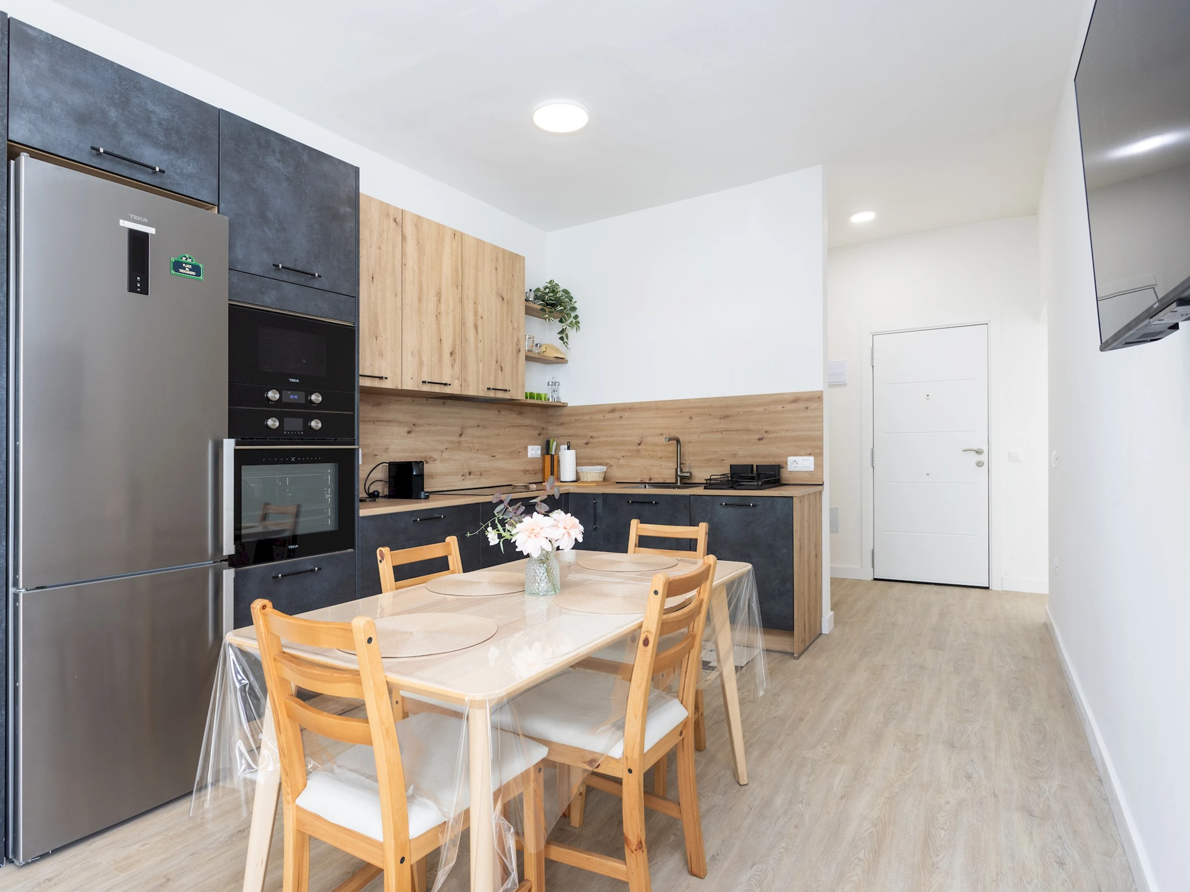 The home has a functional and cozy layout. Upon entering, you will find a spacious open-concept living room/kitchen, equipped with a comfortable sofa and Smart TV, ideal for relaxing after a day at the beach or exploring the area. The 1G/s fiber optic connection ensures a smooth experience for both digital entertainment and remote working.