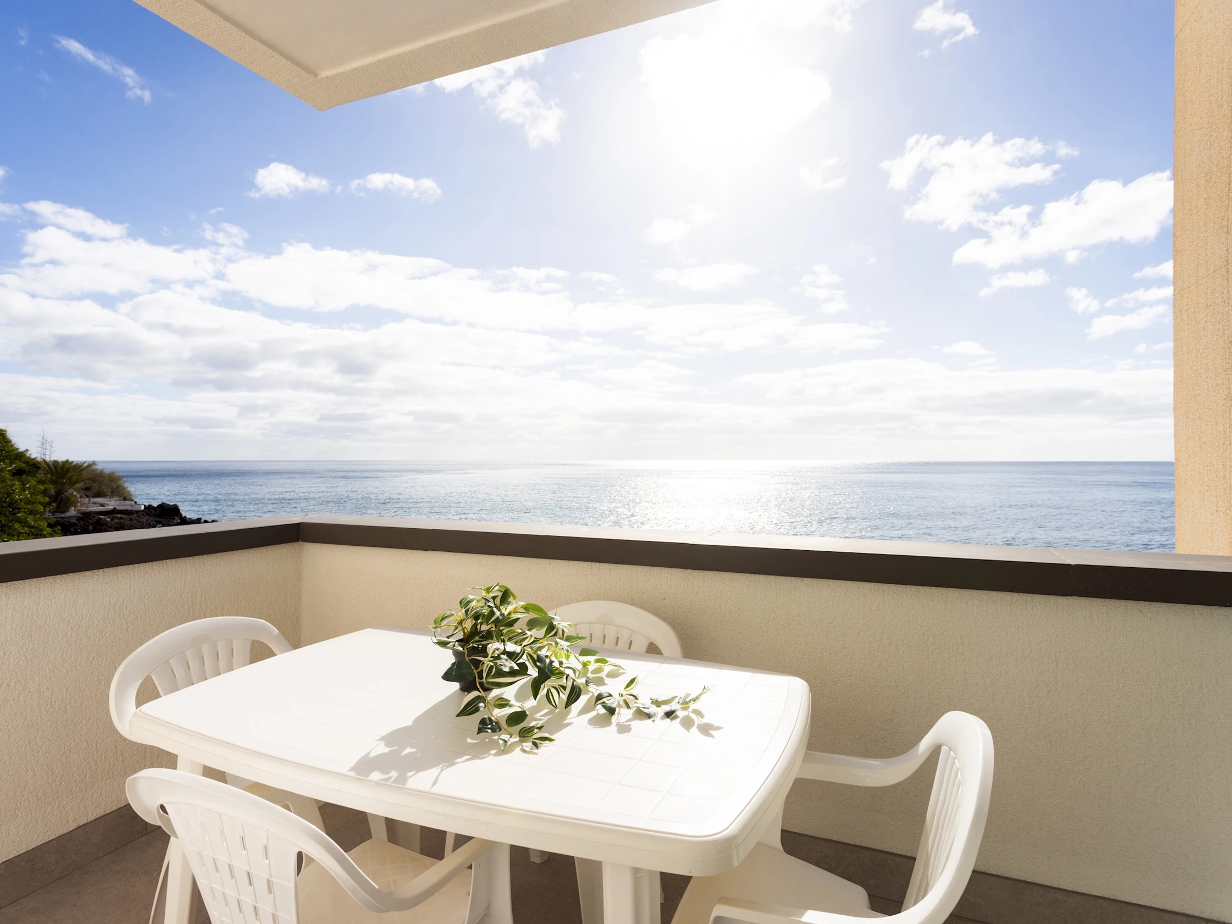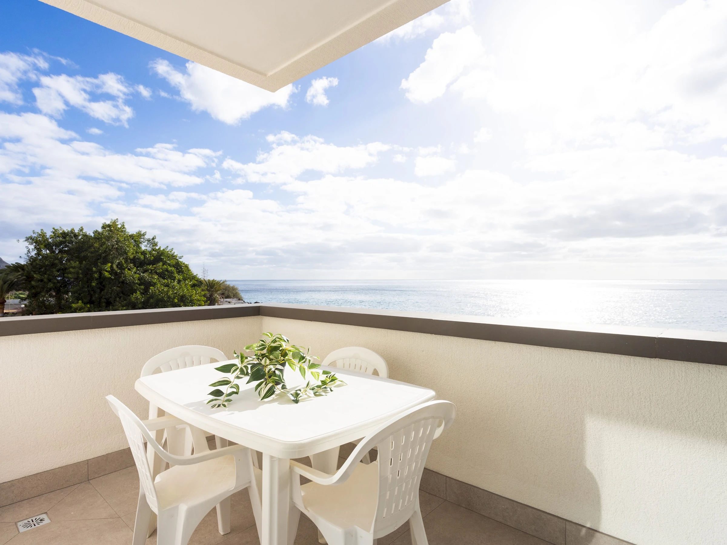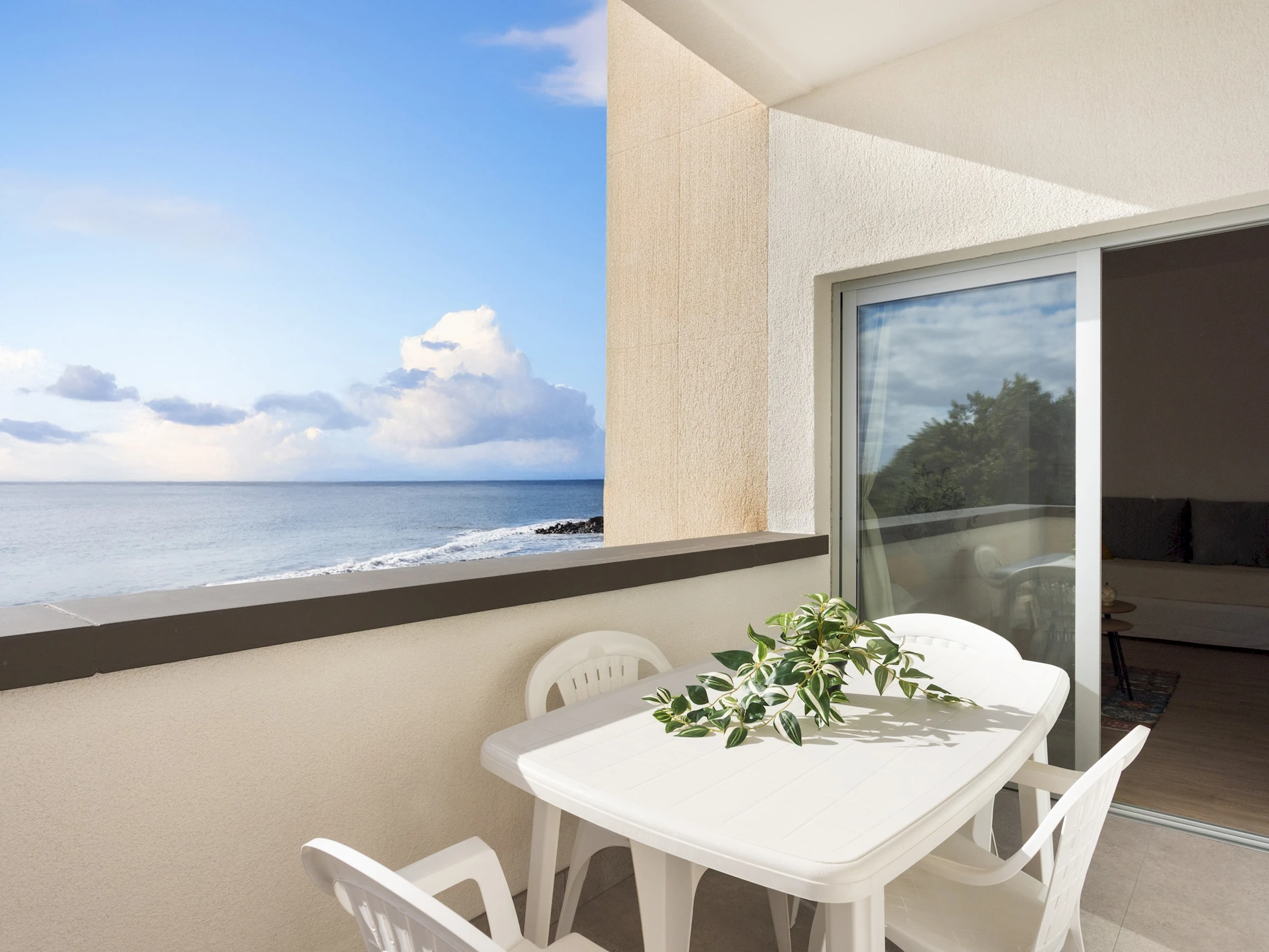 Outside, the property offers a pleasant furnished private terrace, perfect for outdoor breakfasts, reading, or simply enjoying the sea views and proximity to the beach, creating a relaxed and welcoming atmosphere.