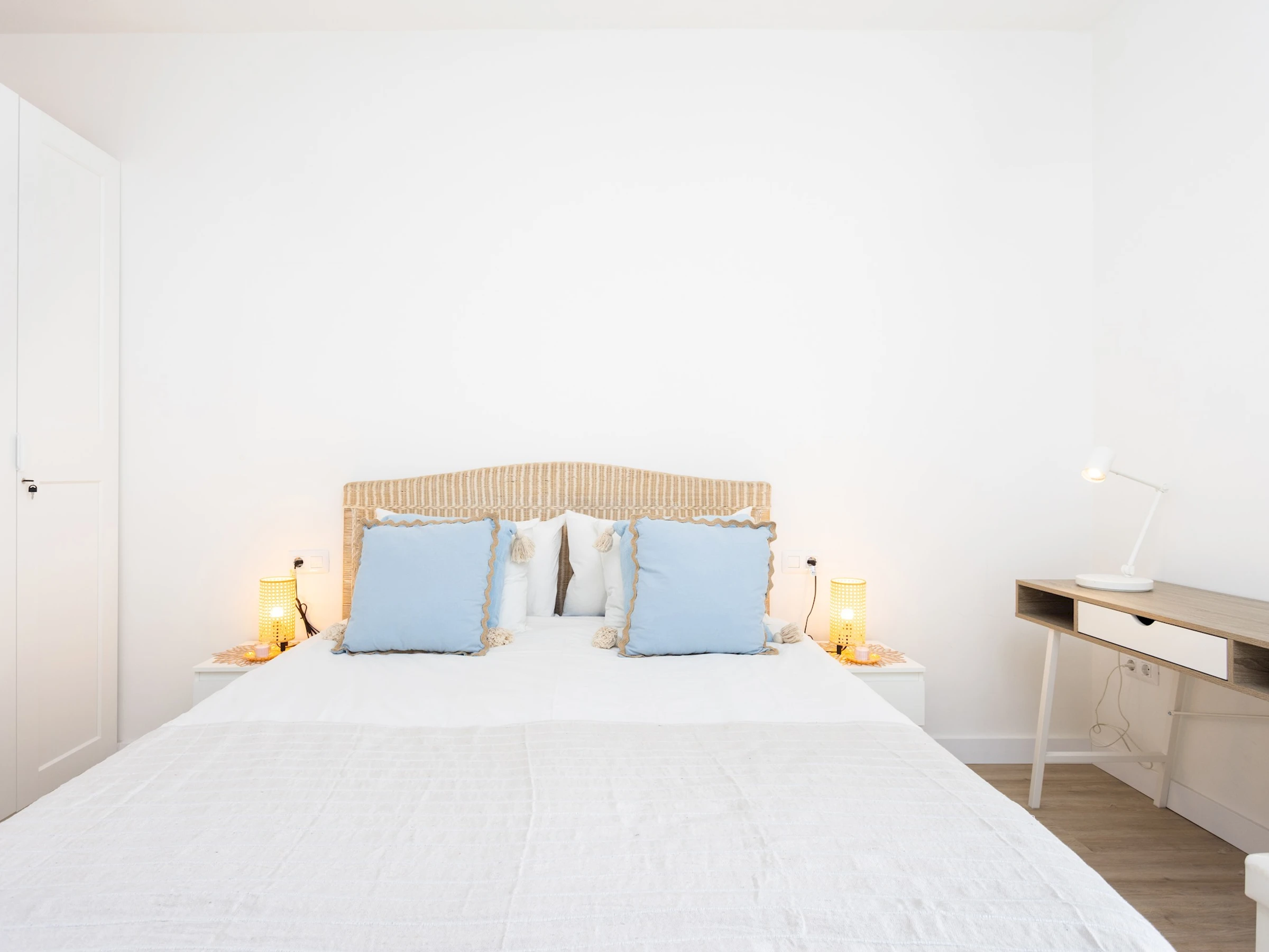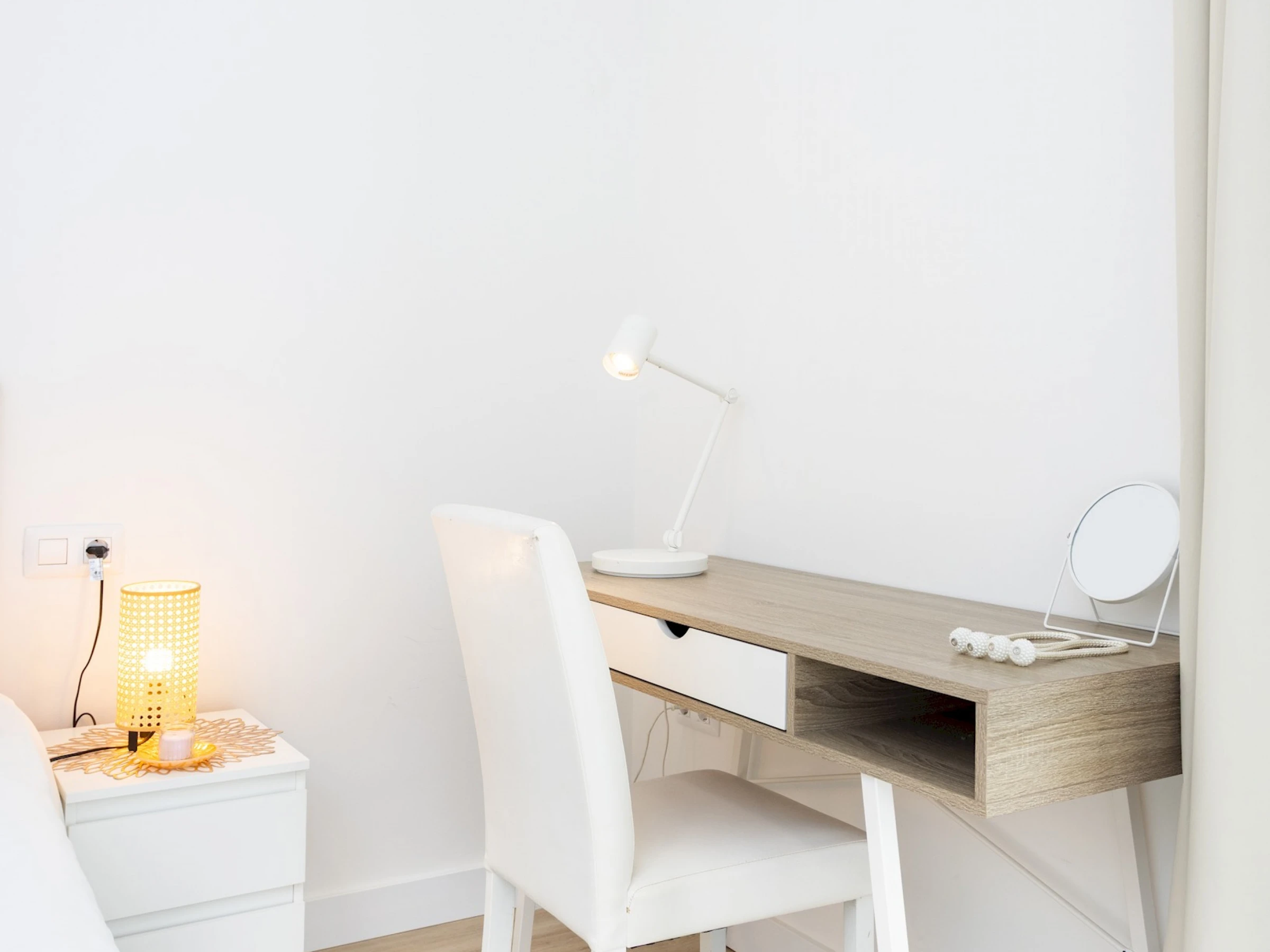 The bedroom has a queen-size bed that ensures a comfortable night's sleep, as well as a practical study table, designed for those who need a quiet workspace. The bathroom is fully equipped with a shower and everything you need for everyday use.