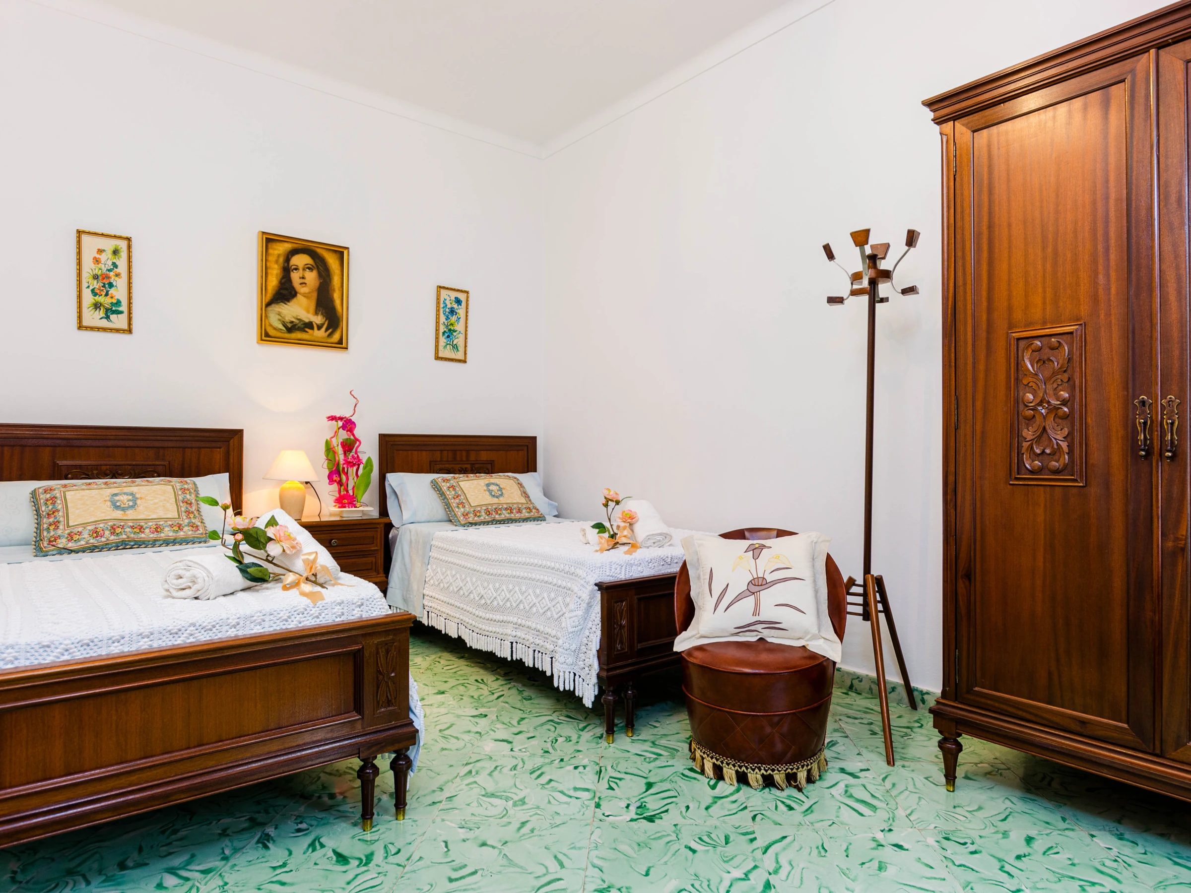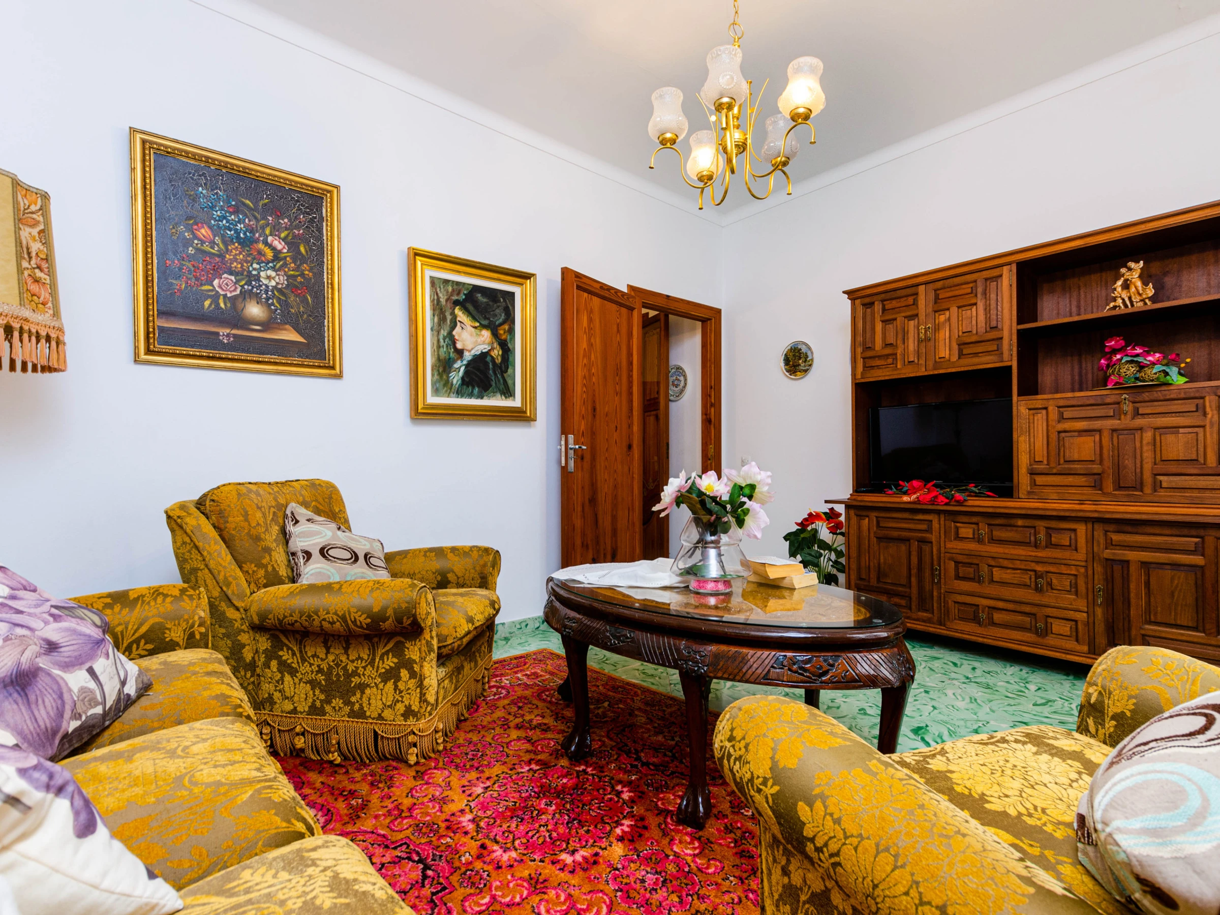 The apartment features two bedrooms: one with a standard double bed (1.40 x 1.90 m) and another with two single beds, both equipped with a wardrobe and a fan for your comfort. The living room is bright and spacious, with a television and Wi-Fi—perfect for relaxing after a day at the beach or exploring the island.