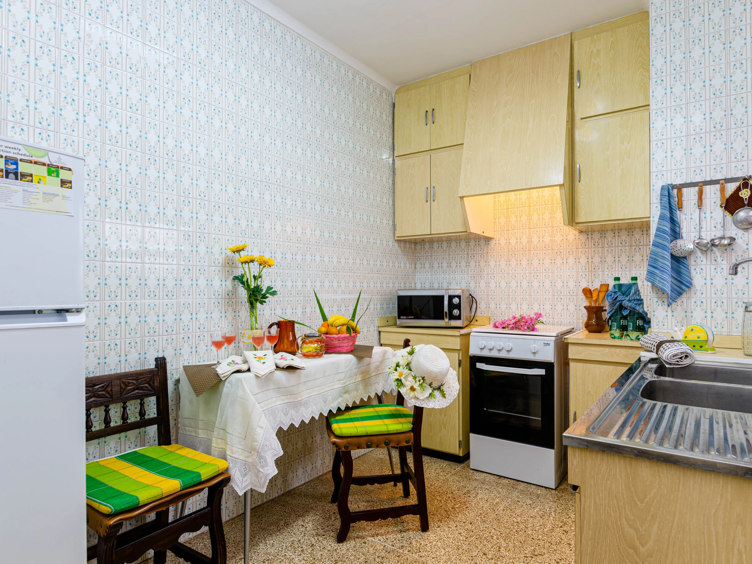 Enjoy the Mediterranean climate on the private 20 m² terrace, equipped with two sun loungers, ideal for sunbathing or dining al fresco. The independent kitchen includes a gas stove, filter coffee maker, toaster, full cookware, and everything you need to prepare your favorite meals.