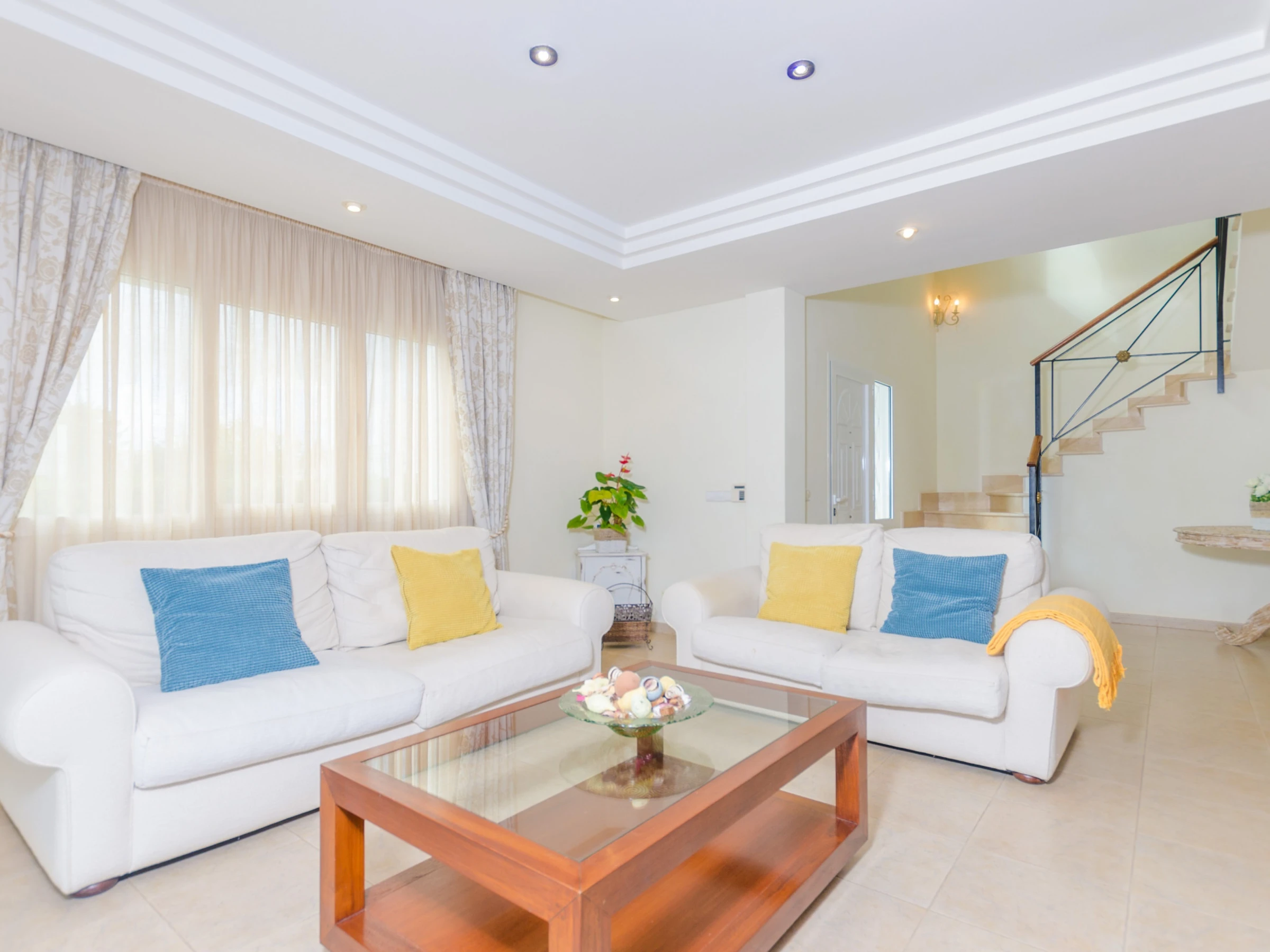 Accommodation interior: Spanning two floors and 360m² of living space, this residence offers a bright decor with natural colors that create an inviting atmosphere. Relax in the air-conditioned living area, where you can watch satellite TV or read a book. The independent dining room comfortably seats six people. The fully equipped, independent kitchen features a ceramic hob, oven, dishwasher, and a table with six chairs, making it perfect for cooking together. Additional amenities include a washing machine, iron, and ironing board.