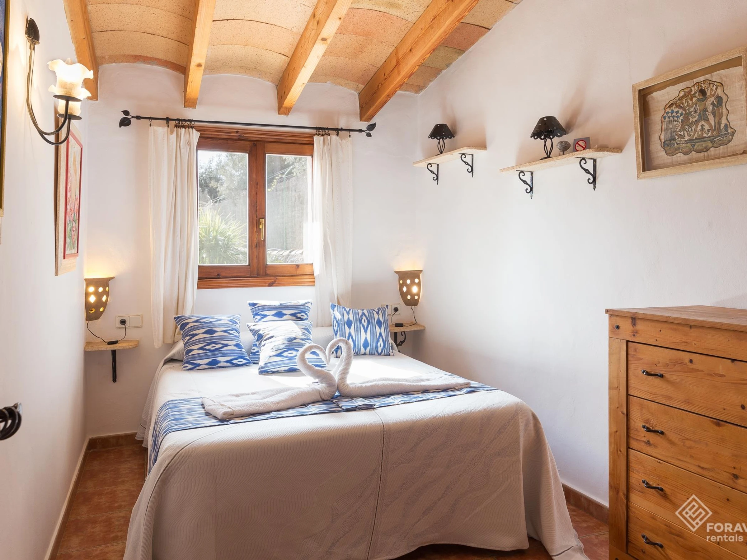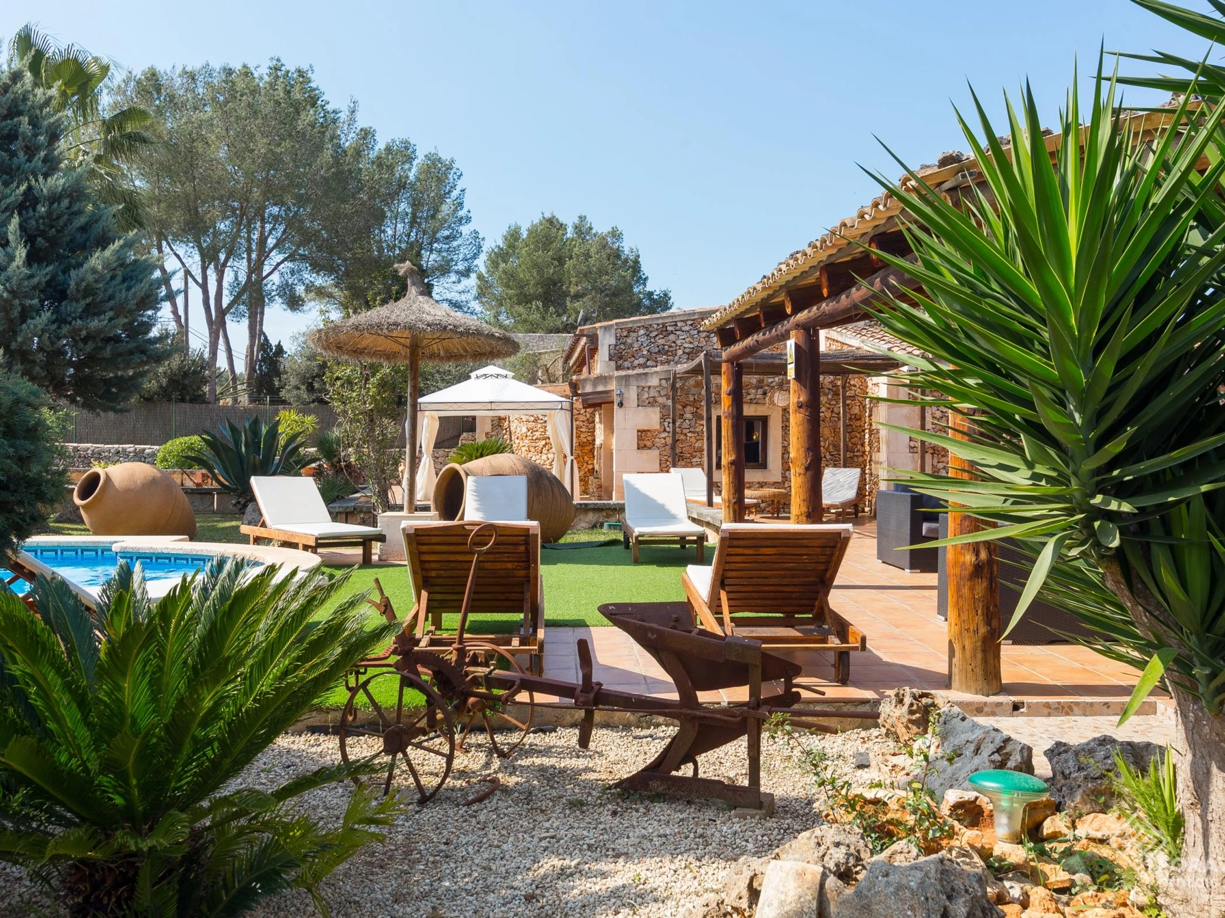 This typical Majorcan house is located on the outskirts of Sencelles, in a very quiet rural area. The accommodation, rustic style, is perfectly equipped and has everything you need to spend a dream vacation. In addition, it has a swimming pool, a large garden and several terraced areas ideal to spend time outdoors and enjoy the magnificent weather that the island offers. Undoubtedly, in Mostatxet you will discover the essence of the island.