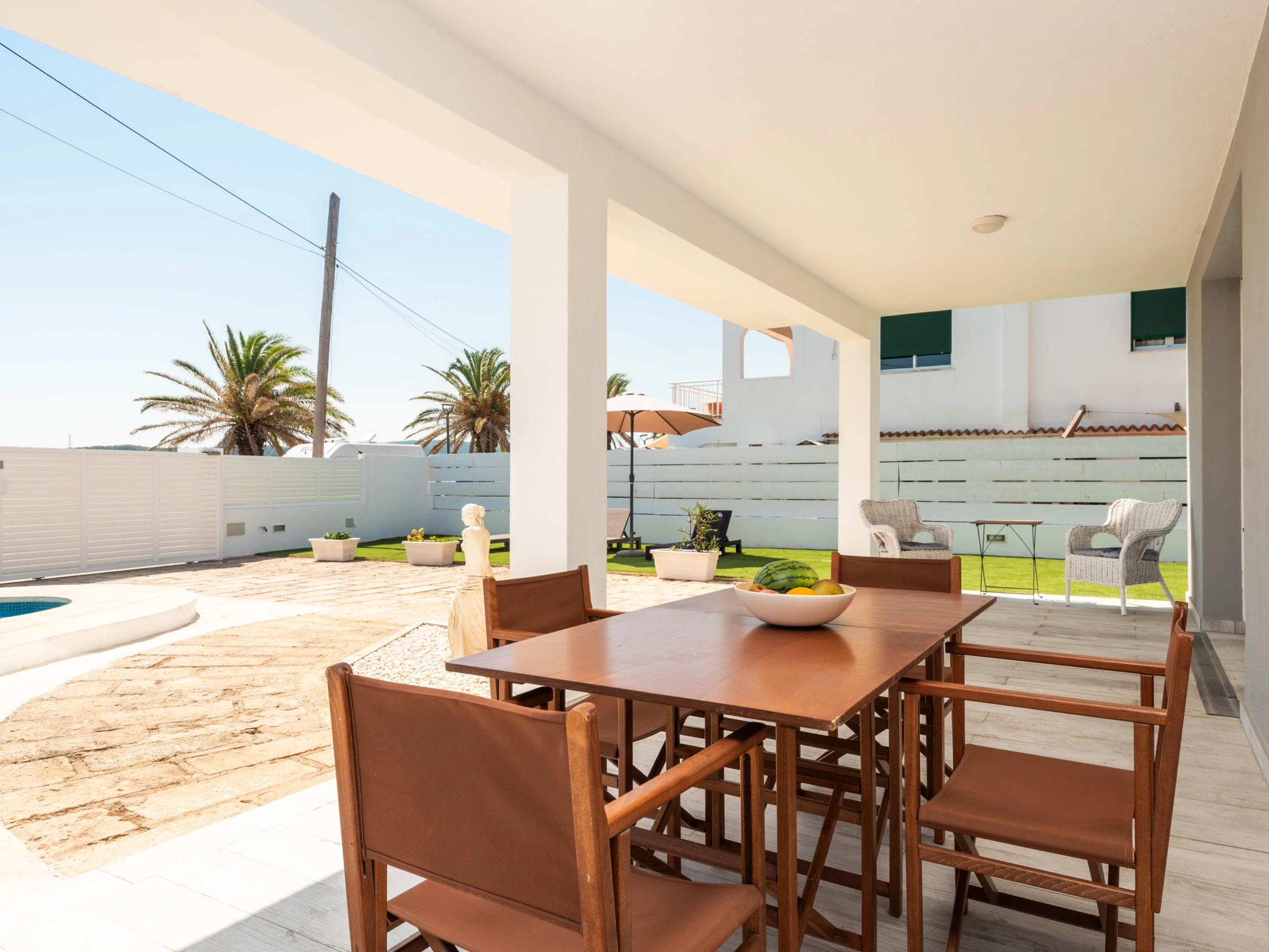 The exterior of Villa Amarres is equally attractive, with a private terrace, garden furniture and barbecue, perfect for enjoying outdoor moments. It has a private parking space and offers sea views that complement the holiday experience.