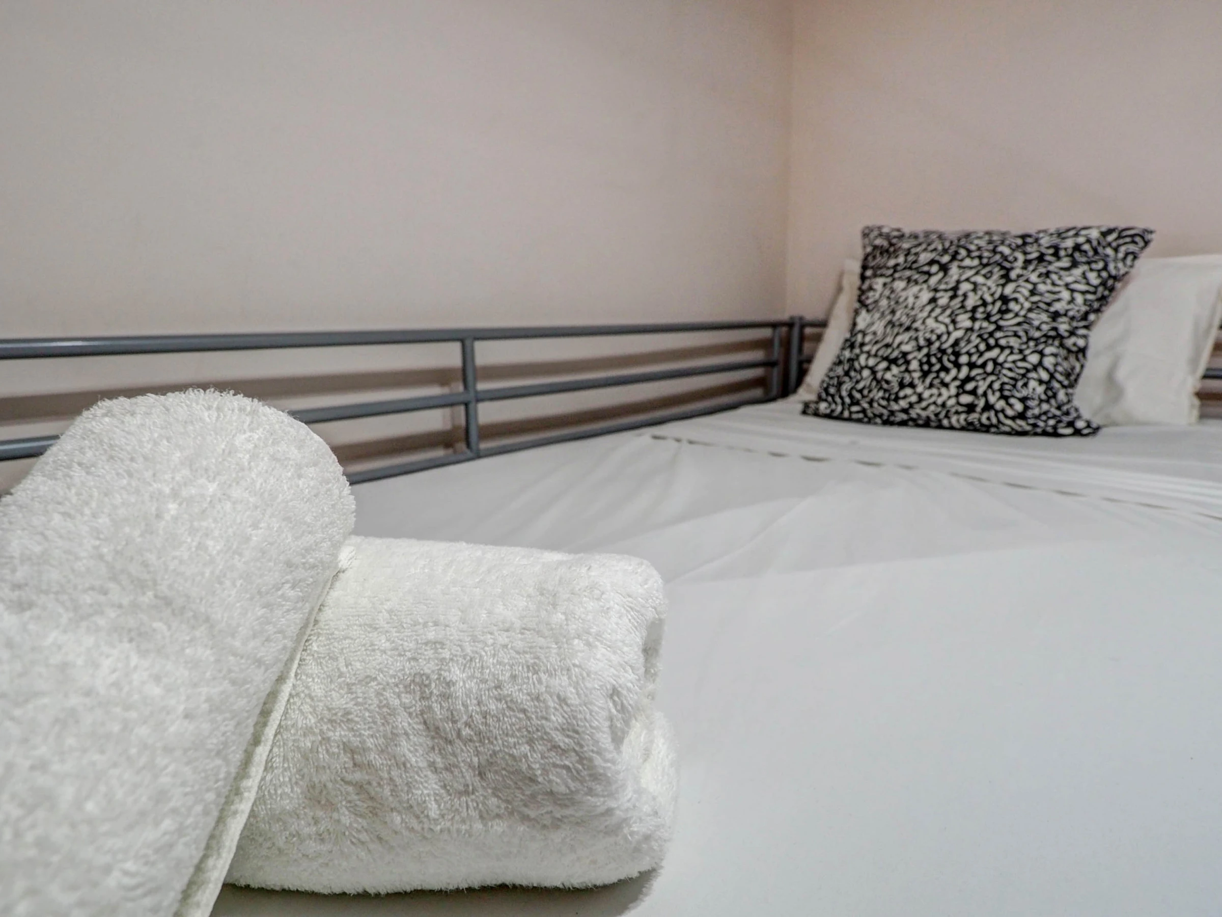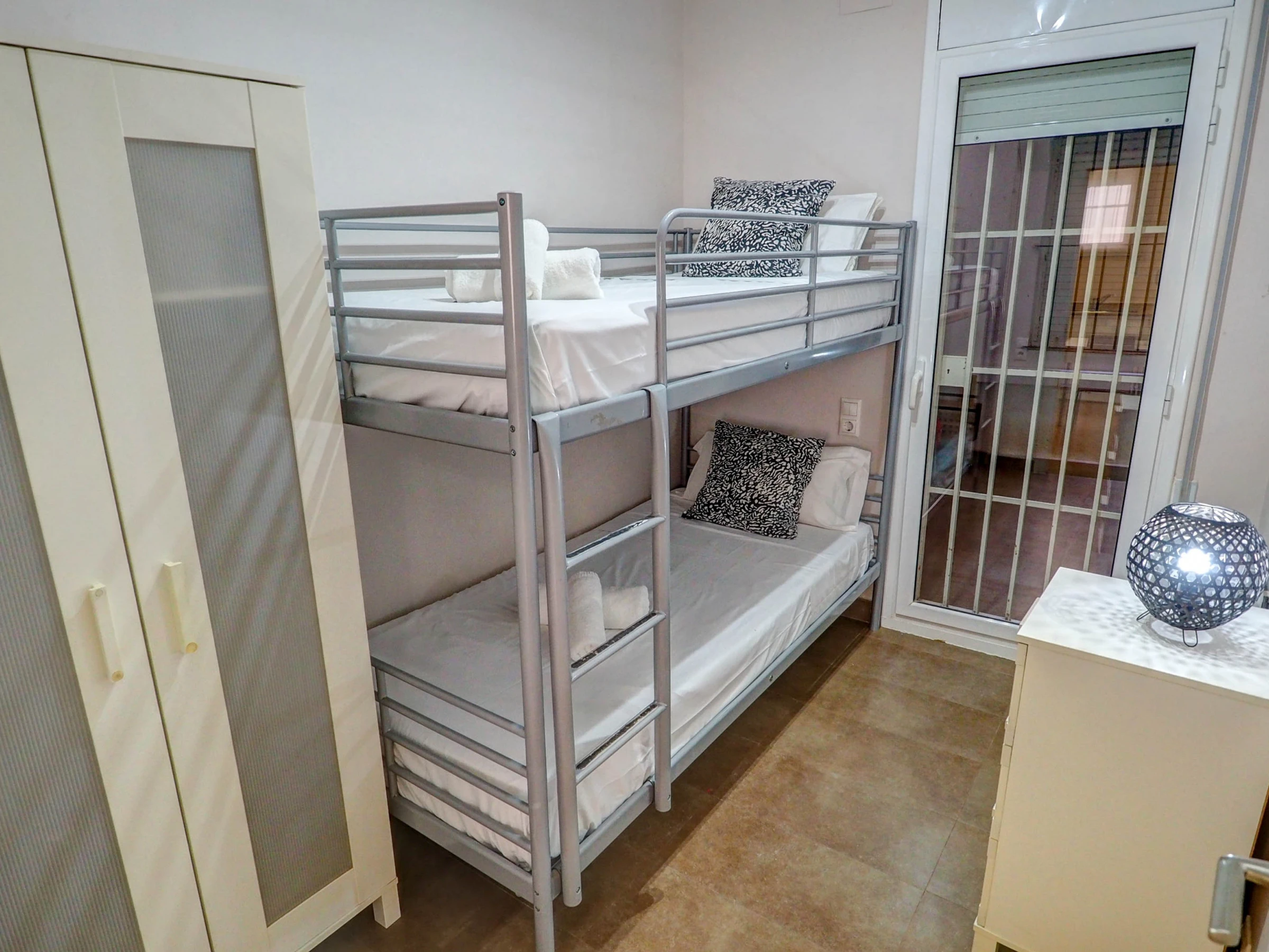 The main room has a double bed and faces the back, making it a very quiet room. The second room has 2 bunk beds and access to the small terrace-laundry room. In the living room there are 2 single sofa beds.