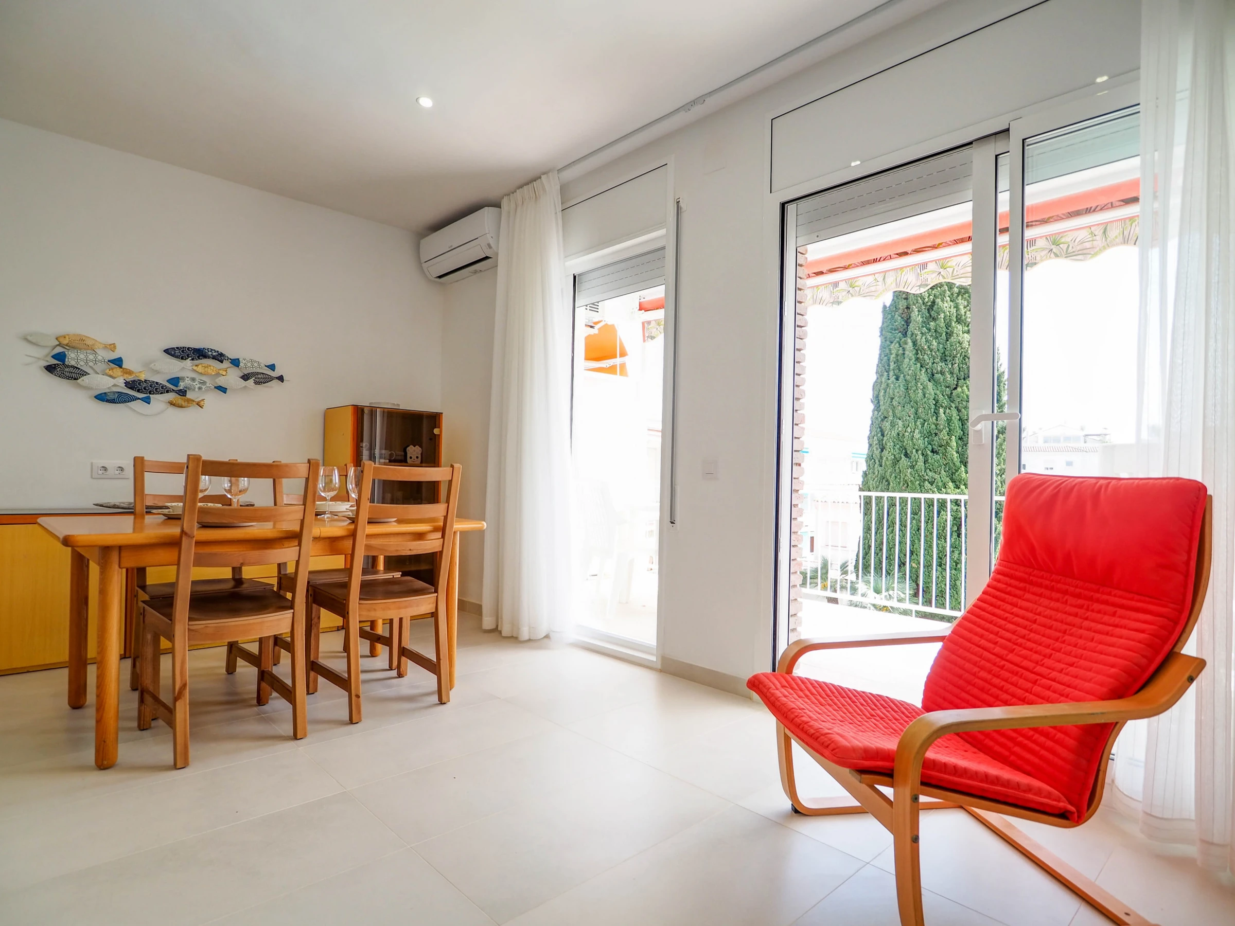 This beautiful apartment is located in the Vinyet neighborhood, just two blocks from the beach. With 2 bedrooms, it can accommodate up to 5 guests. The master bedroom features a double bed and a safe, while the single bedroom has built-in wardrobes. The living room exudes tranquility, and from the spacious terrace you can enjoy views of the community. This apartment is perfect for couples with children looking for tranquility, comfort and proximity to the center of Sitges and its beaches.