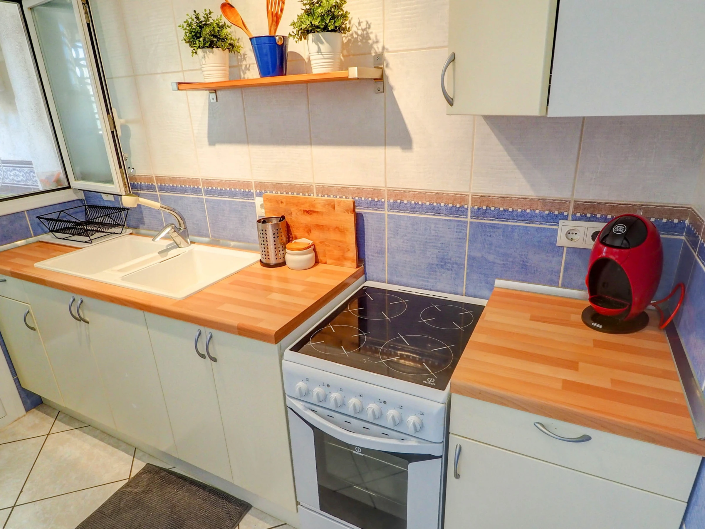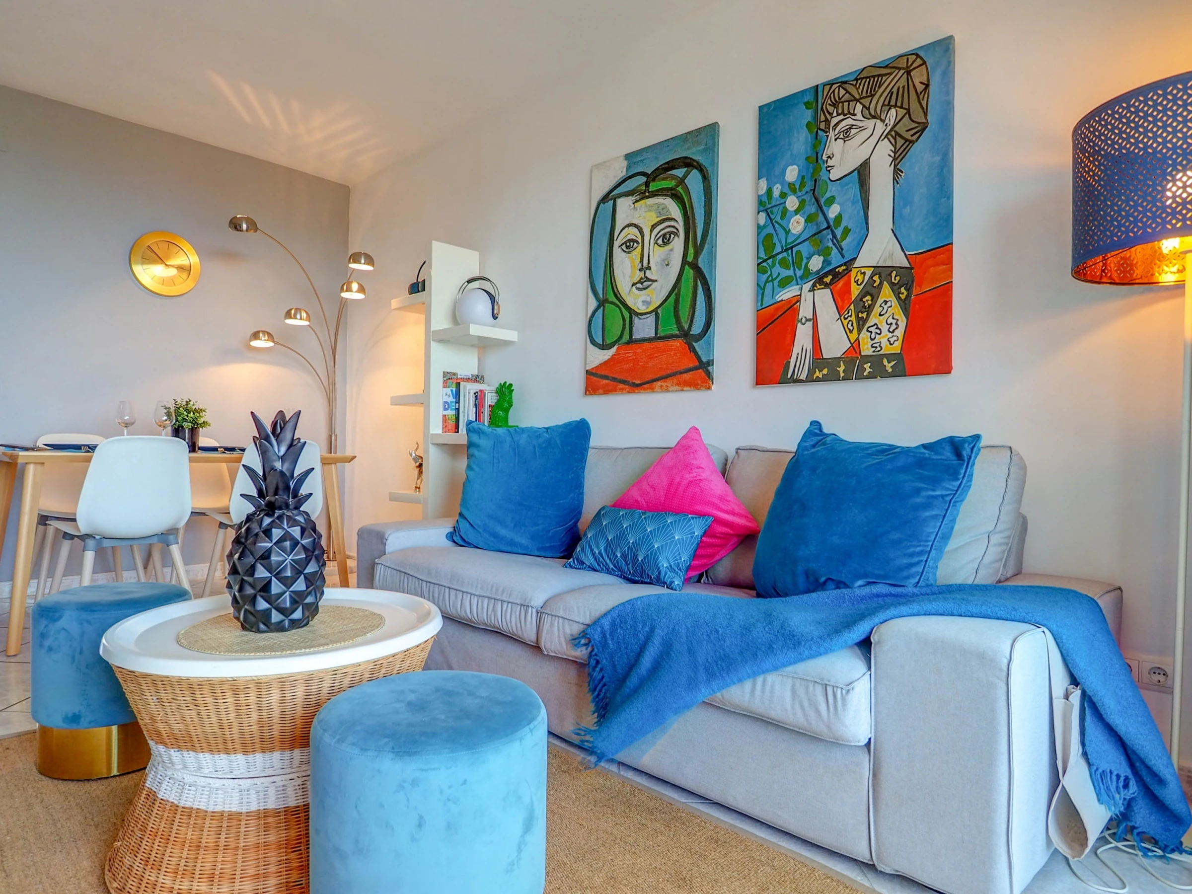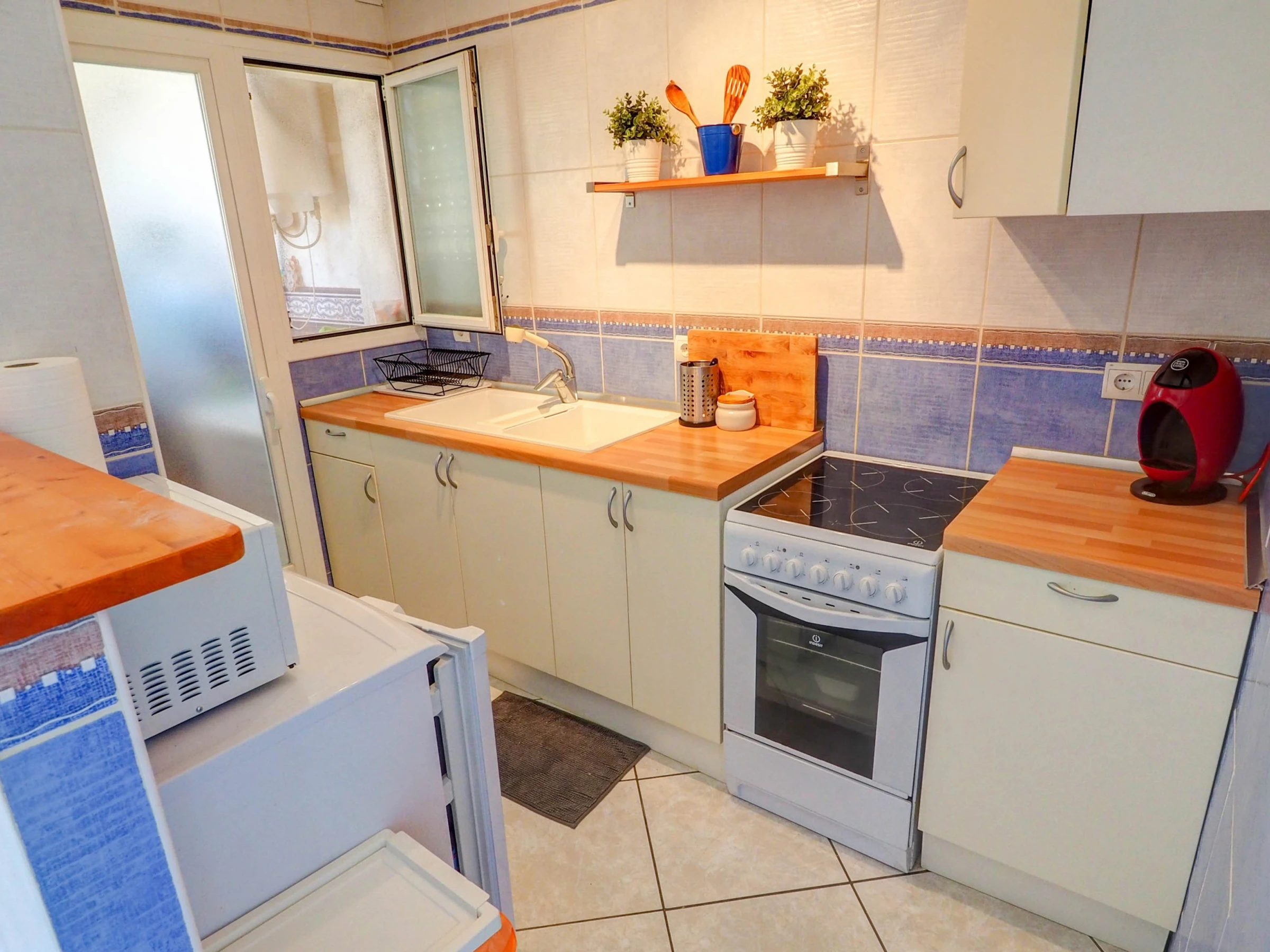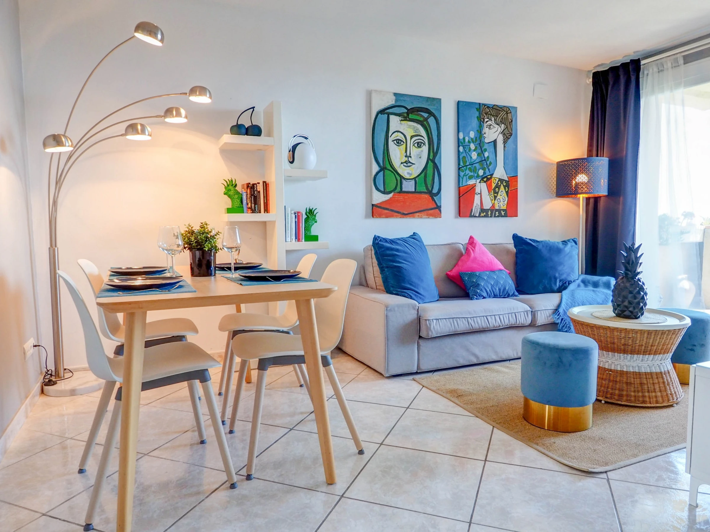 Fantastic apartment with sea views, swimming pool and communal garden, just 10 minutes by car from the beaches of Sitges and 30 minutes from El Prat airport (Barcelona). This apartment, which can accommodate up to 4 people, is decorated with great care and exquisite taste, so that your stay is as comfortable as possible. Located on the fifth floor, its views of the sea and the mountains are spectacular, and make the balcony a small oasis of relaxation. The kitchen is fully equipped for everything you may need during your holiday (oven, microwave, refrigerator, washing machine, kitchenware...), the apartment is equipped with air conditioning in all rooms and WiFi. The living-dining room, decorated in blue tones, has a dining table for 4 people, a smart TV, a comfortable sofa and access to the terrace. It has two bedrooms, one with a double bed and the other with a trundle bed (2 single beds). There is also a full bathroom with a shower. The complex has a communal swimming pool, with a large garden area. You will have free parking within the complex. Also within the urbanization there are paddle tennis courts, a restaurant and a small supermarket, which can be used.